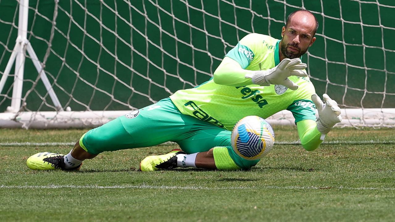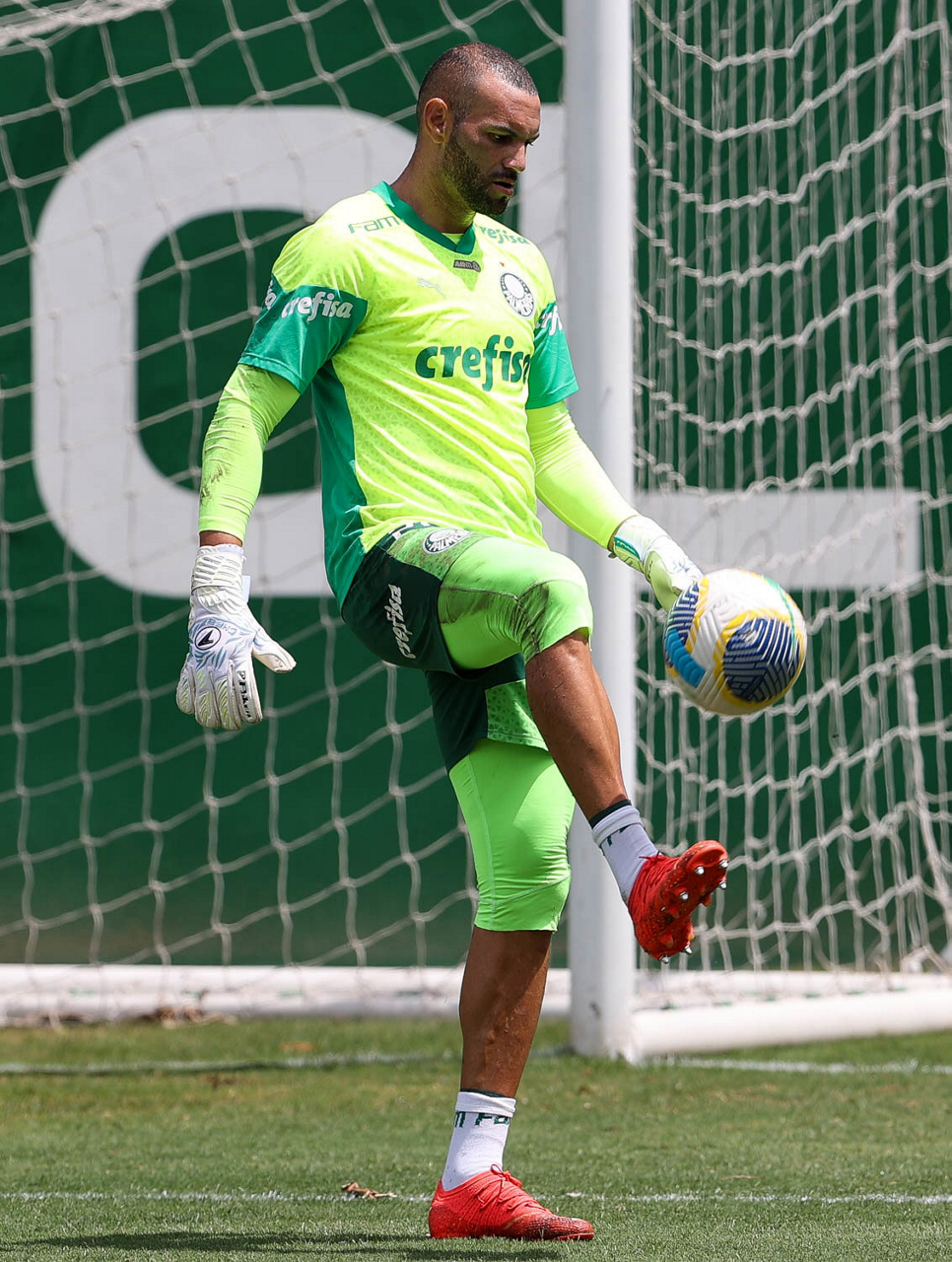 O goleiro Weverton, da SE Palmeiras, durante treinamento, na Academia de Futebol. (Foto: Cesar Greco/Palmeiras/by Canon)