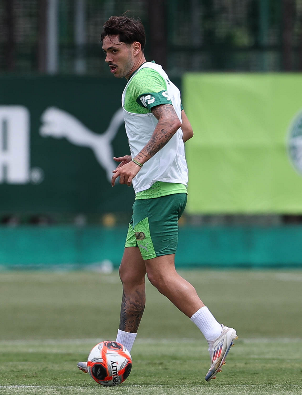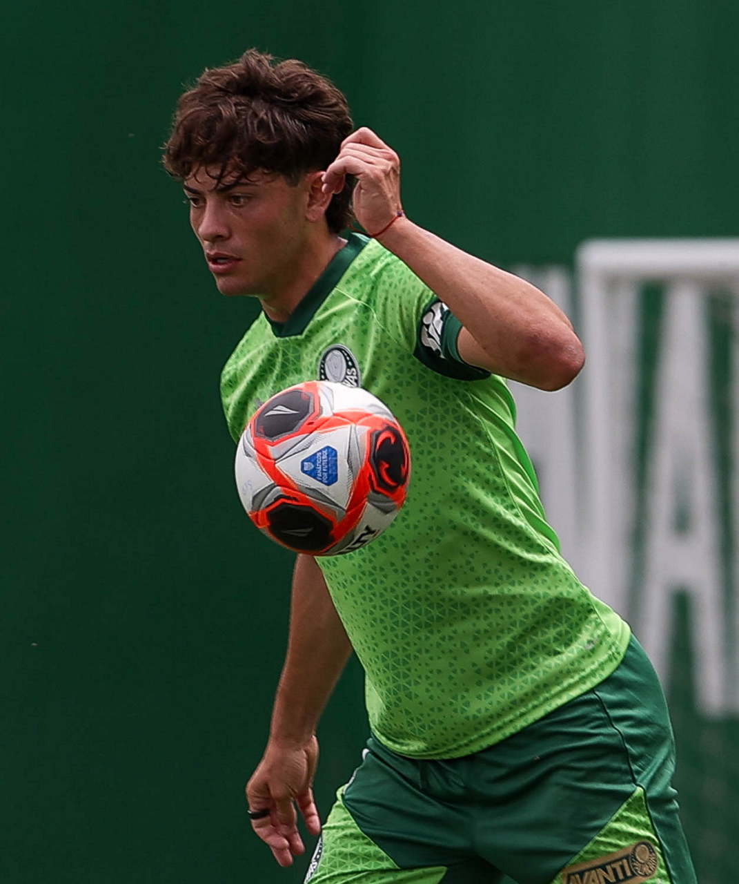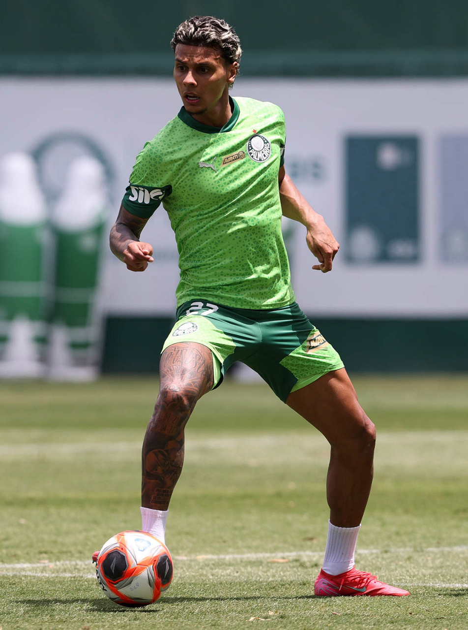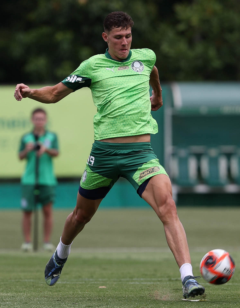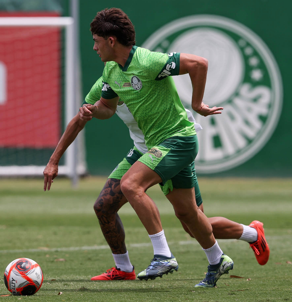 O jogador Richard Ríos, da SE Palmeiras, durante treinamento, na Academia de Futebol. (Foto: Cesar Greco/Palmeiras/by Canon)