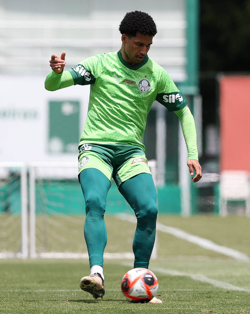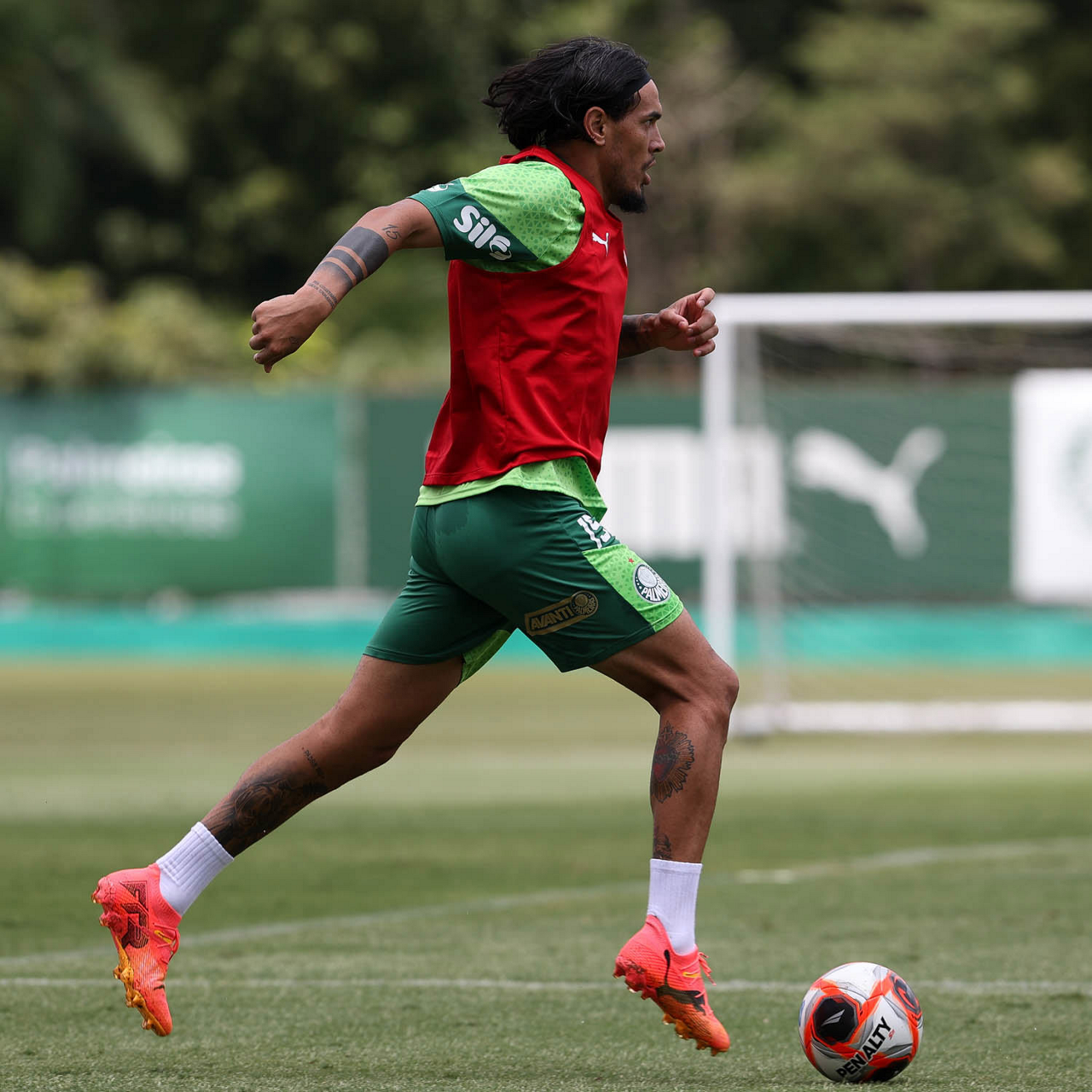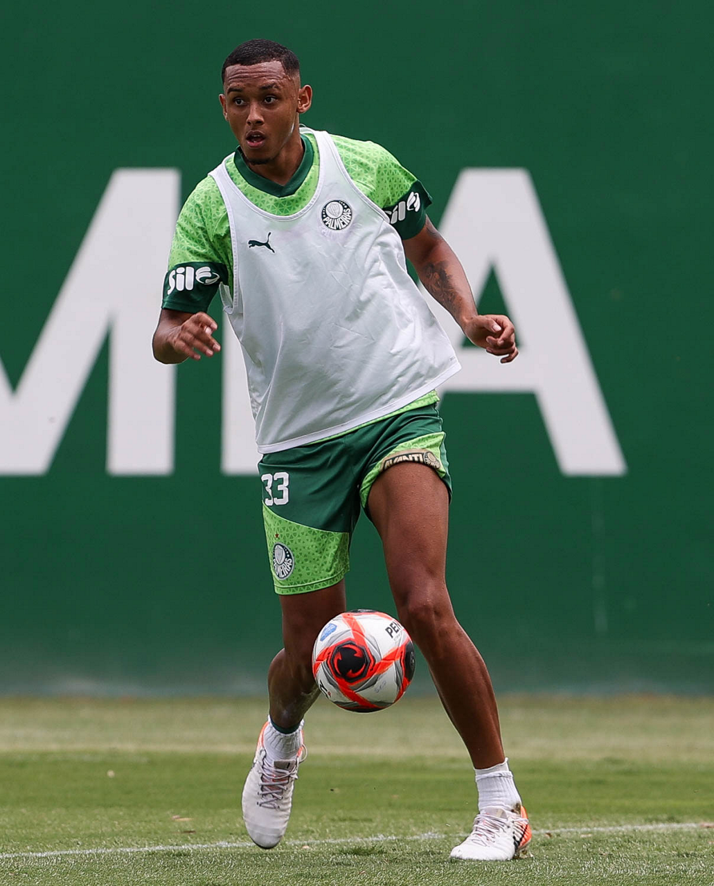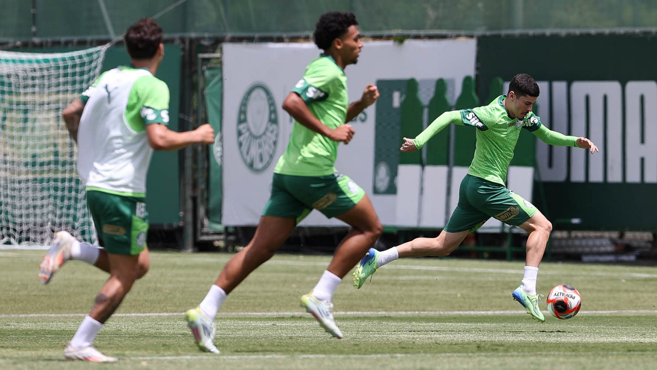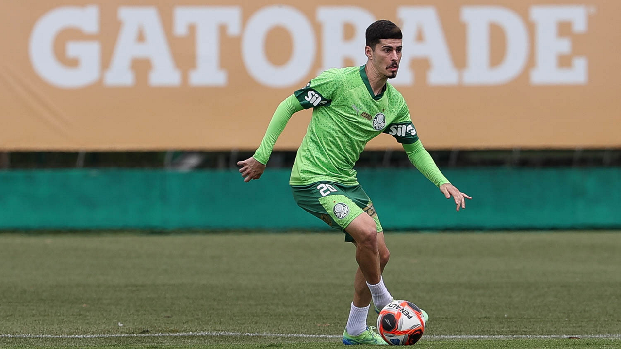 O jogador Richard Ríos, da SE Palmeiras, durante treinamento, na Academia de Futebol. (Foto: Cesar Greco/Palmeiras/by Canon)