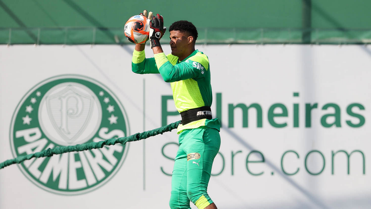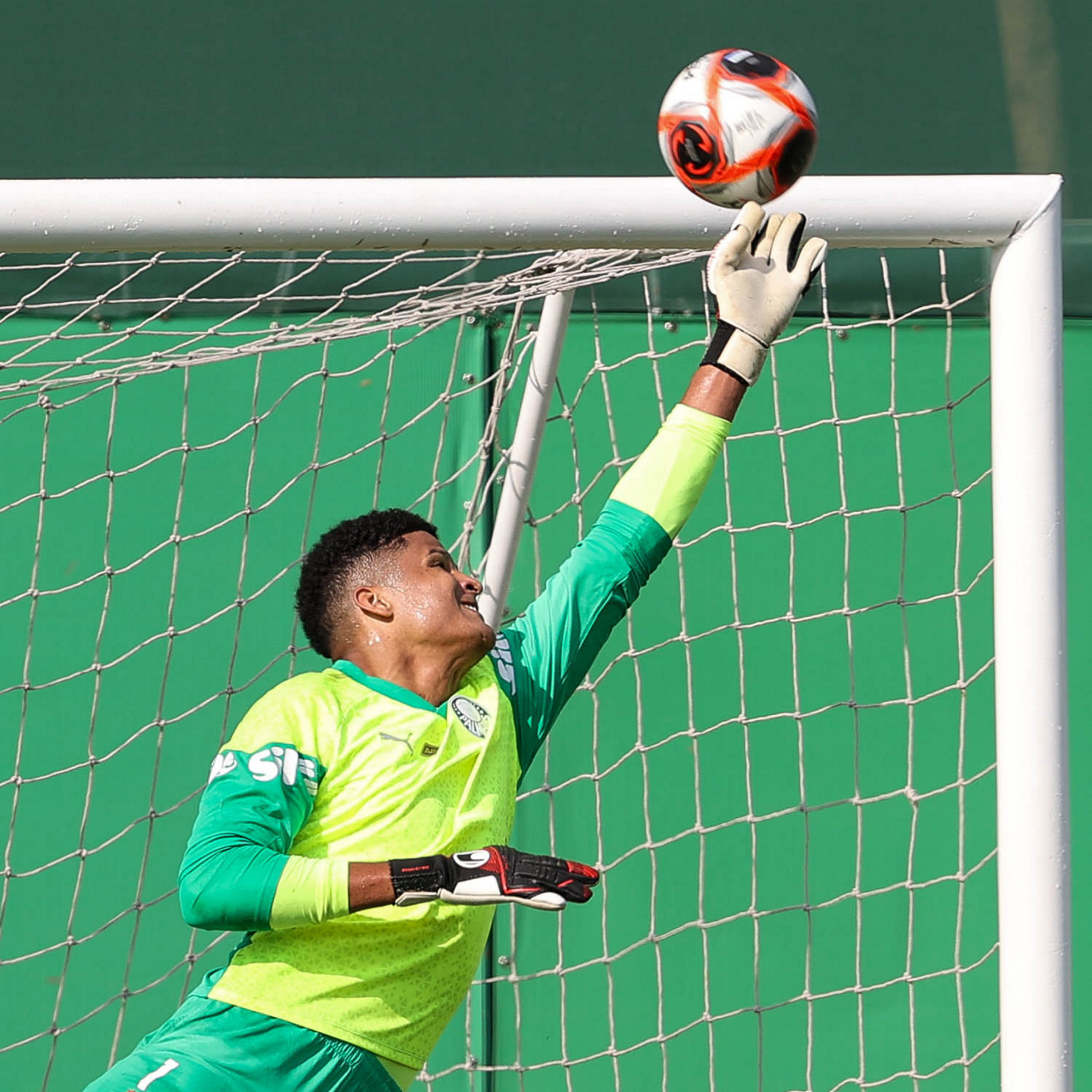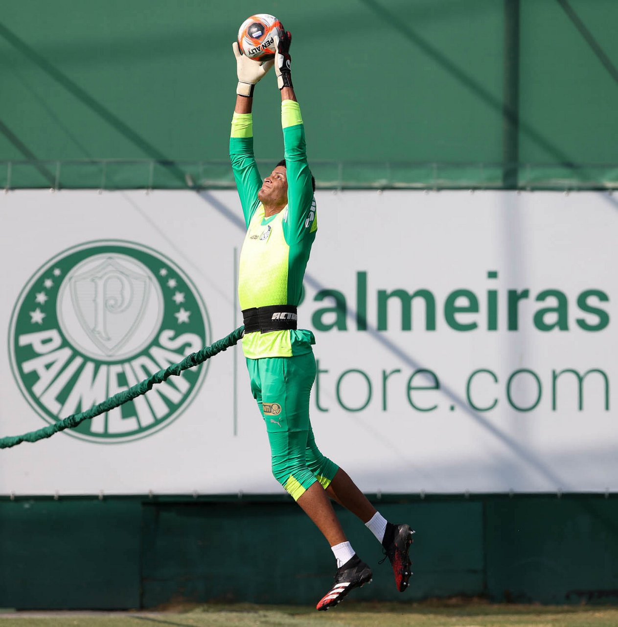 O goleiro Mateus, da SE Palmeiras, durante treinamento, na Academia de Futebol. (Foto: Cesar Greco/Palmeiras/by Canon)