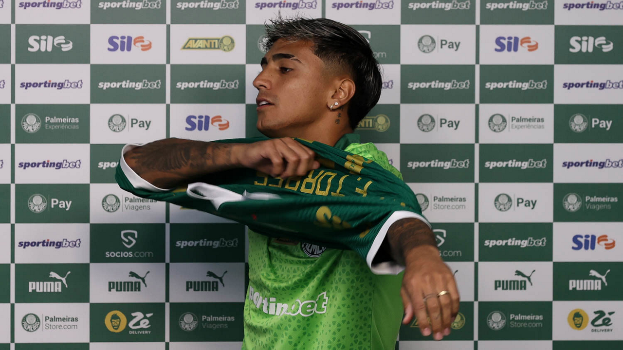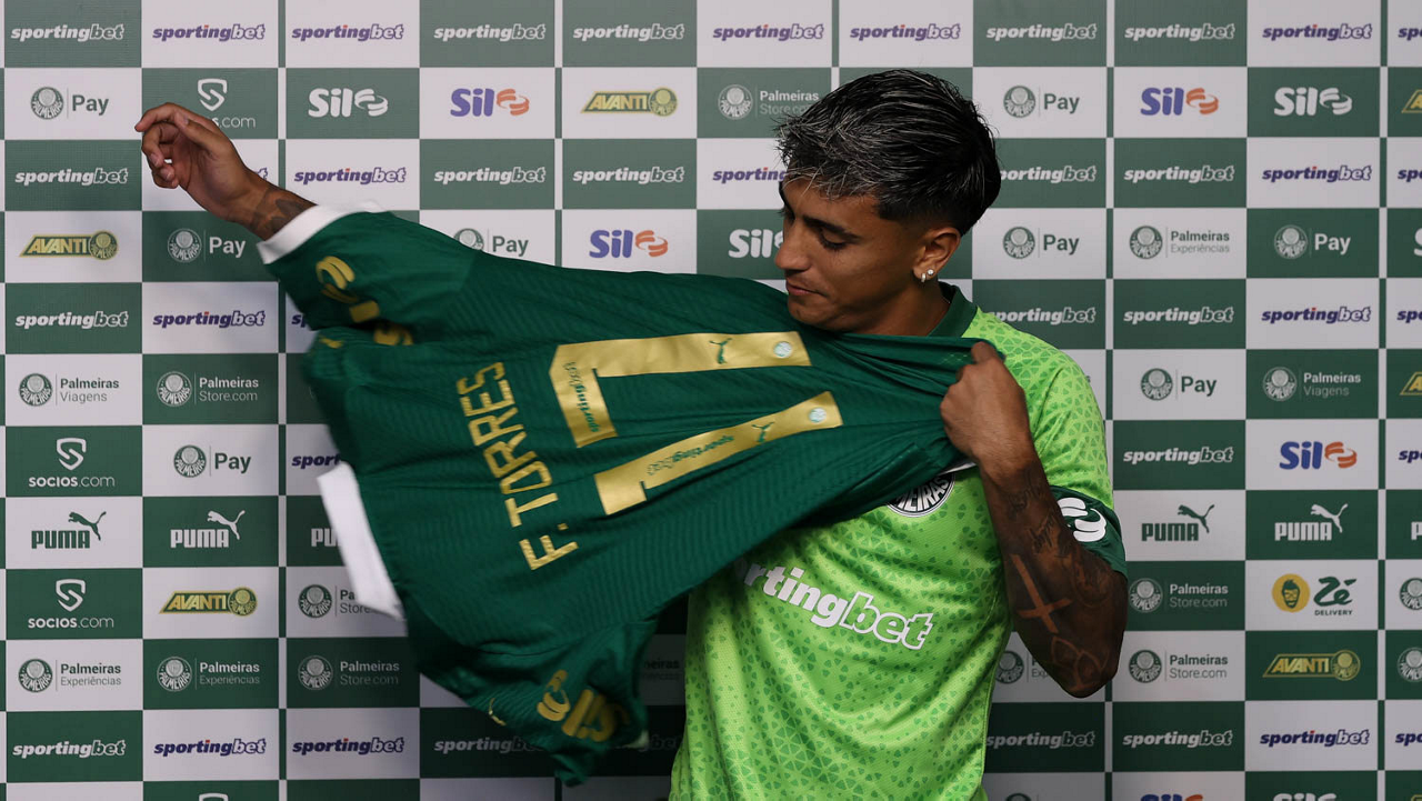 O jogador Facundo Torres é apresentado como mais novo atleta da SE Palmeiras, na Academia de Futebol. (Foto: Cesar Greco/Palmeiras/by Canon)