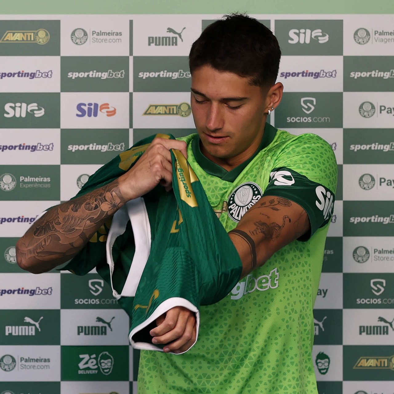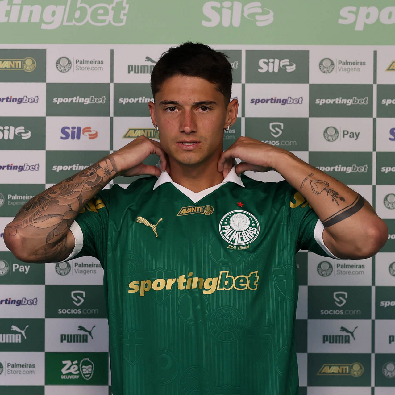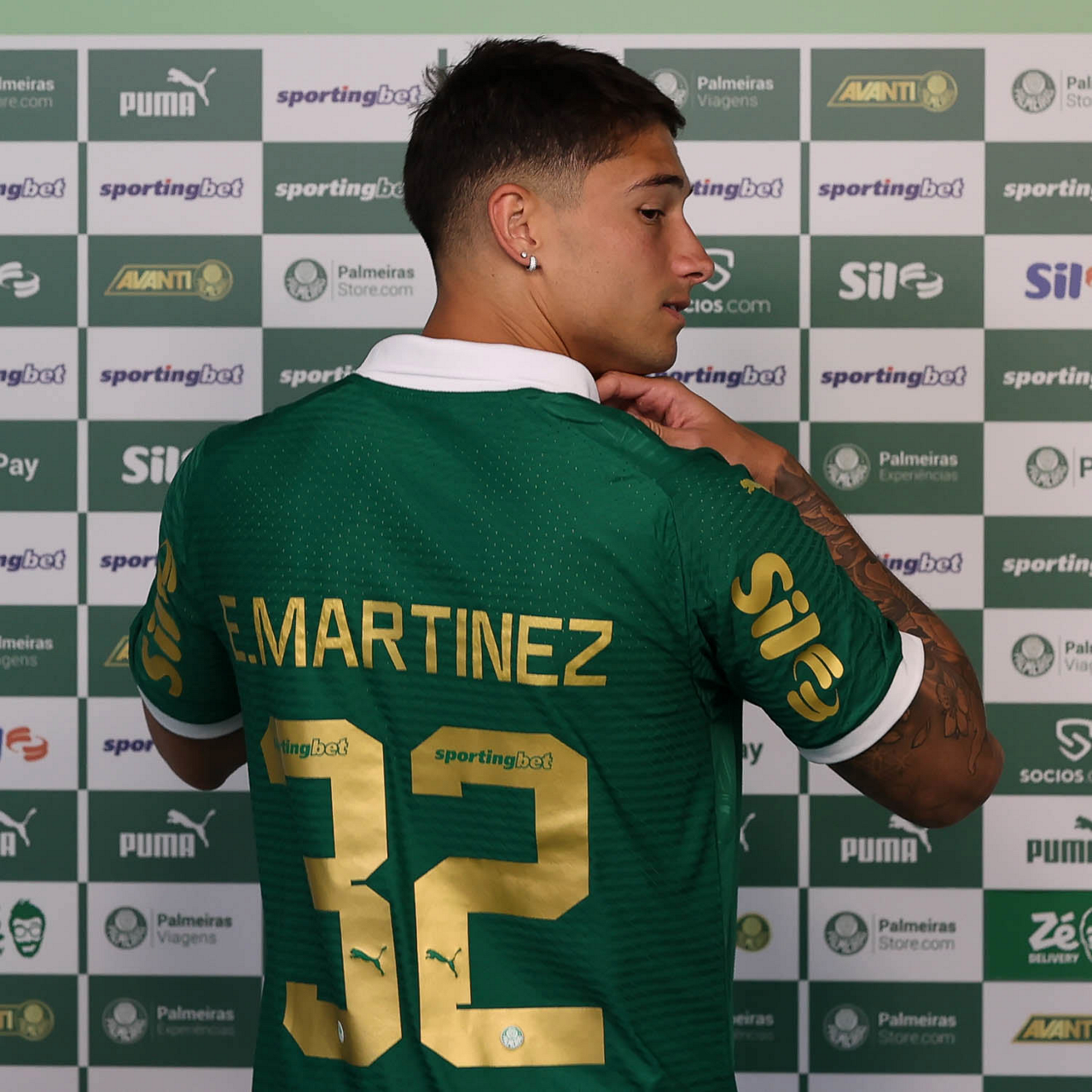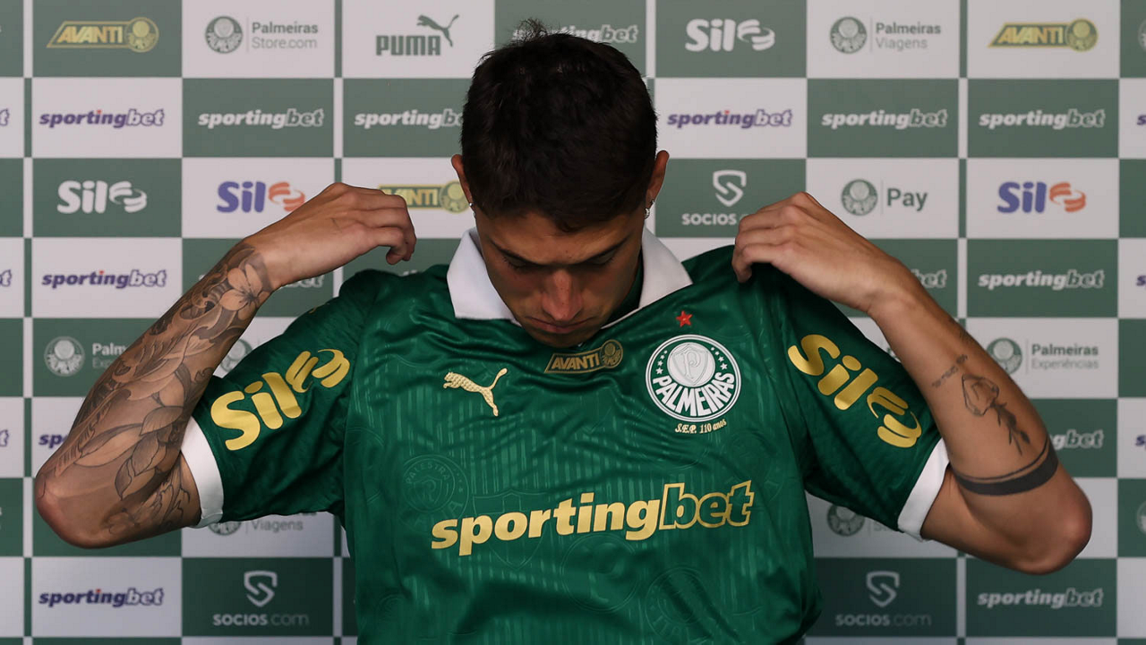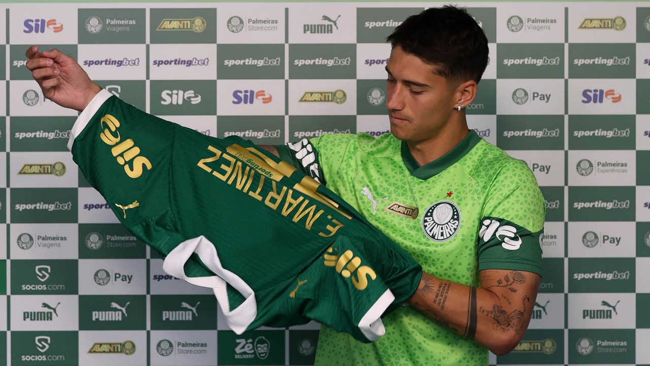 O jogador Emiliano Martínez é apresentado como mais novo atleta da SE Palmeiras, na Academia de Futebol. (Foto: Cesar Greco/Palmeiras/by Canon)