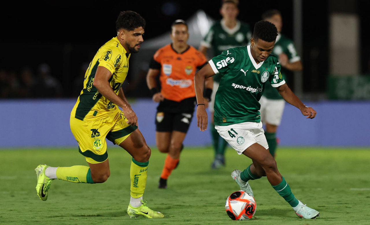 O jogador Raphael Veiga, da SE Palmeiras, comemora seu gol contra a equipe do Mirassol FC, durante partida válida pela fase de grupos, do Campeonato Paulista, Série A1, no Estádio Municipal José Maria de Campos Maia. (Foto: Cesar Greco/Palmeiras/by Canon)