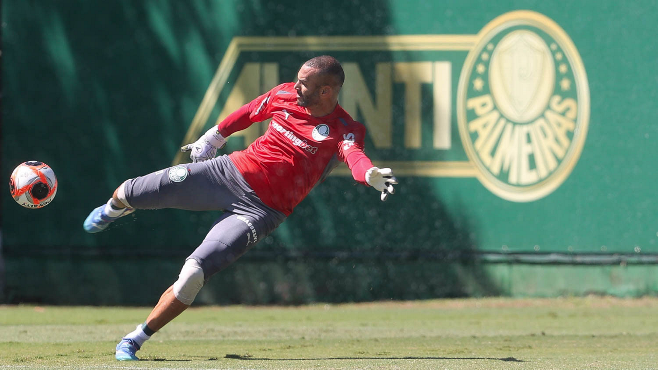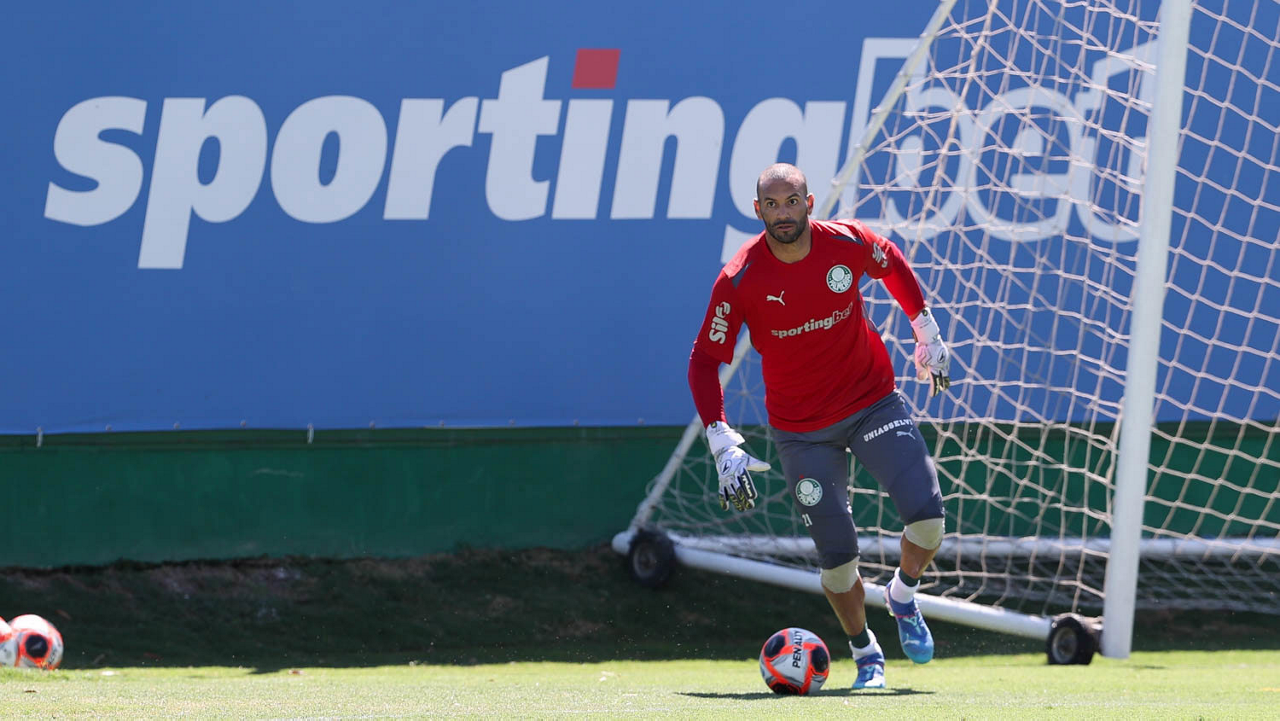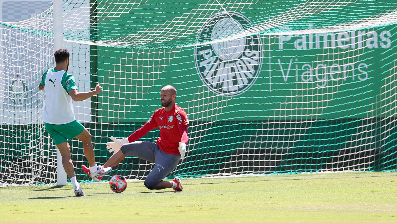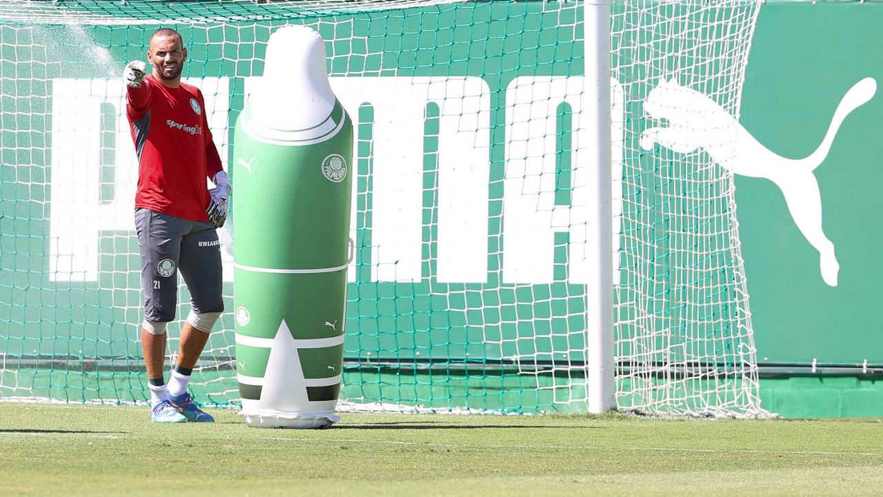 O goleiro Weverton, da SE Palmeiras, durante treinamento, na Academia de Futebol. (Foto: Cesar Greco/Palmeiras/by Canon)