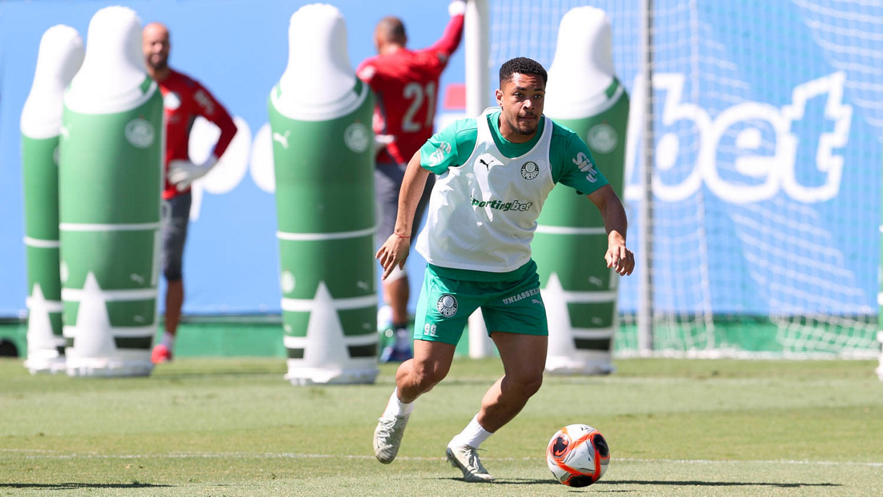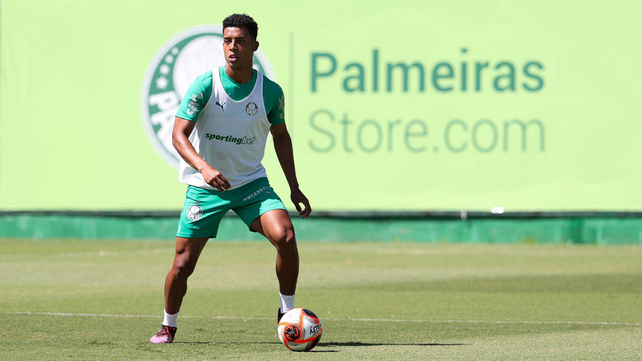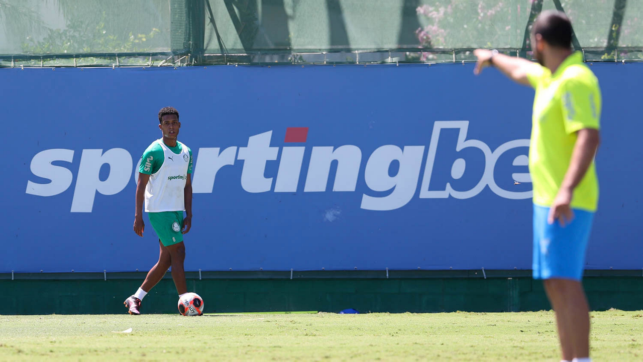 O jogador Vitor Roque, da SE Palmeiras, durante treinamento, na Academia de Futebol. (Foto: Cesar Greco/Palmeiras/by Canon)