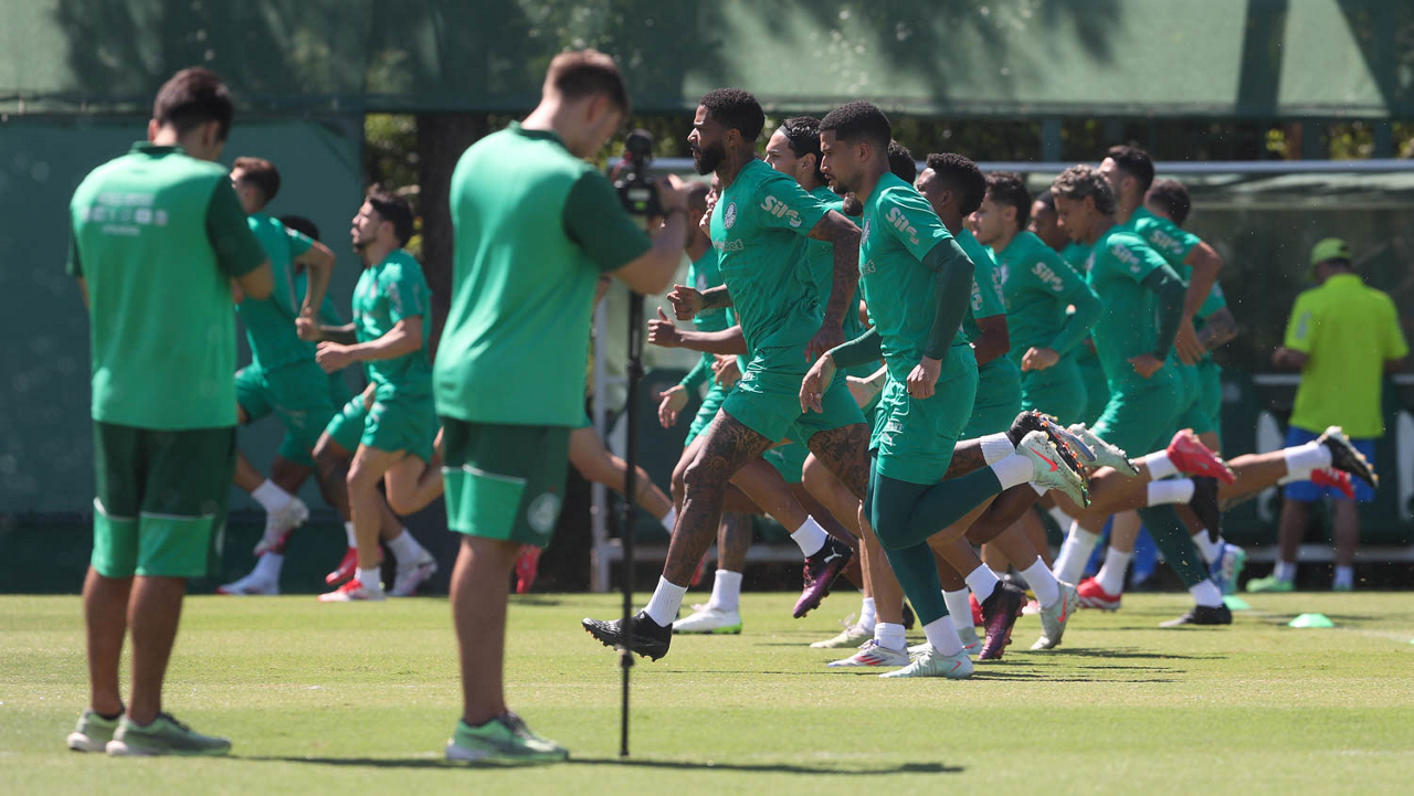Os jogadores da SE Palmeiras, durante treinamento, na Academia de Futebol. (Foto: Cesar Greco/Palmeiras/by Canon)