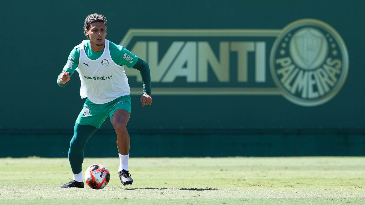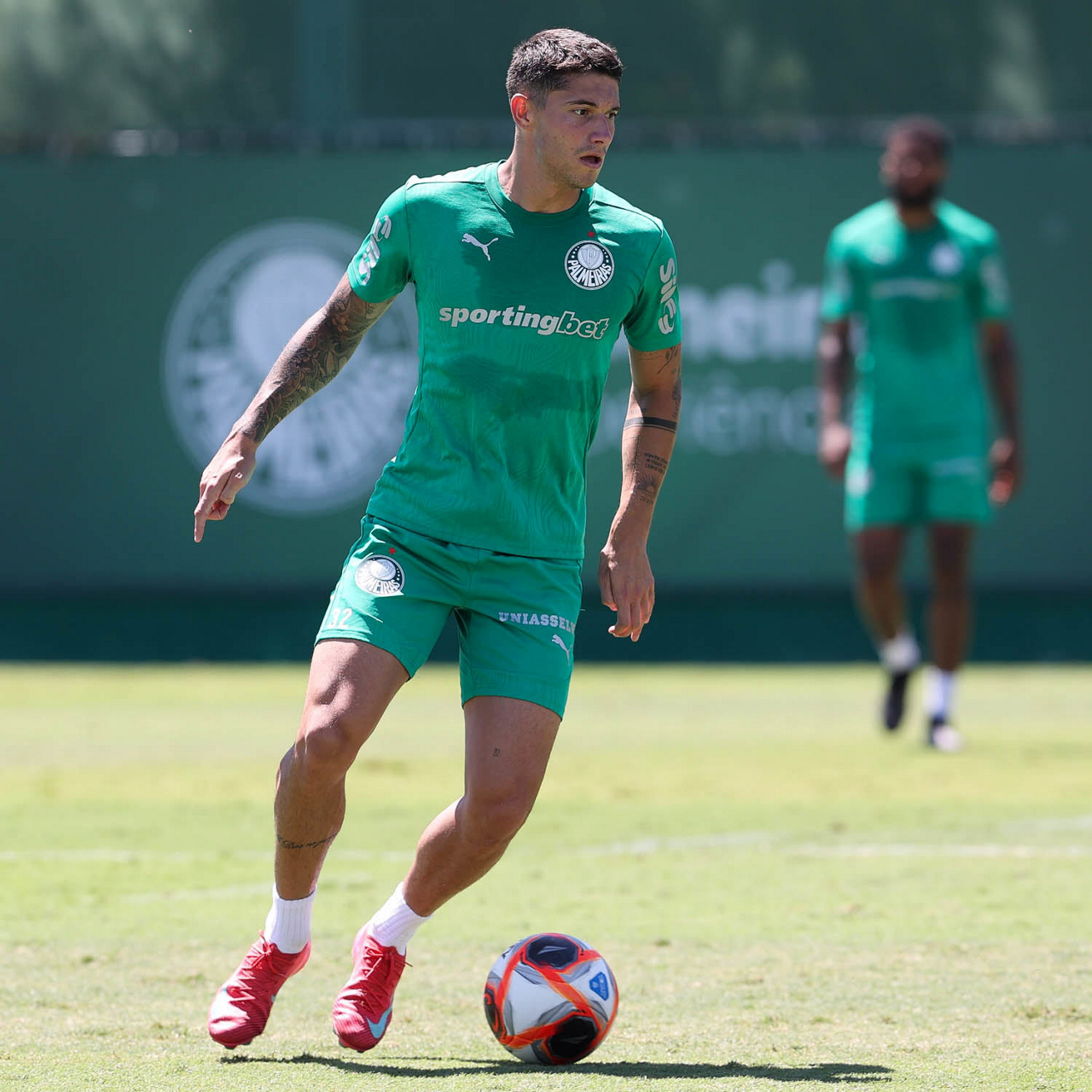 O jogador Richard Ríos, da SE Palmeiras, durante treinamento, na Academia de Futebol. (Foto: Cesar Greco/Palmeiras/by Canon)