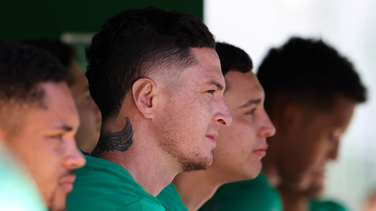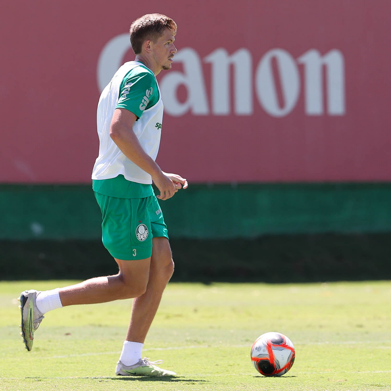 O jogador Bruno Fuchs, da SE Palmeiras, durante treinamento, na Academia de Futebol. (Foto: Cesar Greco/Palmeiras/by Canon)