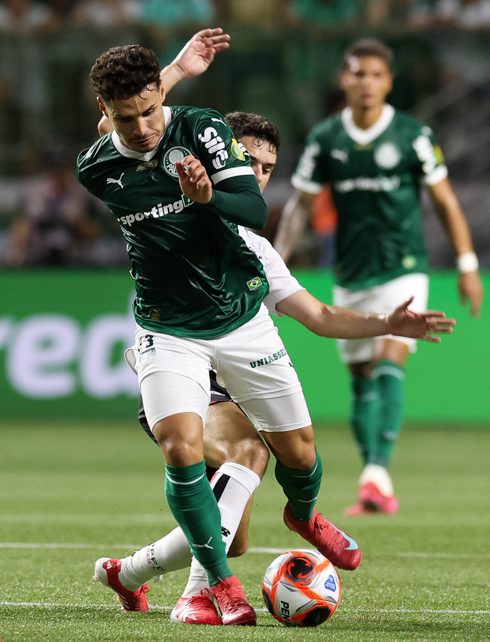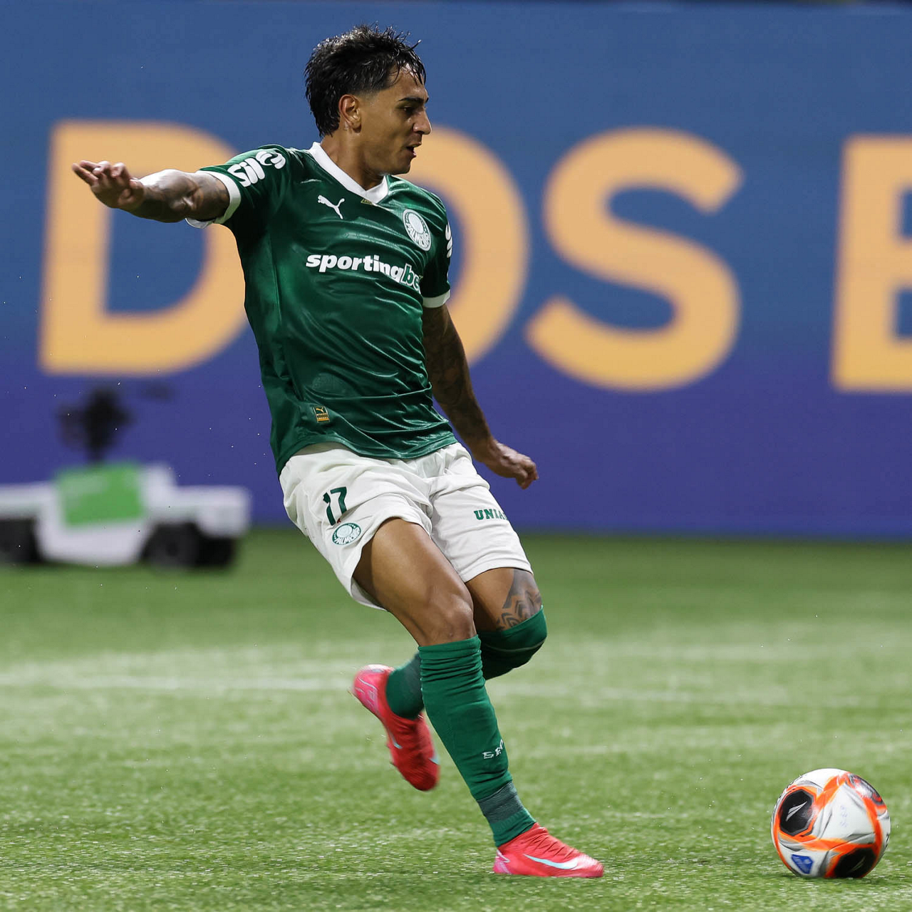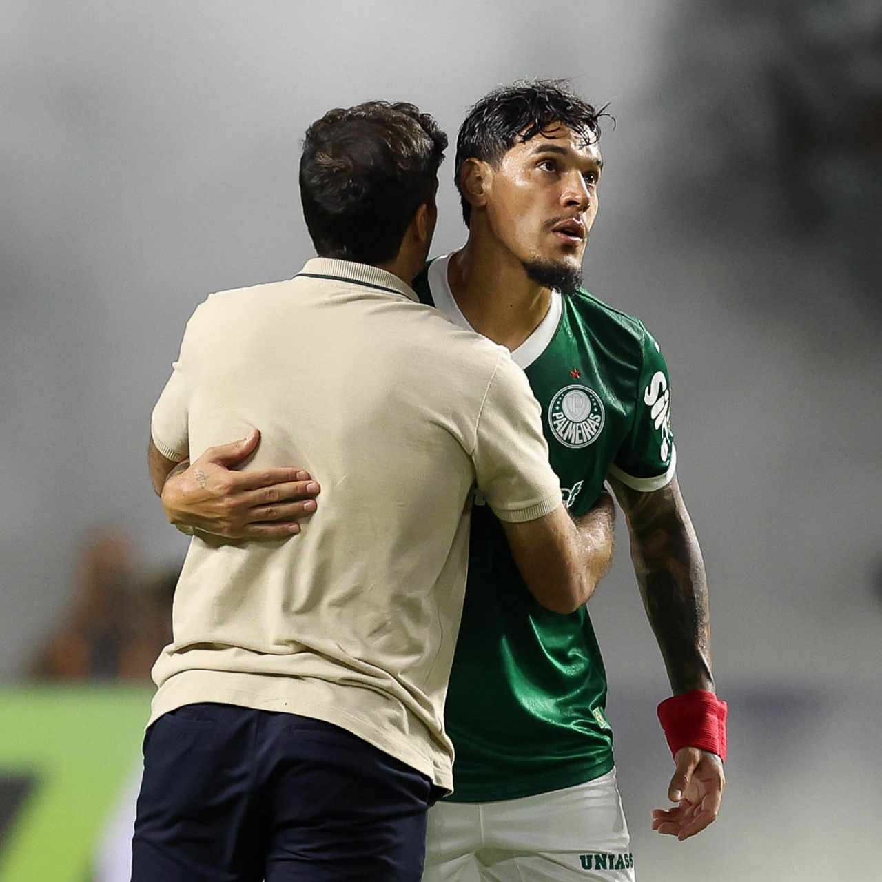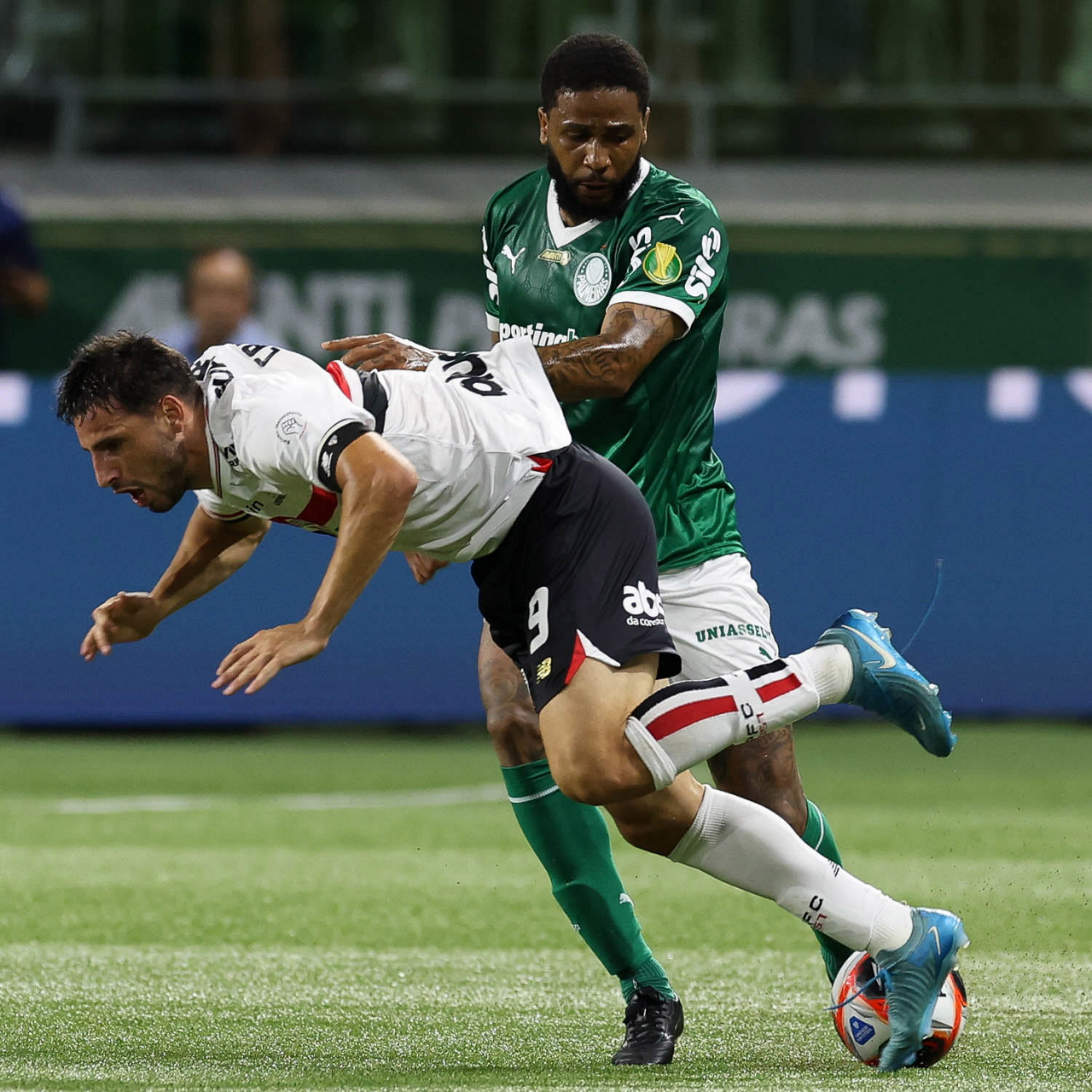 Os jogadores Vanderlan, Raphael Veiga e Flaco López (E/D), da SE Palmeiras, comemoram a classificação para a final contra equipe do São Paulo FC, após partida válida pela semifinal, do Campeonato Paulista, Série A1, na arena Allianz Parque. (Foto: Cesar Greco/Palmeiras/by Canon)