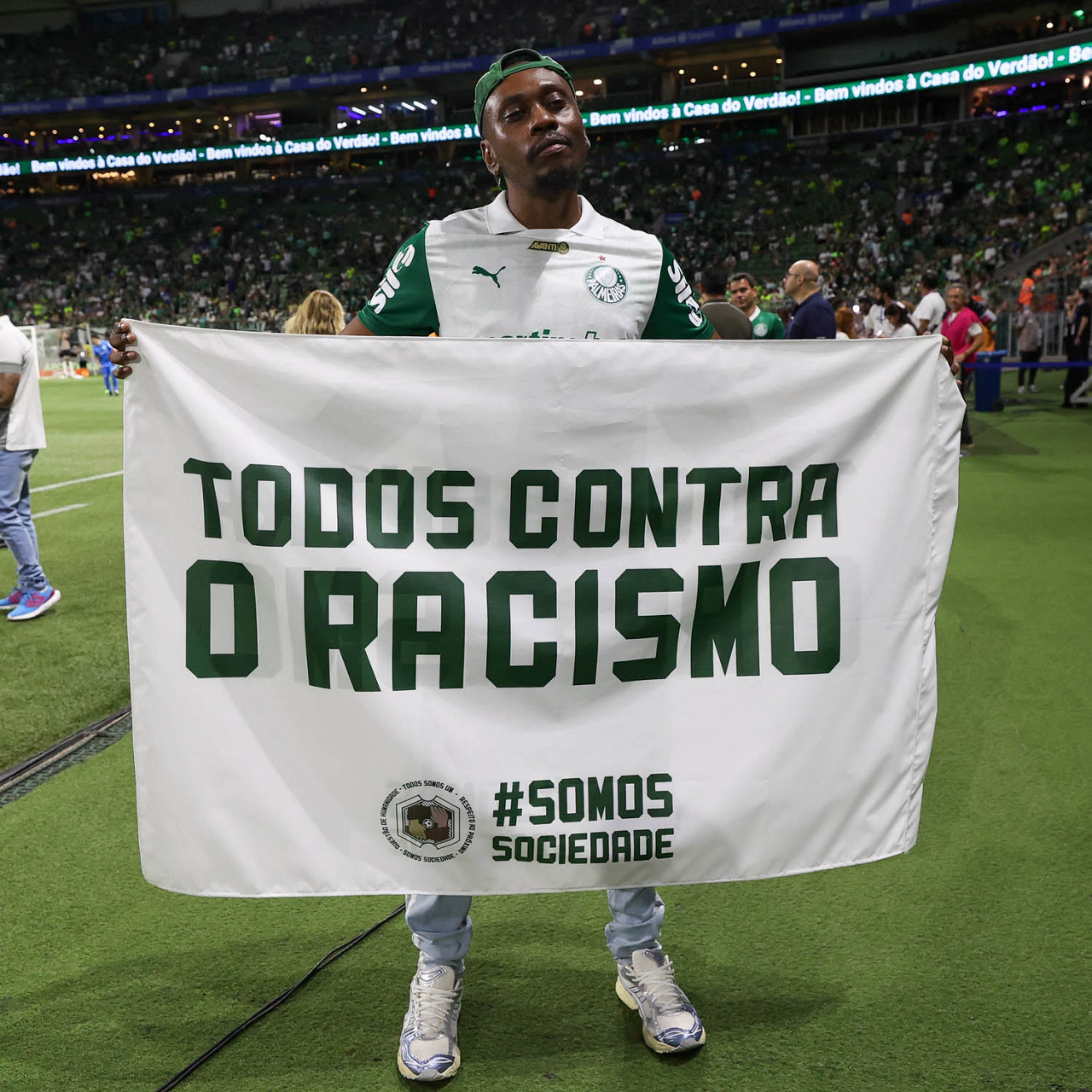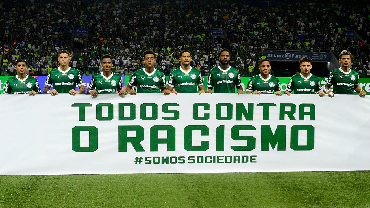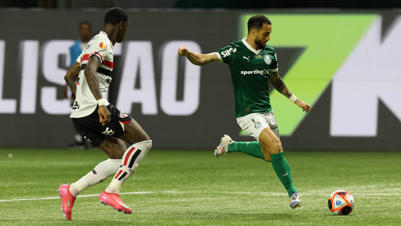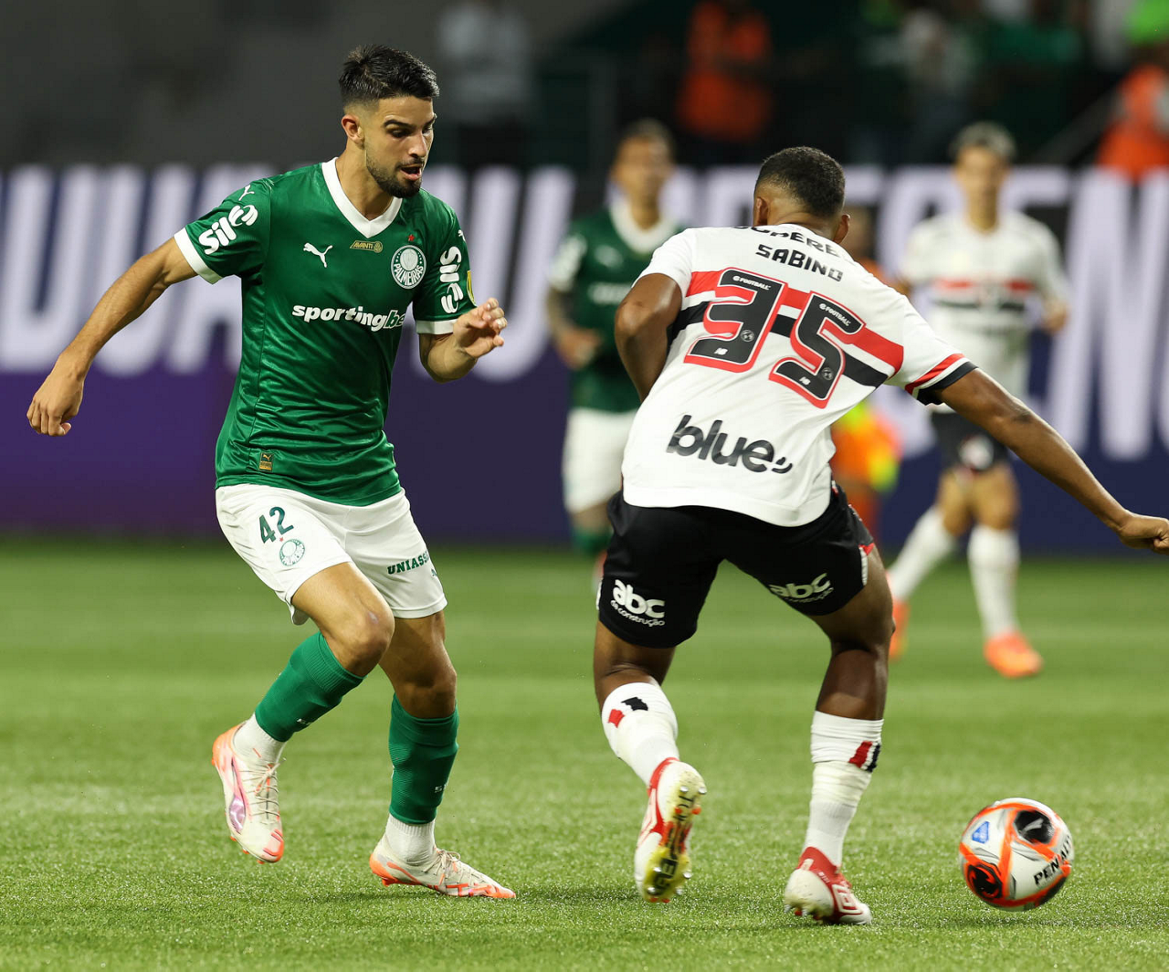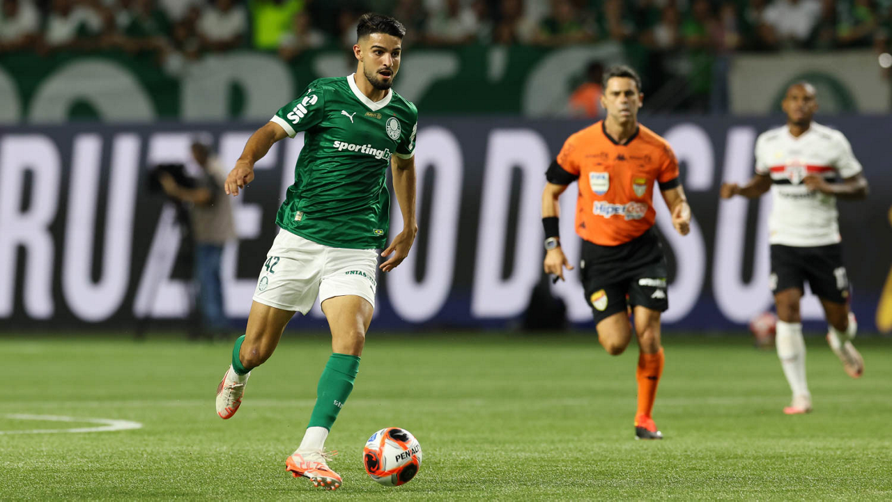 Os jogadores Vanderlan, Raphael Veiga e Flaco López (E/D), da SE Palmeiras, comemoram a classificação para a final contra equipe do São Paulo FC, após partida válida pela semifinal, do Campeonato Paulista, Série A1, na arena Allianz Parque. (Foto: Cesar Greco/Palmeiras/by Canon)