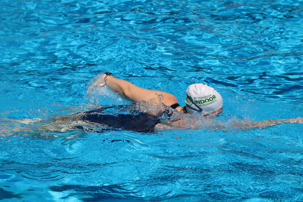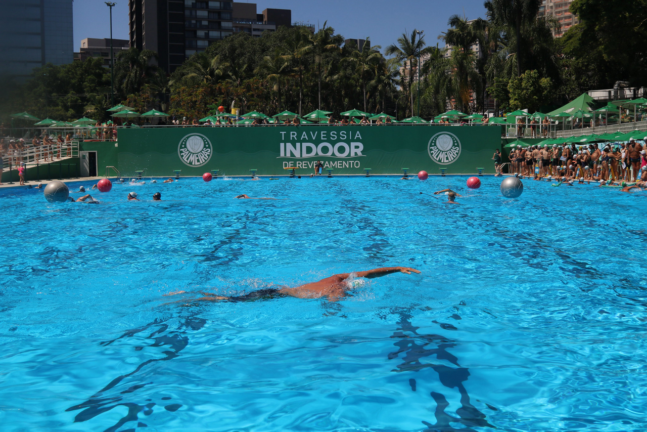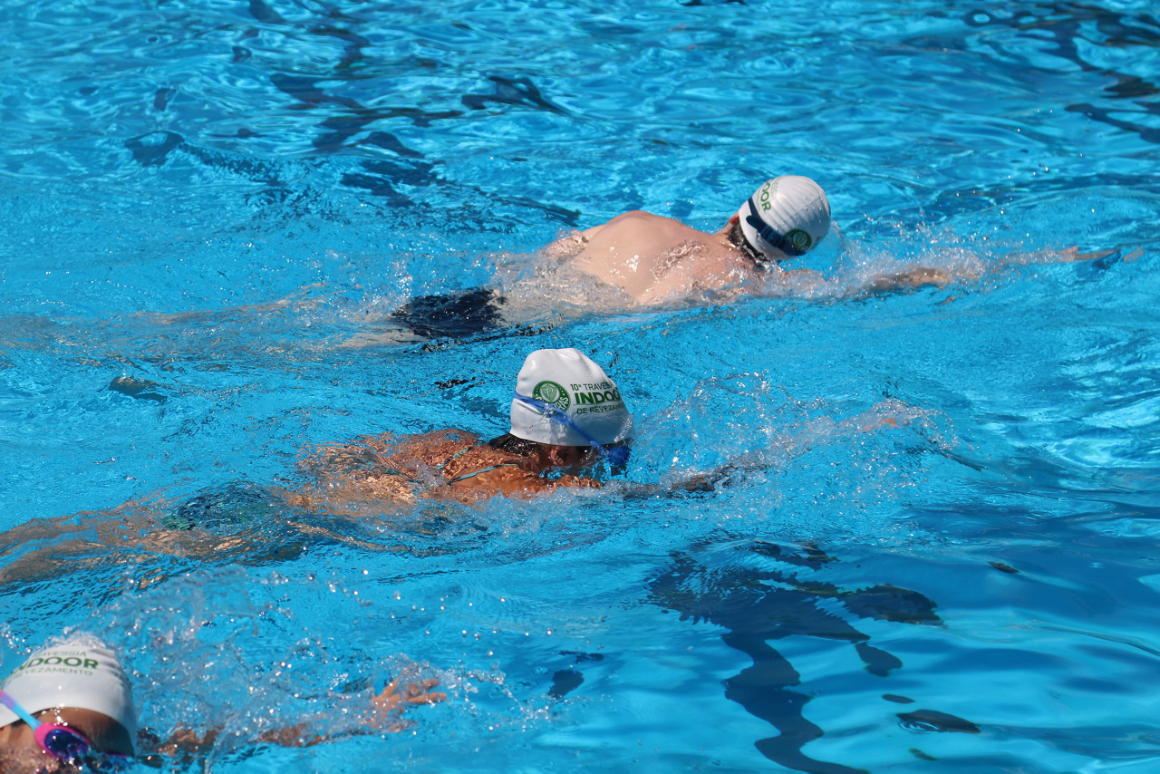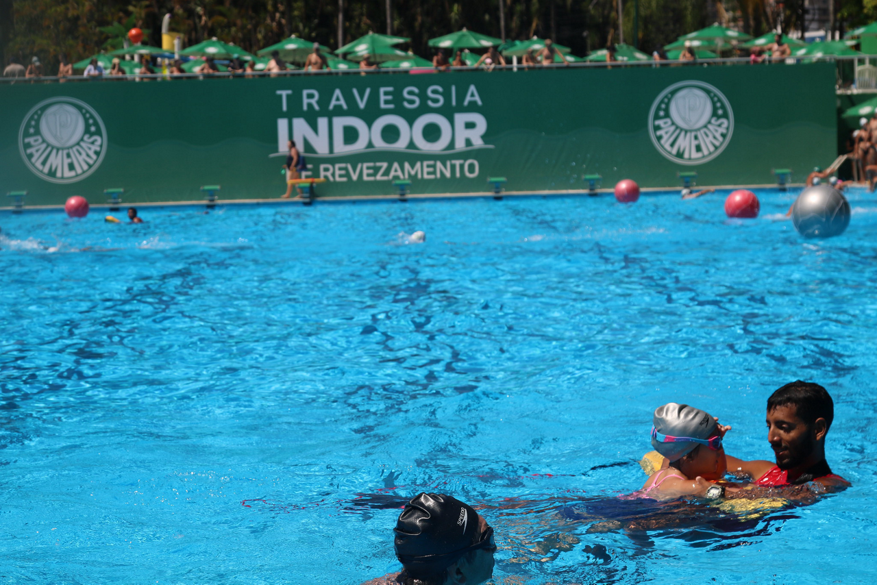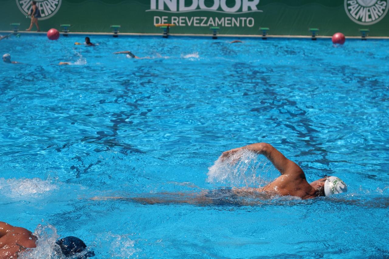 Prova de natação da 10ª Travessia Indoor, realizada na Sede Social da SEP, em São Paulo. (Foto: Stefanie Brunetti/Palmeiras