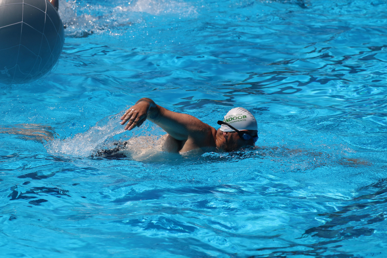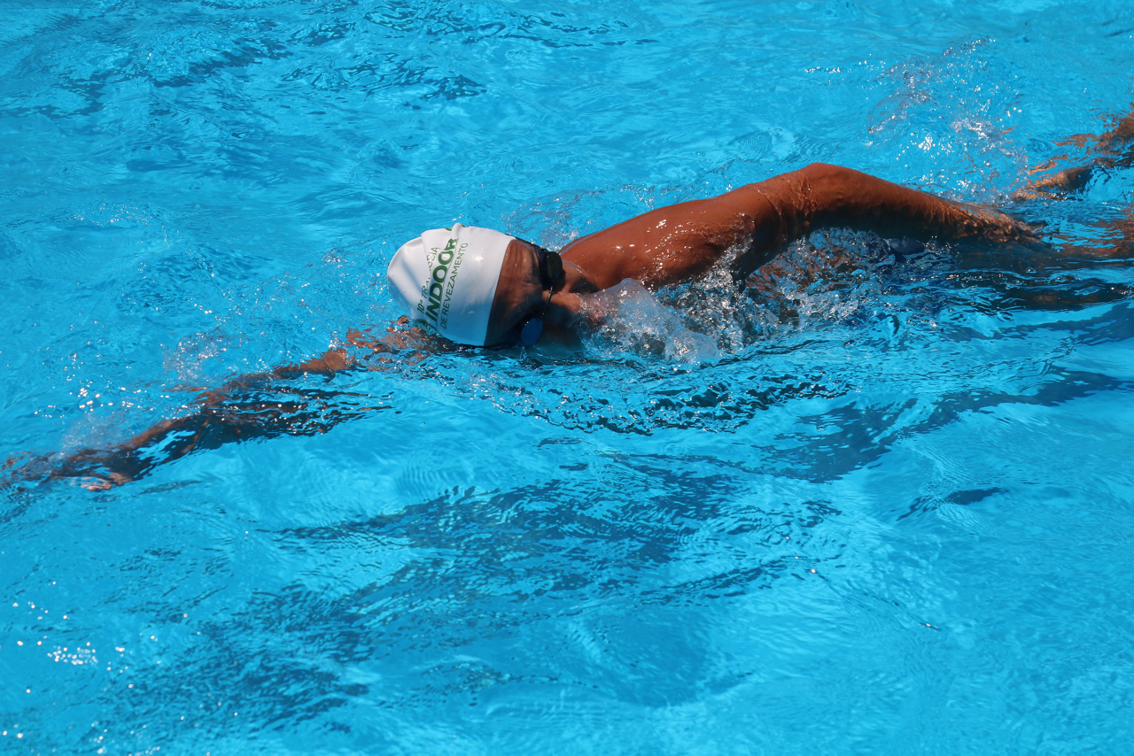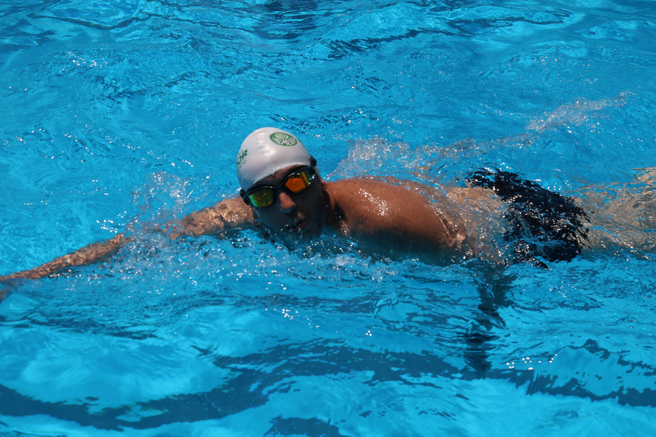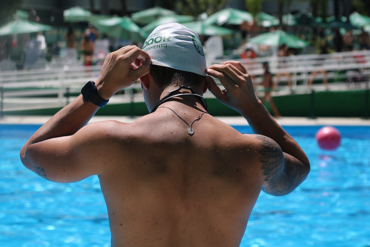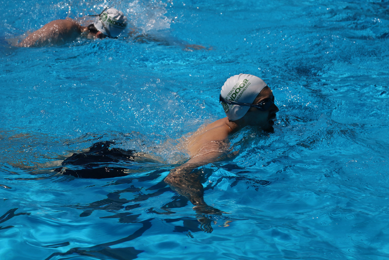 Prova de natação da 10ª Travessia Indoor, realizada na Sede Social da SEP, em São Paulo. (Foto: Stefanie Brunetti/Palmeiras