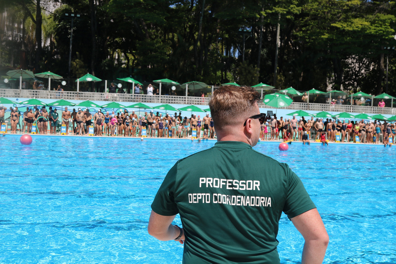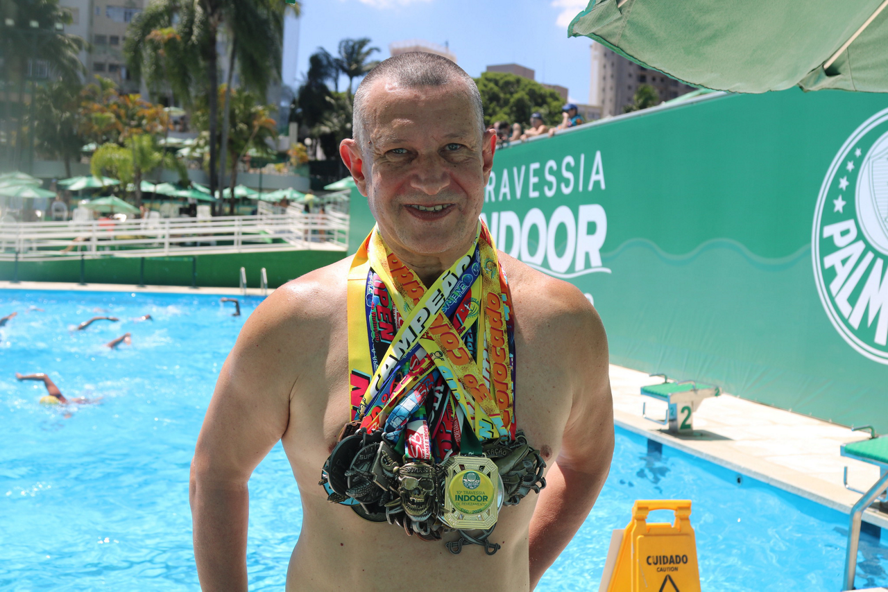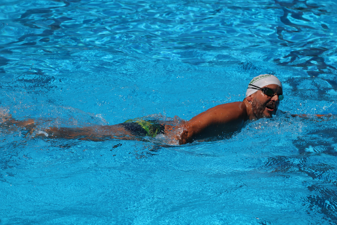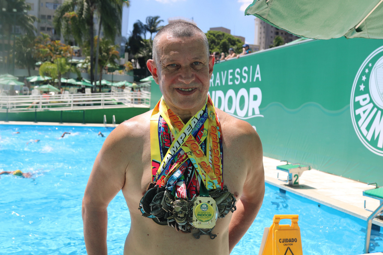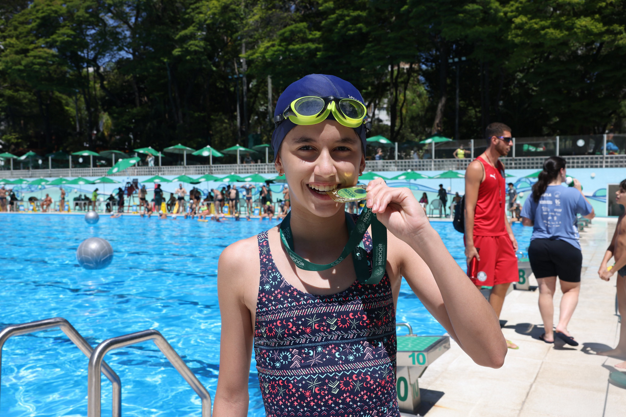 Prova de natação da 10ª Travessia Indoor, realizada na Sede Social da SEP, em São Paulo. (Foto: Stefanie Brunetti/Palmeiras