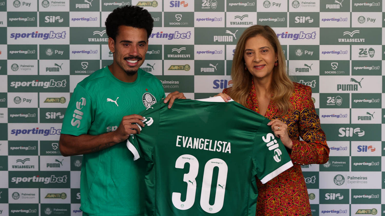 A presidente Leila Pereira, da SE Palmeiras, apresenta o mais novo atleta do clube Lucas Evangelista, na Academia de Futebol. (Foto: Cesar Greco/Palmeiras/by Canon)
