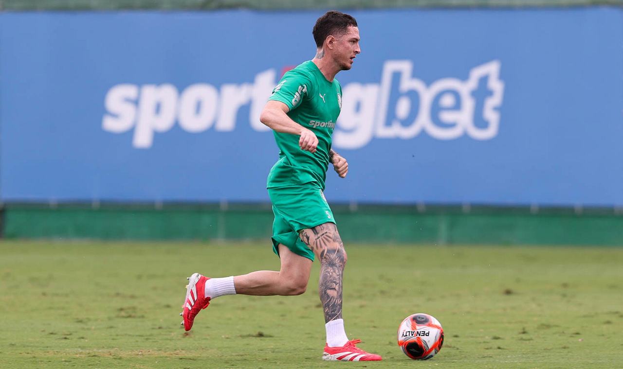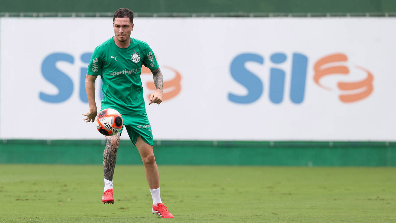 O jogador Agustín Giay, da SE Palmeiras, durante treinamento, na Academia de Futebol. (Foto: Cesar Greco/Palmeiras/by Canon)