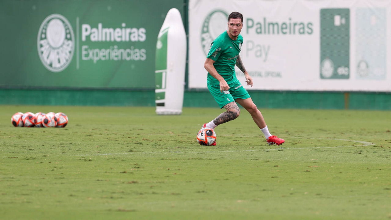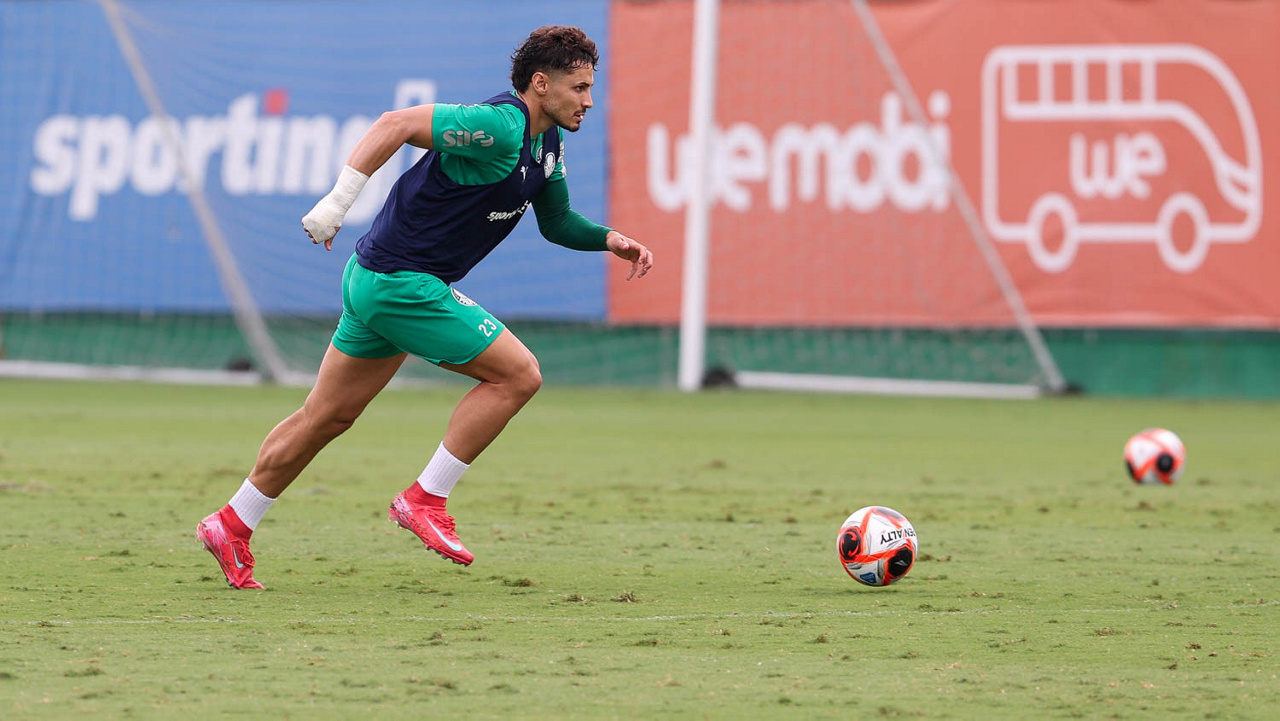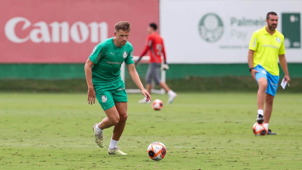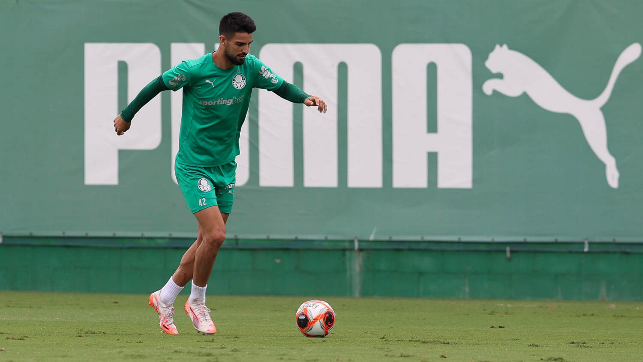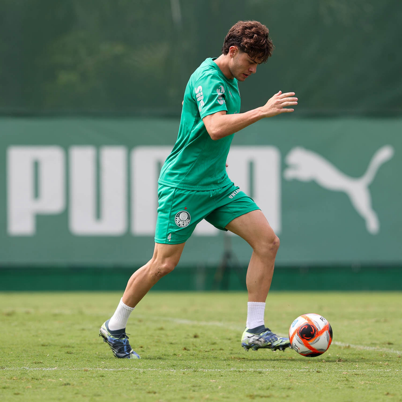 O jogador Bruno Fuchs, da SE Palmeiras, durante treinamento, na Academia de Futebol. (Foto: Cesar Greco/Palmeiras/by Canon)