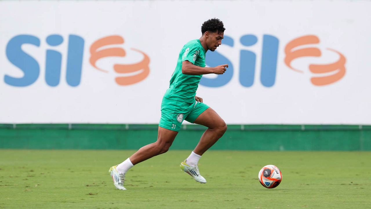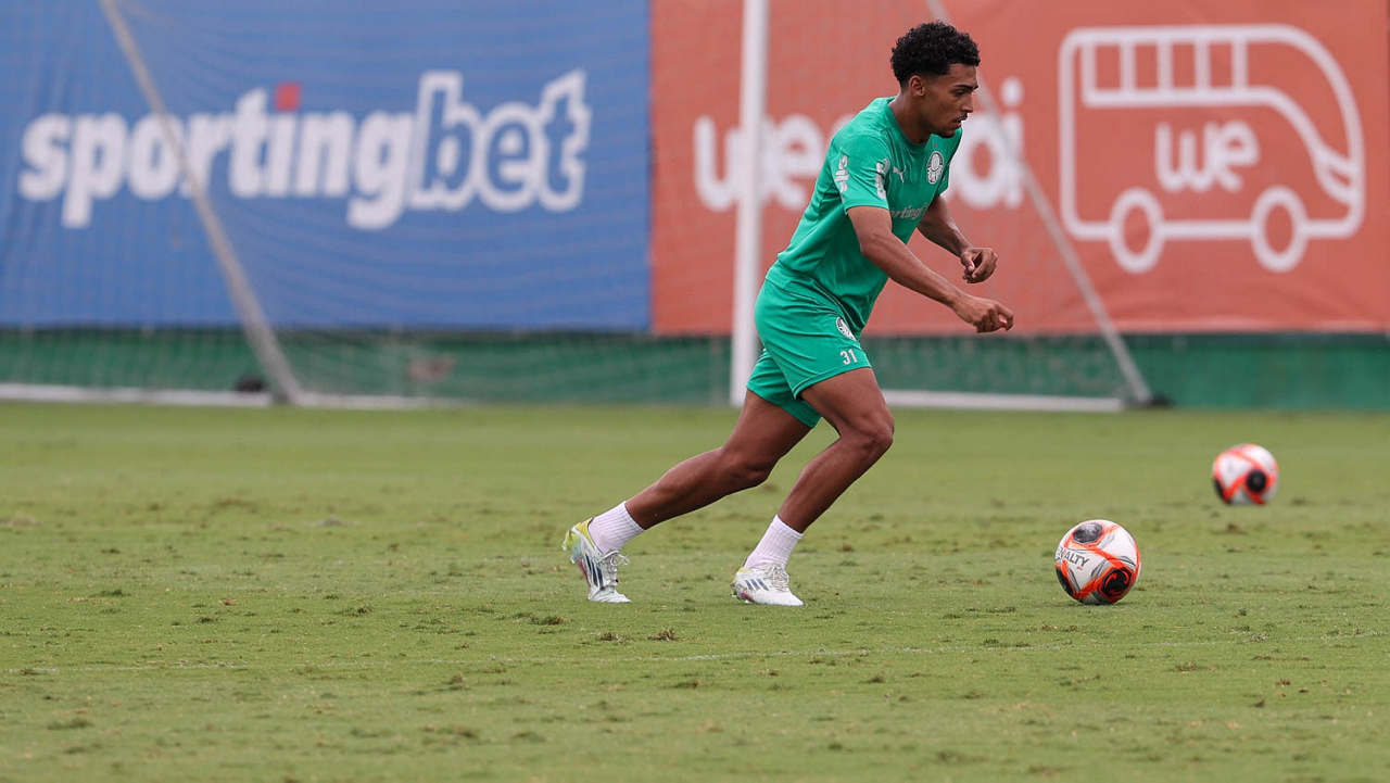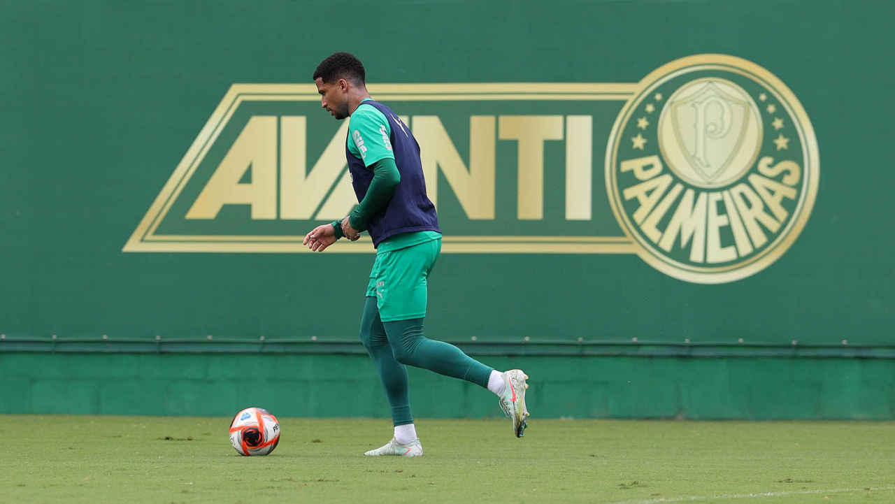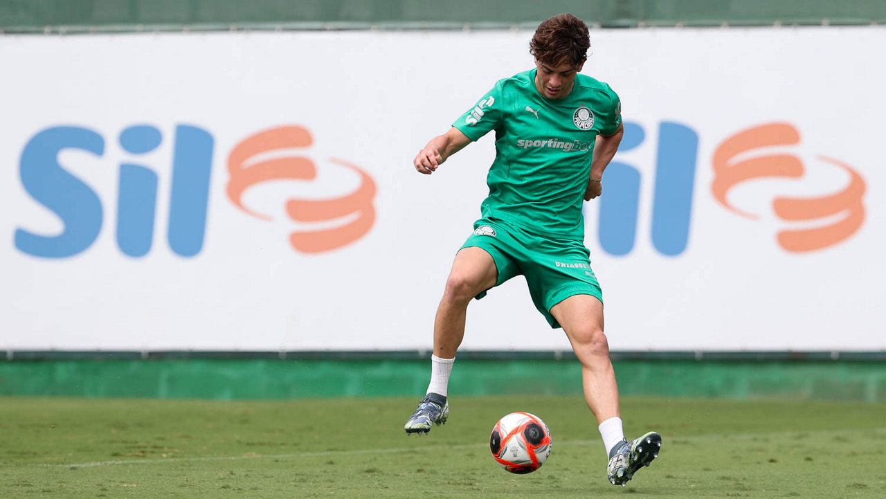 O jogador Vitor Roque, da SE Palmeiras, durante treinamento, na Academia de Futebol. (Foto: Cesar Greco/Palmeiras/by Canon)