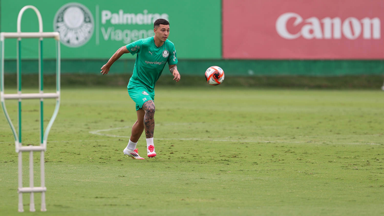 O jogador Raphael Veiga, da SE Palmeiras, durante treinamento, na Academia de Futebol. (Foto: Cesar Greco/Palmeiras/by Canon)