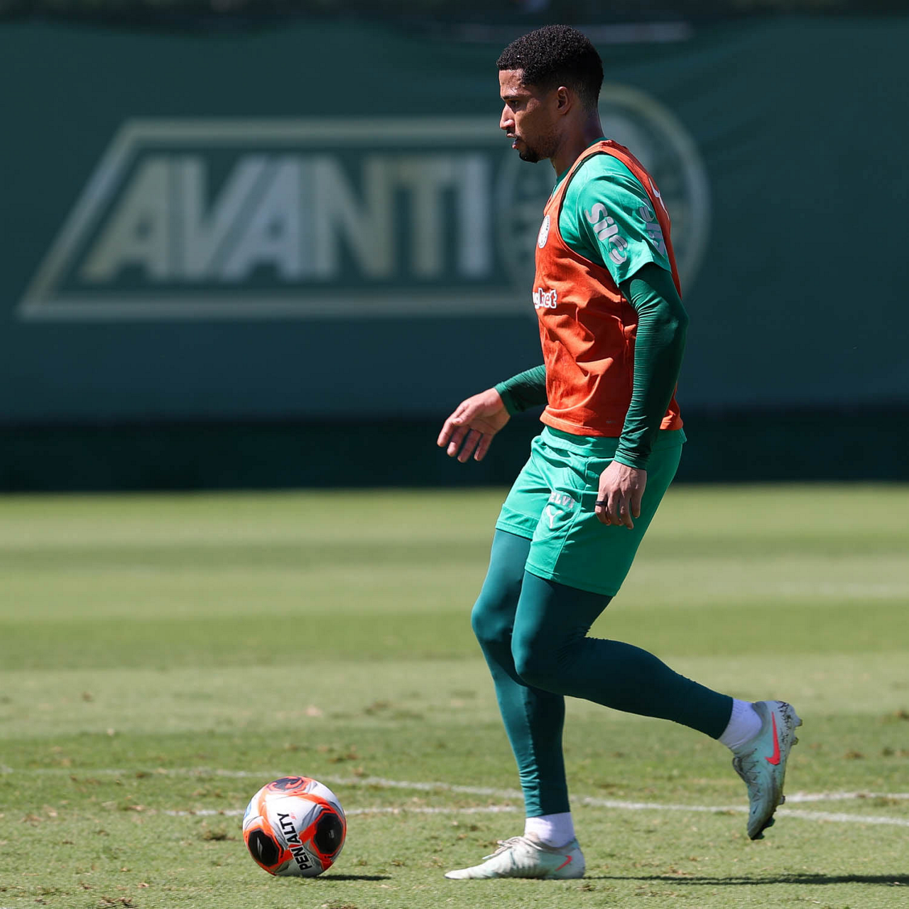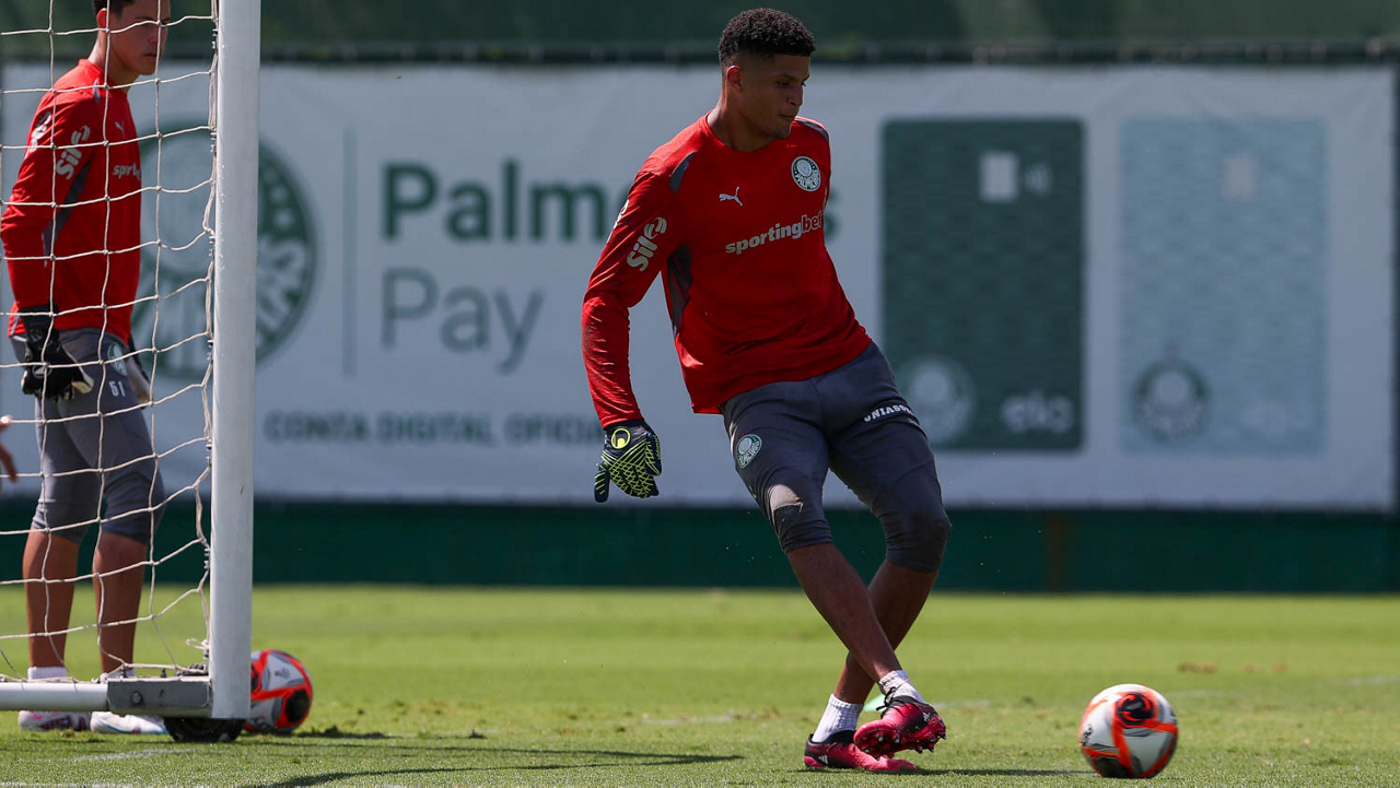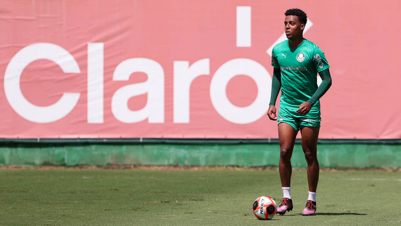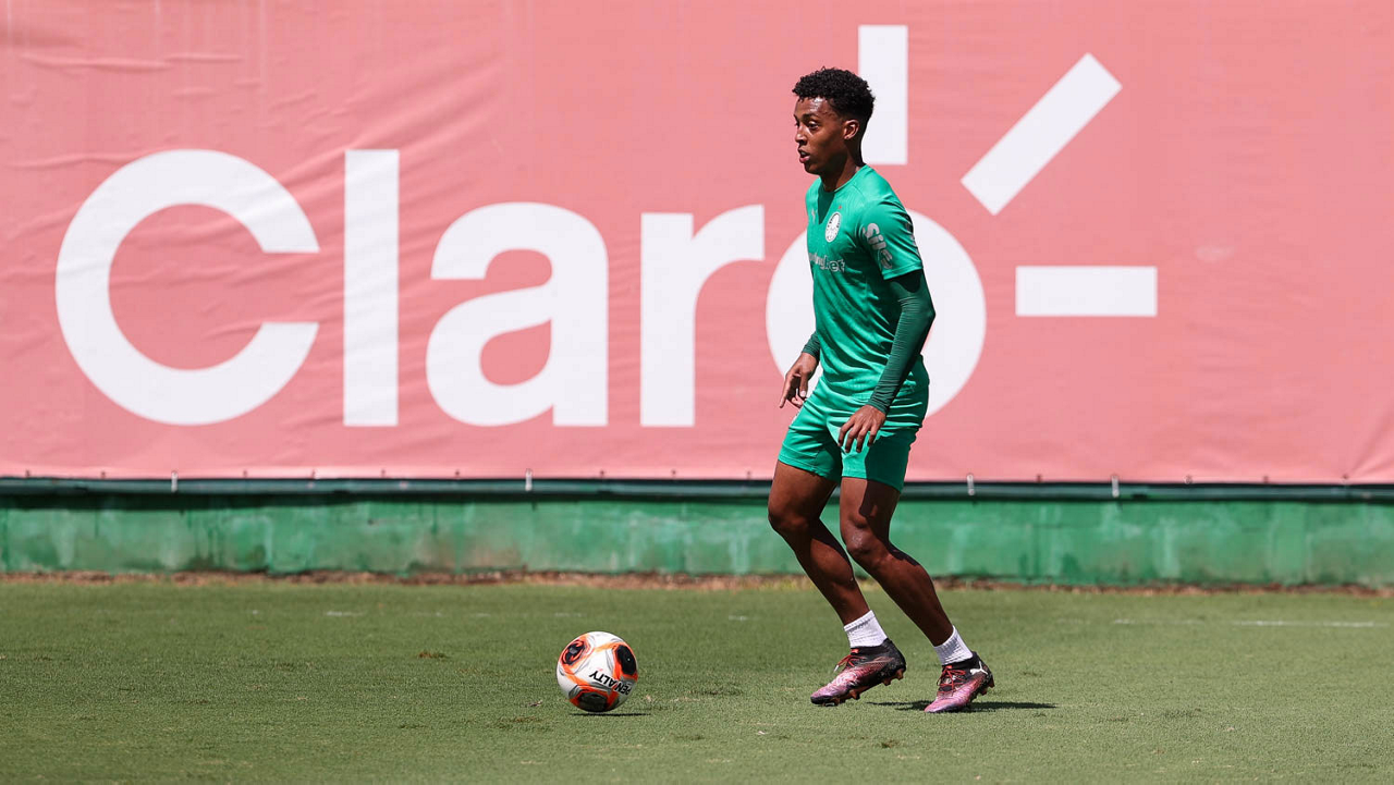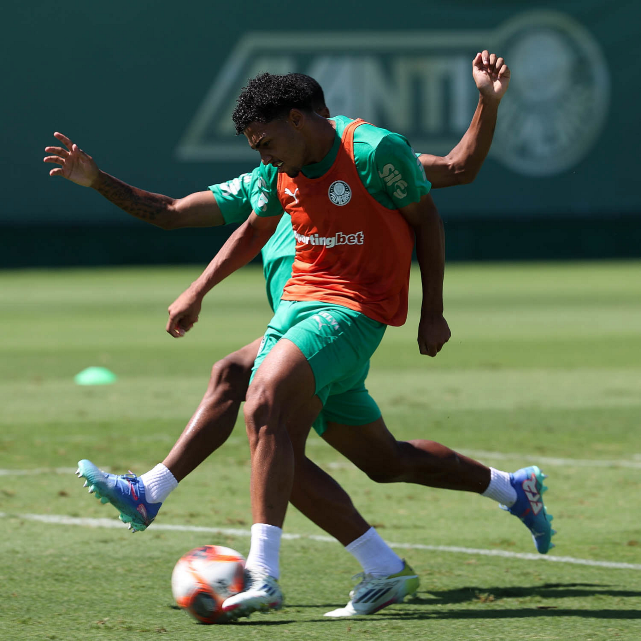 O jogador Vitor Roque, da SE Palmeiras, durante treinamento, na Academia de Futebol. (Foto: Cesar Greco/Palmeiras/by Canon)