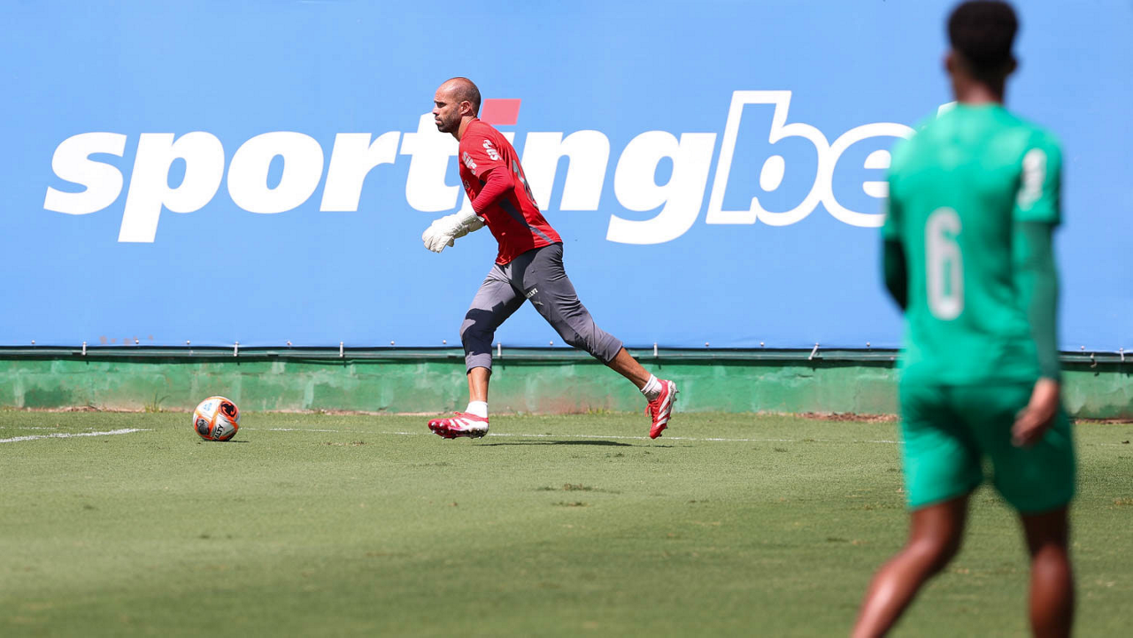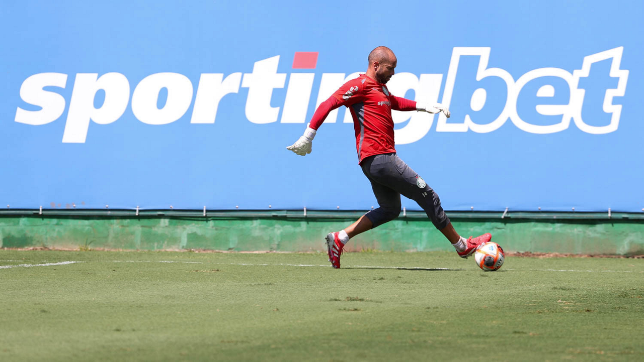O goleiro Mateus, da SE Palmeiras, durante treinamento, na Academia de Futebol. (Foto: Cesar Greco/Palmeiras/by Canon)