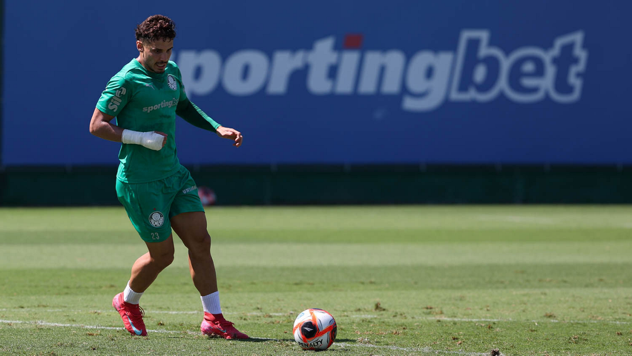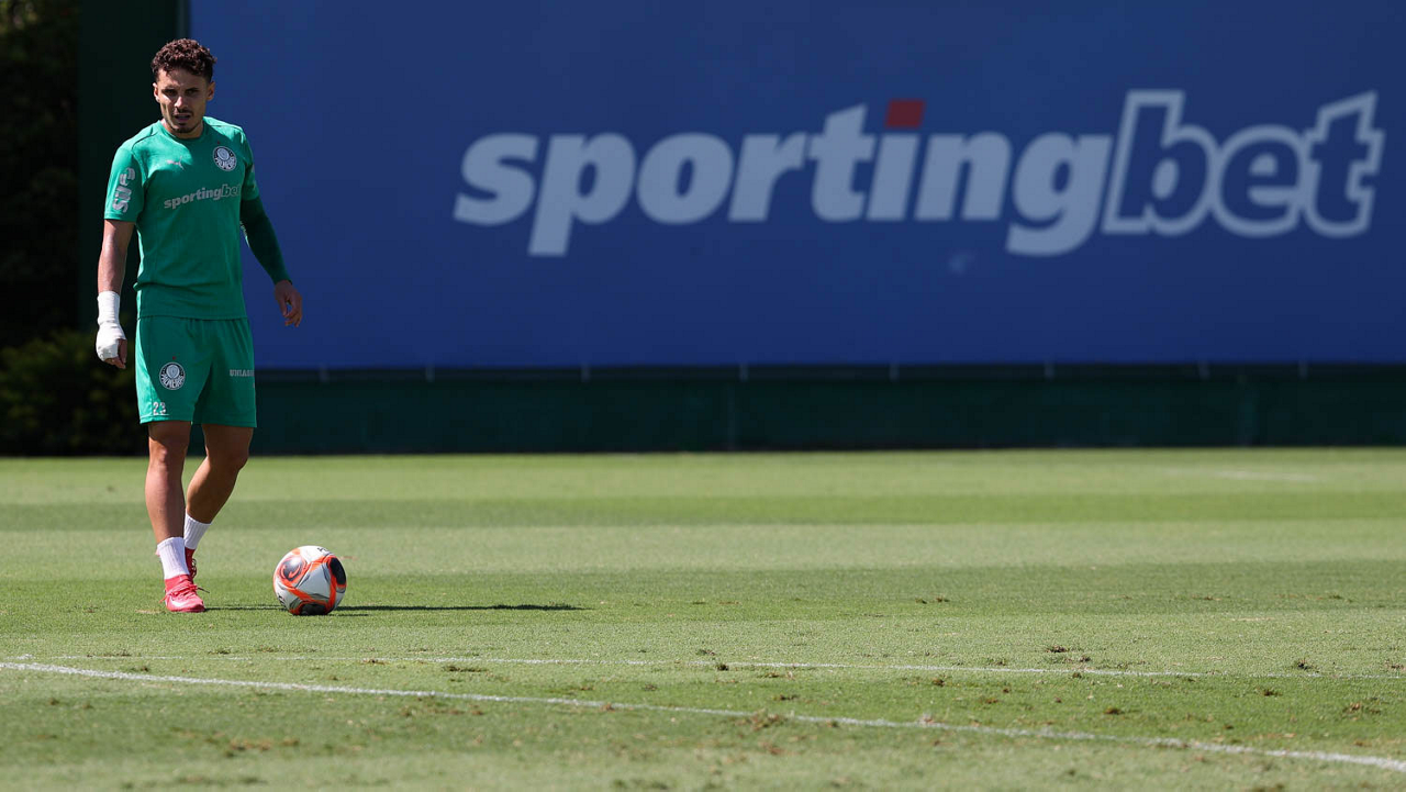 O jogador Bruno Fuchs, da SE Palmeiras, durante treinamento, na Academia de Futebol. (Foto: Cesar Greco/Palmeiras/by Canon)
