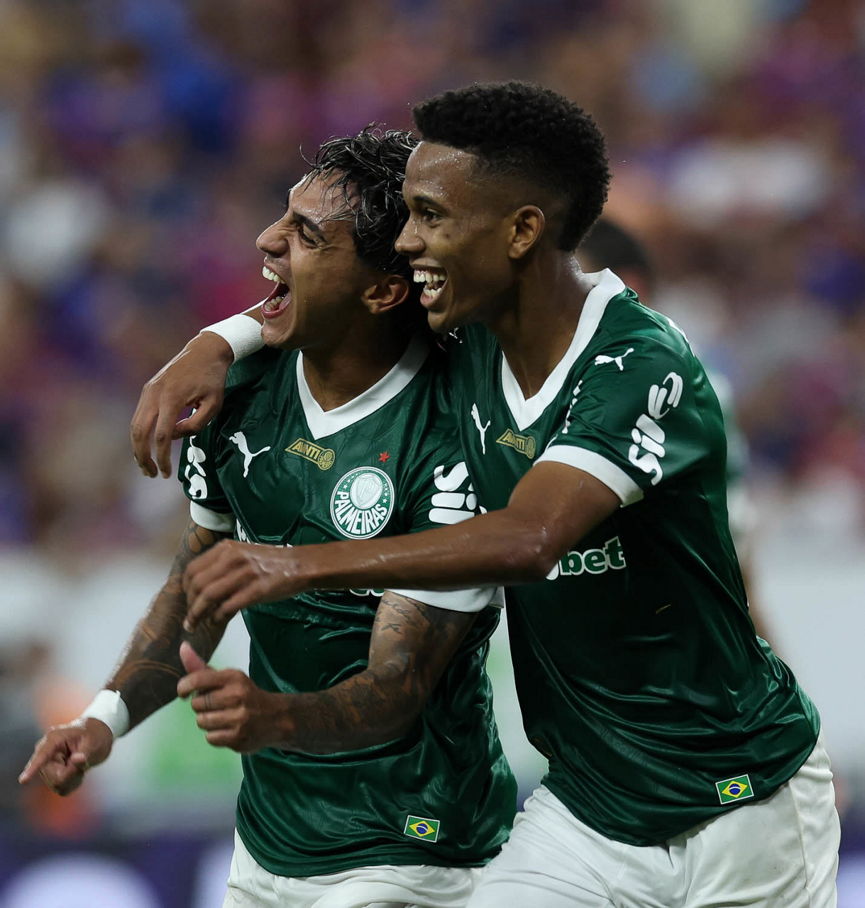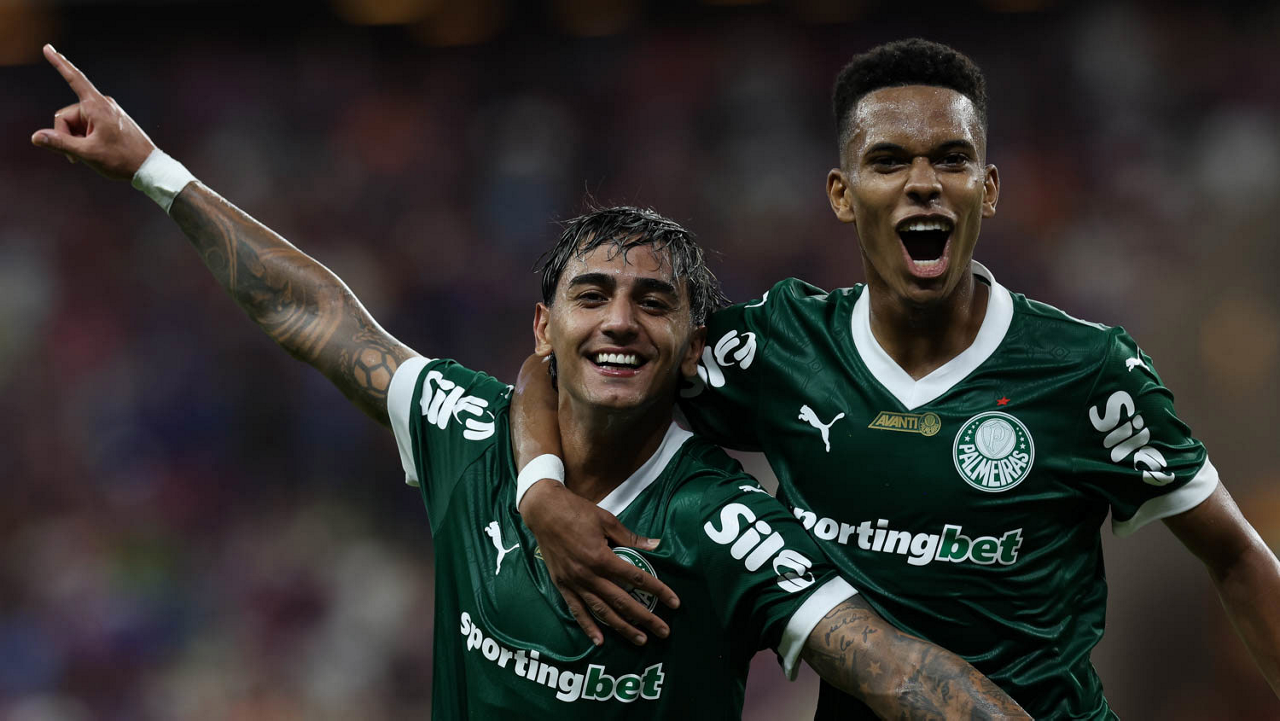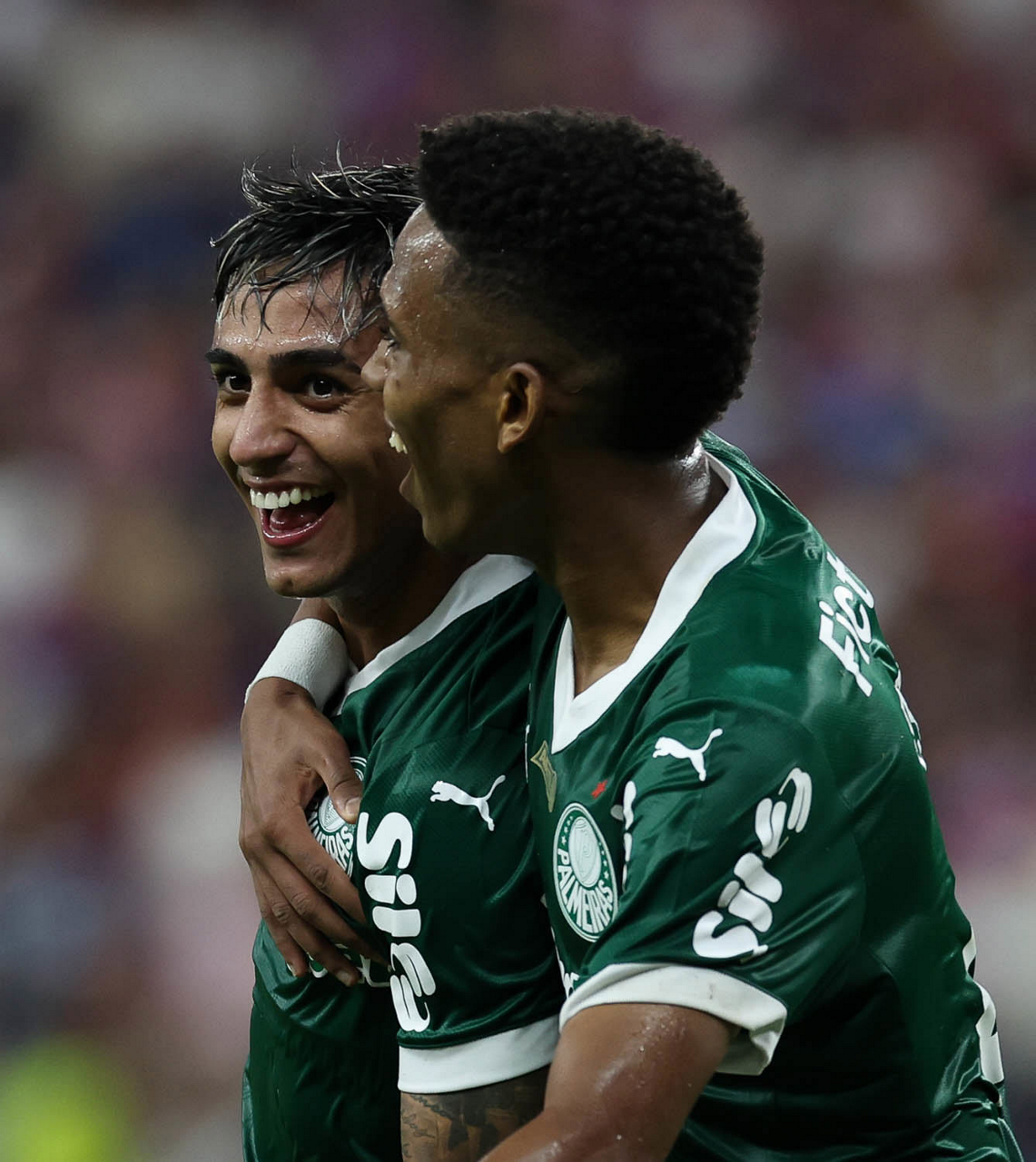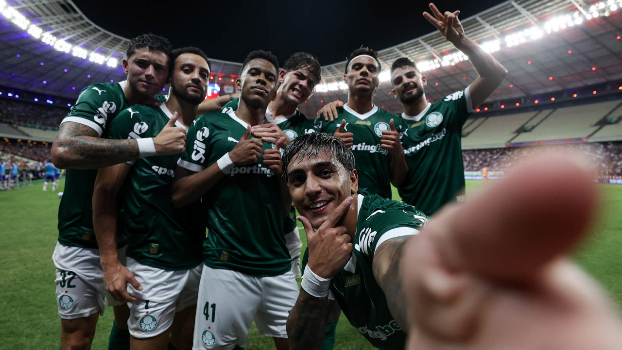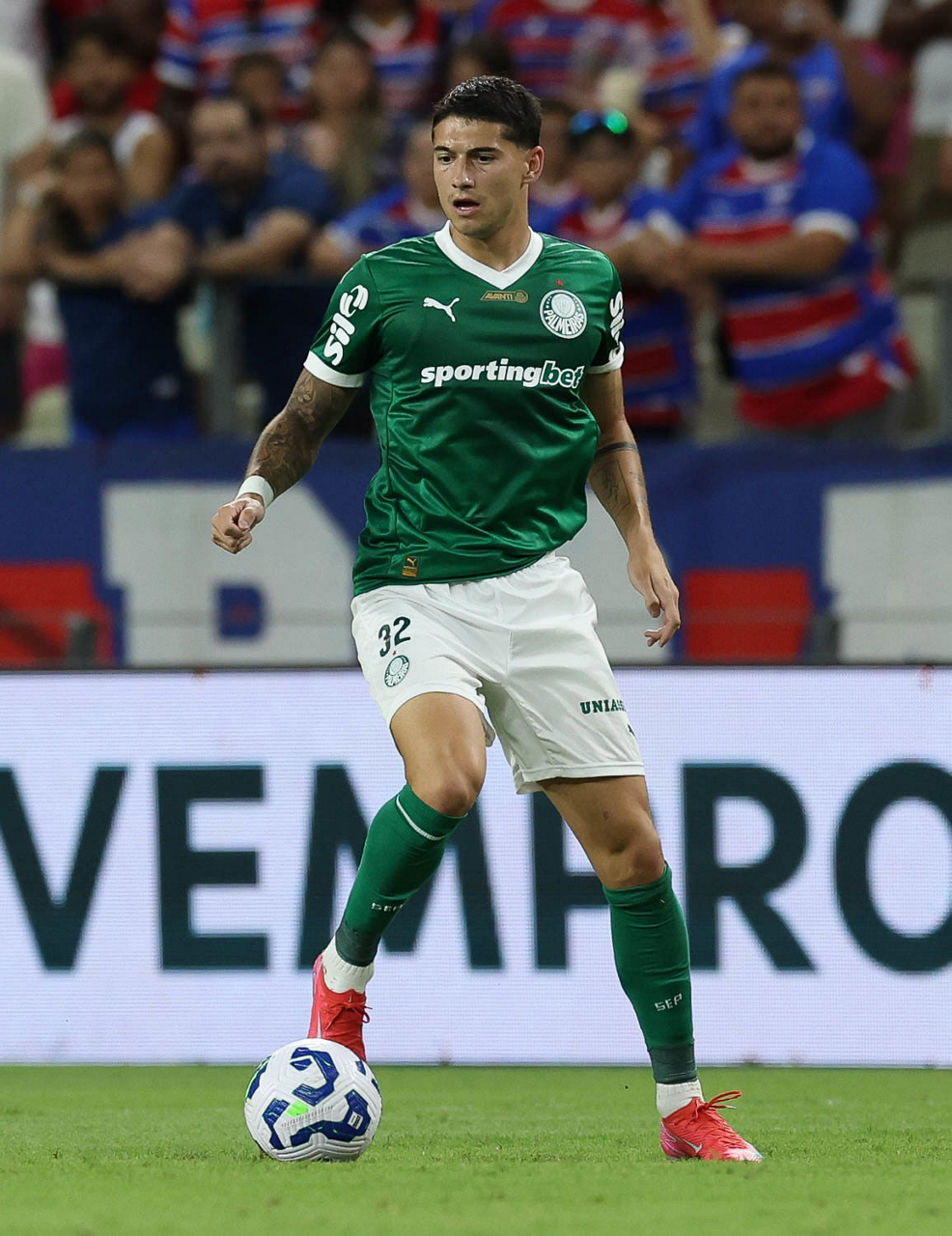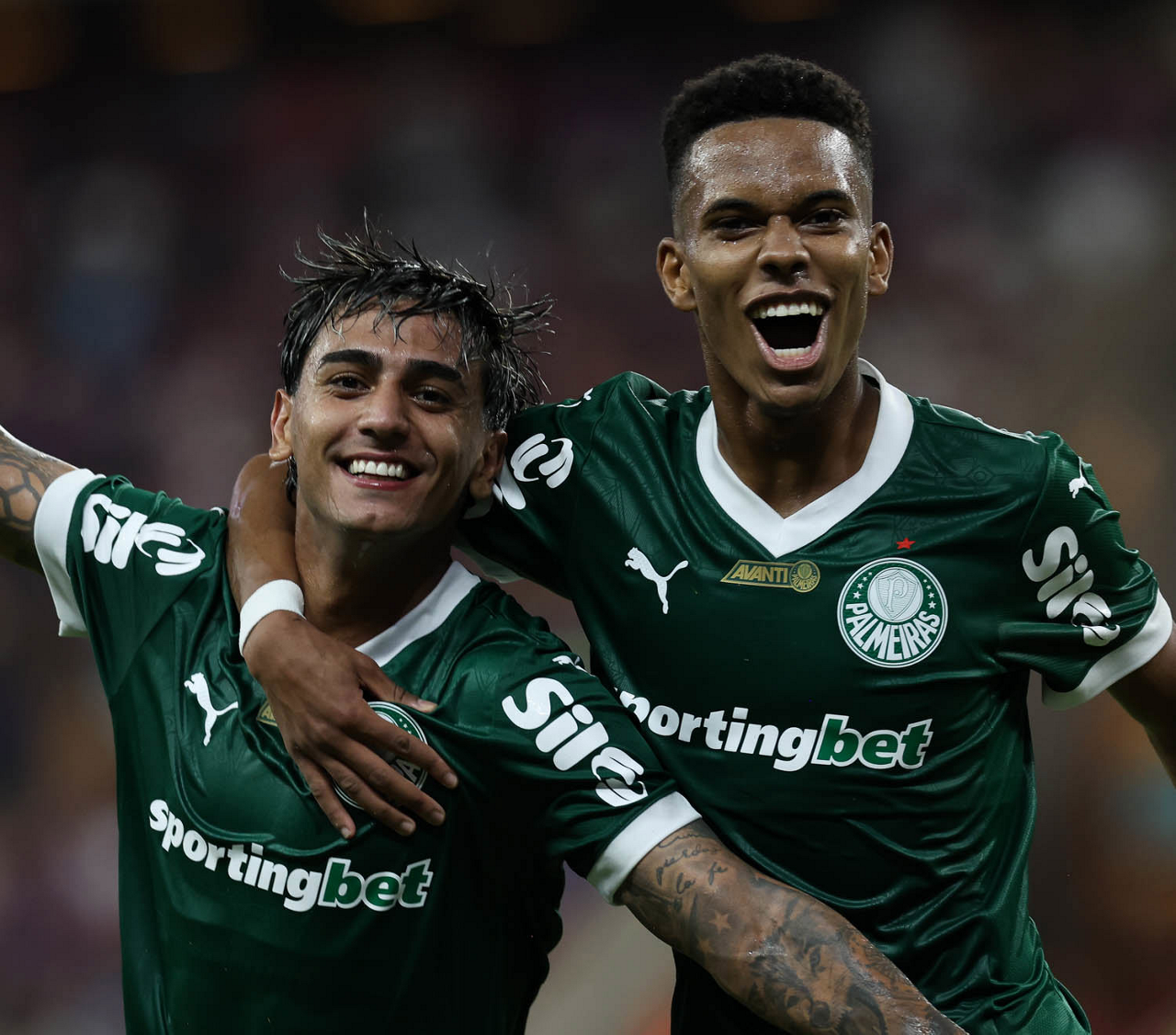 O técnico Abel Ferreira e o preparador físico João Martins (D), da SE Palmeiras, em jogo contra a equipe do Fortaleza EC, durante partida válida pela quinta rodada, do Campeonato Brasileiro, Série A, na Arena Castelão. (Foto: Cesar Greco/Palmeiras/by Canon)