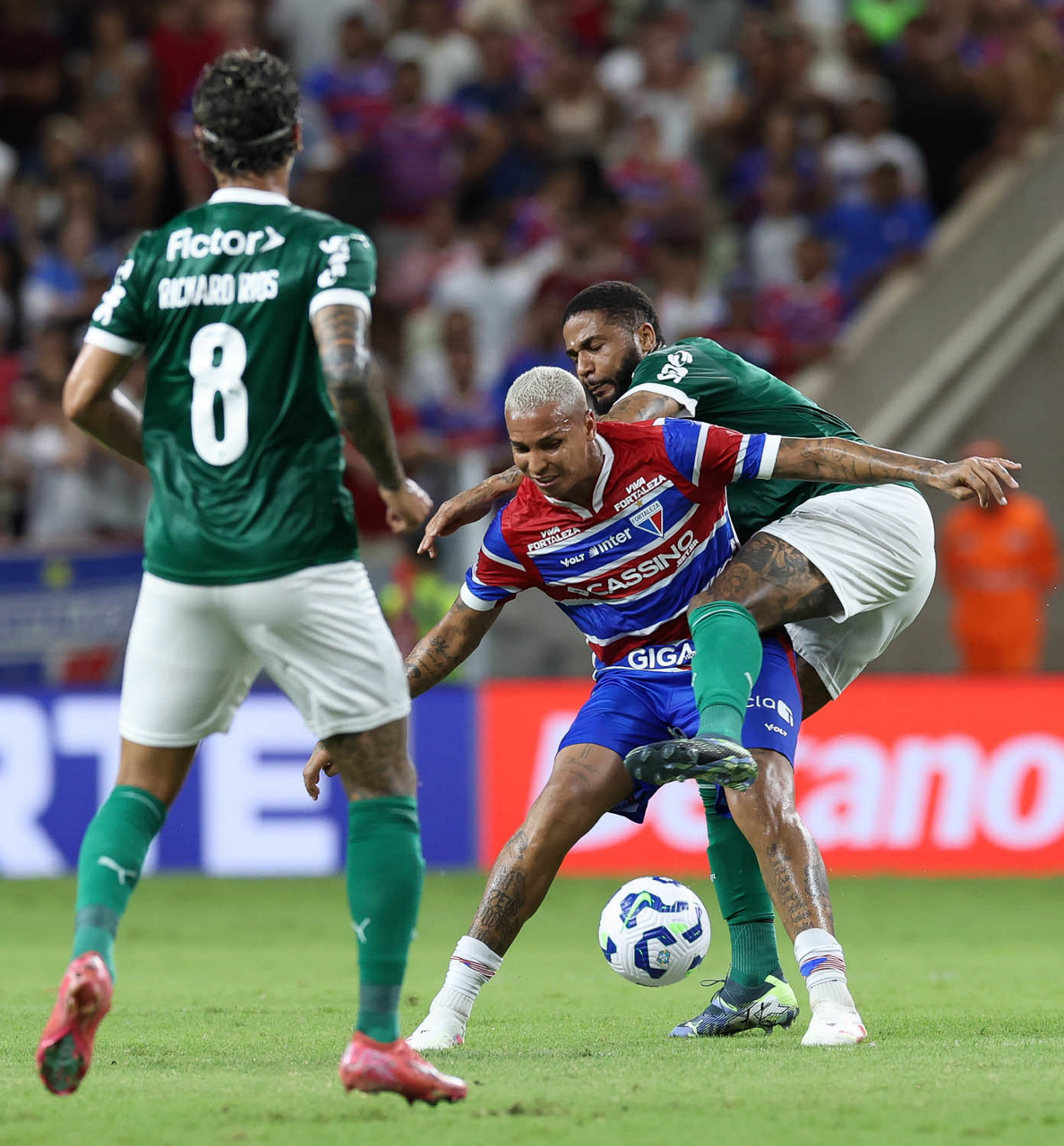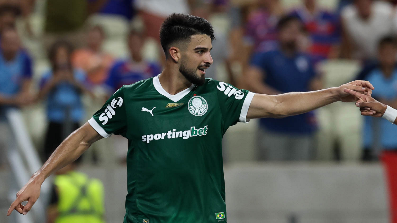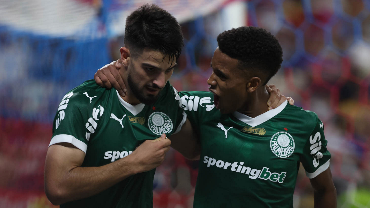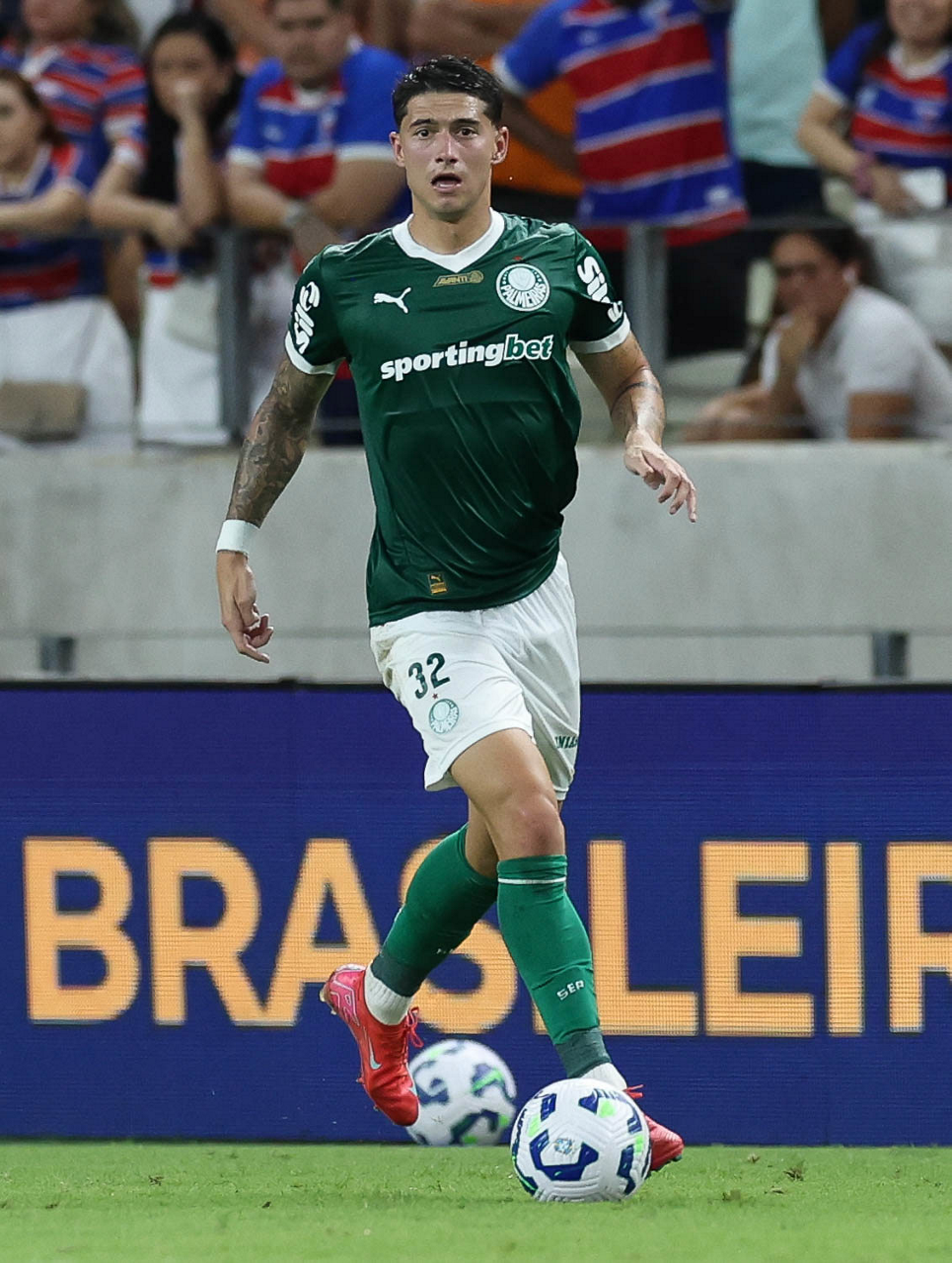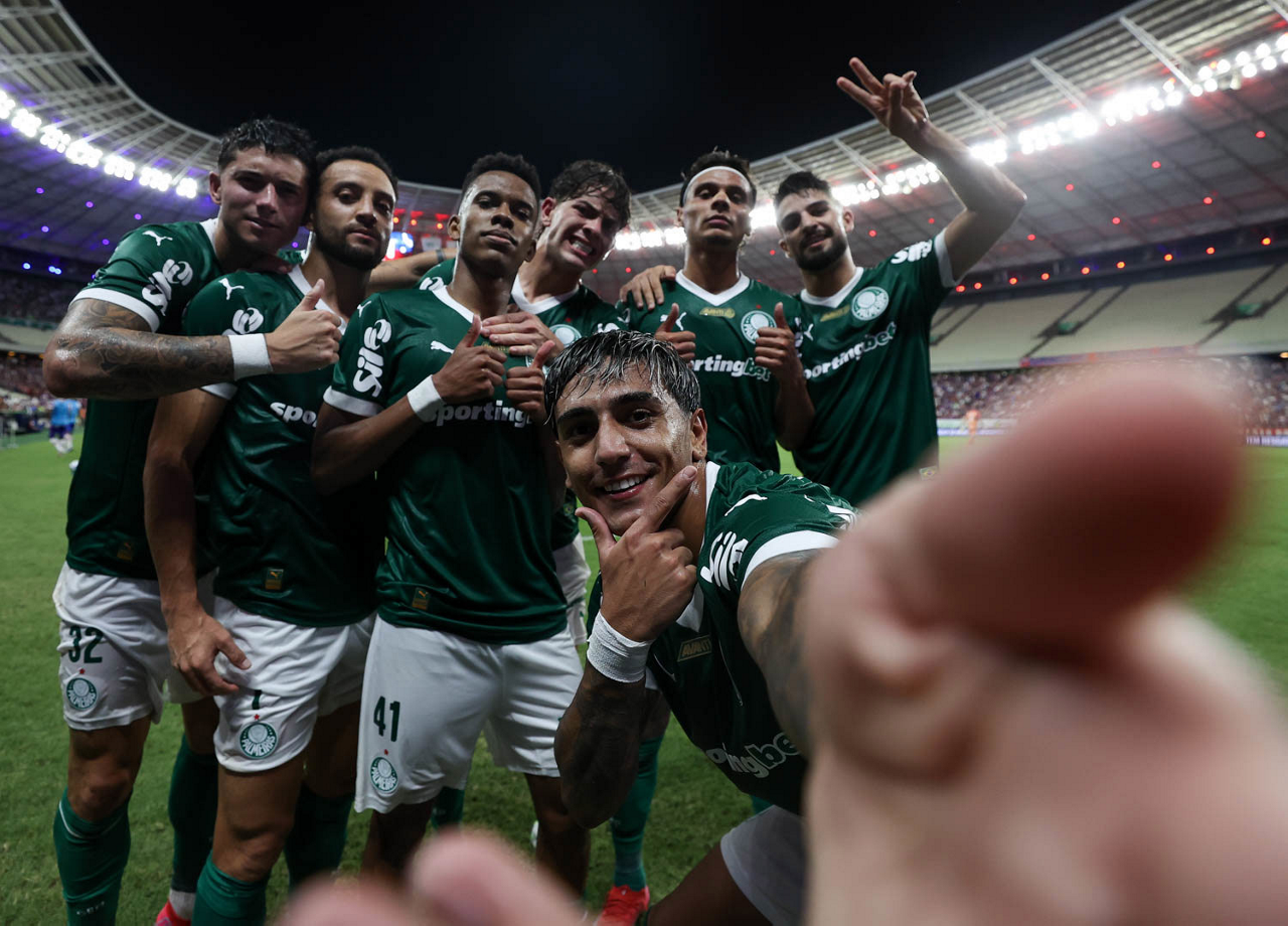 O técnico Abel Ferreira e o preparador físico João Martins (D), da SE Palmeiras, em jogo contra a equipe do Fortaleza EC, durante partida válida pela quinta rodada, do Campeonato Brasileiro, Série A, na Arena Castelão. (Foto: Cesar Greco/Palmeiras/by Canon)