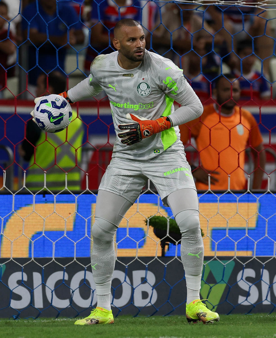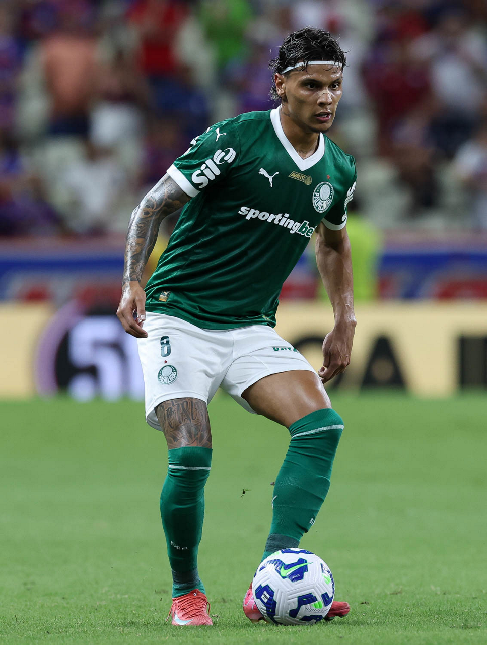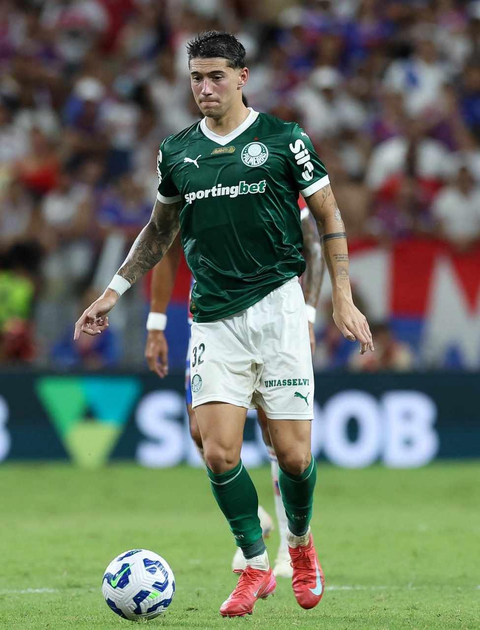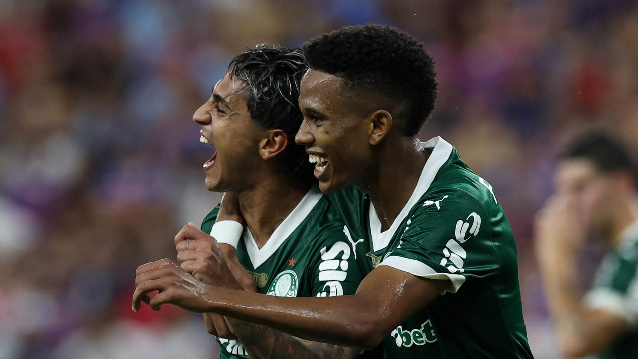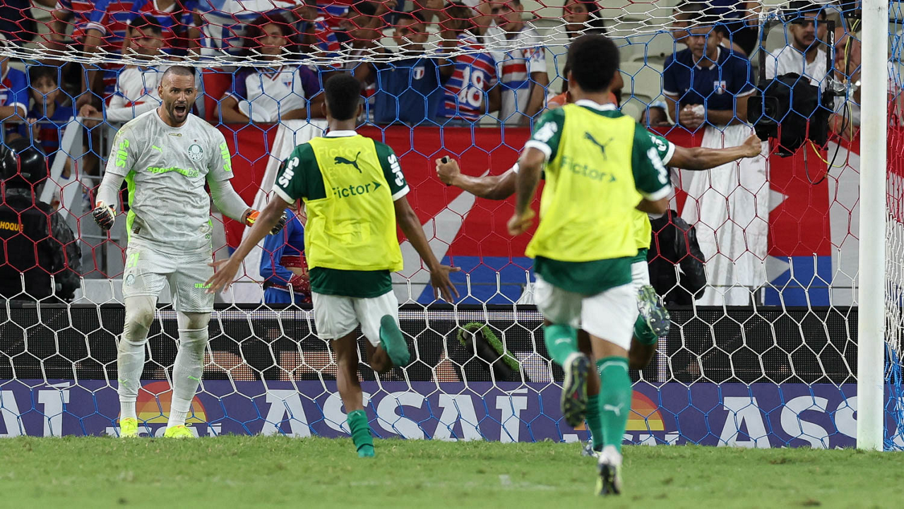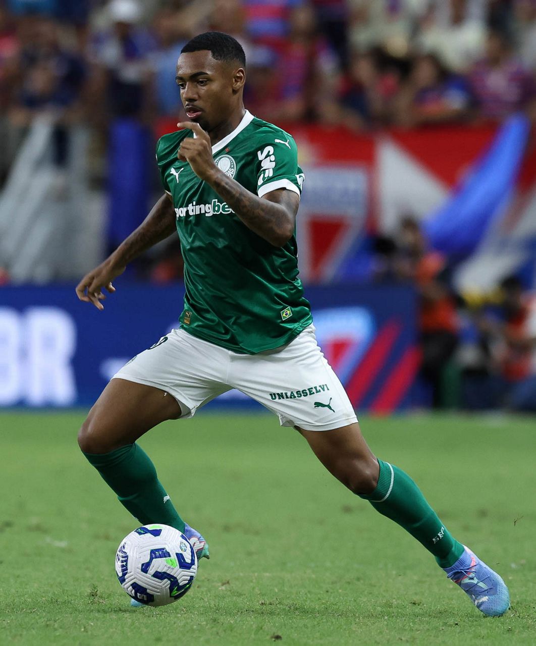 O técnico Abel Ferreira e o preparador físico João Martins (D), da SE Palmeiras, em jogo contra a equipe do Fortaleza EC, durante partida válida pela quinta rodada, do Campeonato Brasileiro, Série A, na Arena Castelão. (Foto: Cesar Greco/Palmeiras/by Canon)