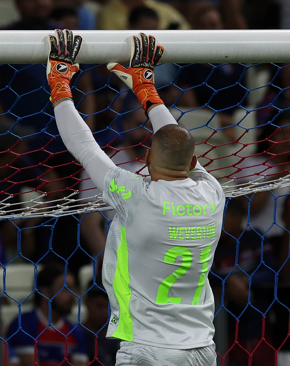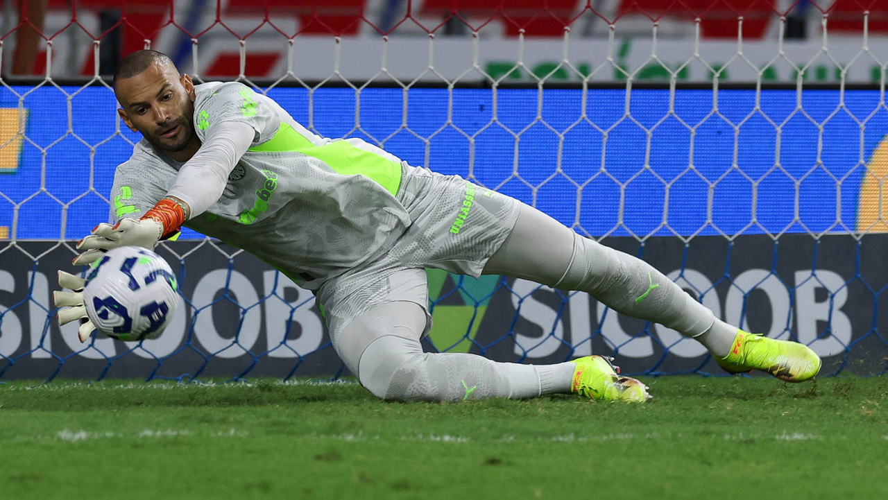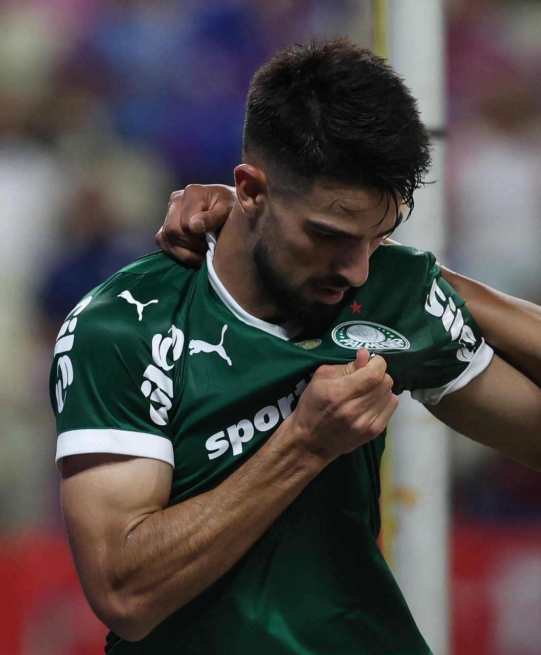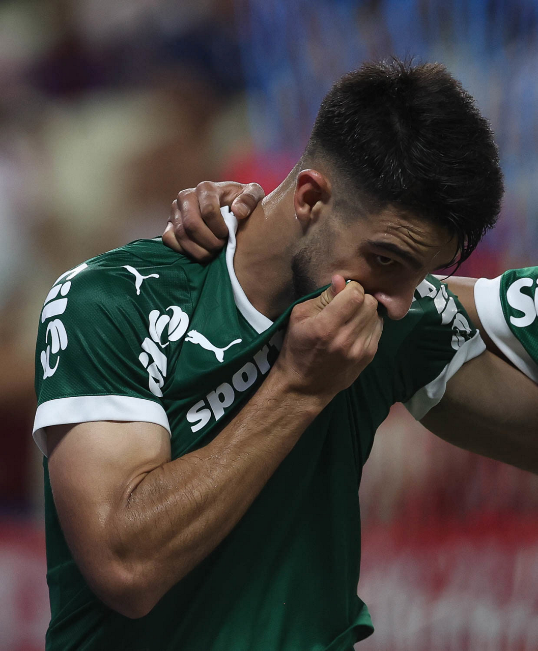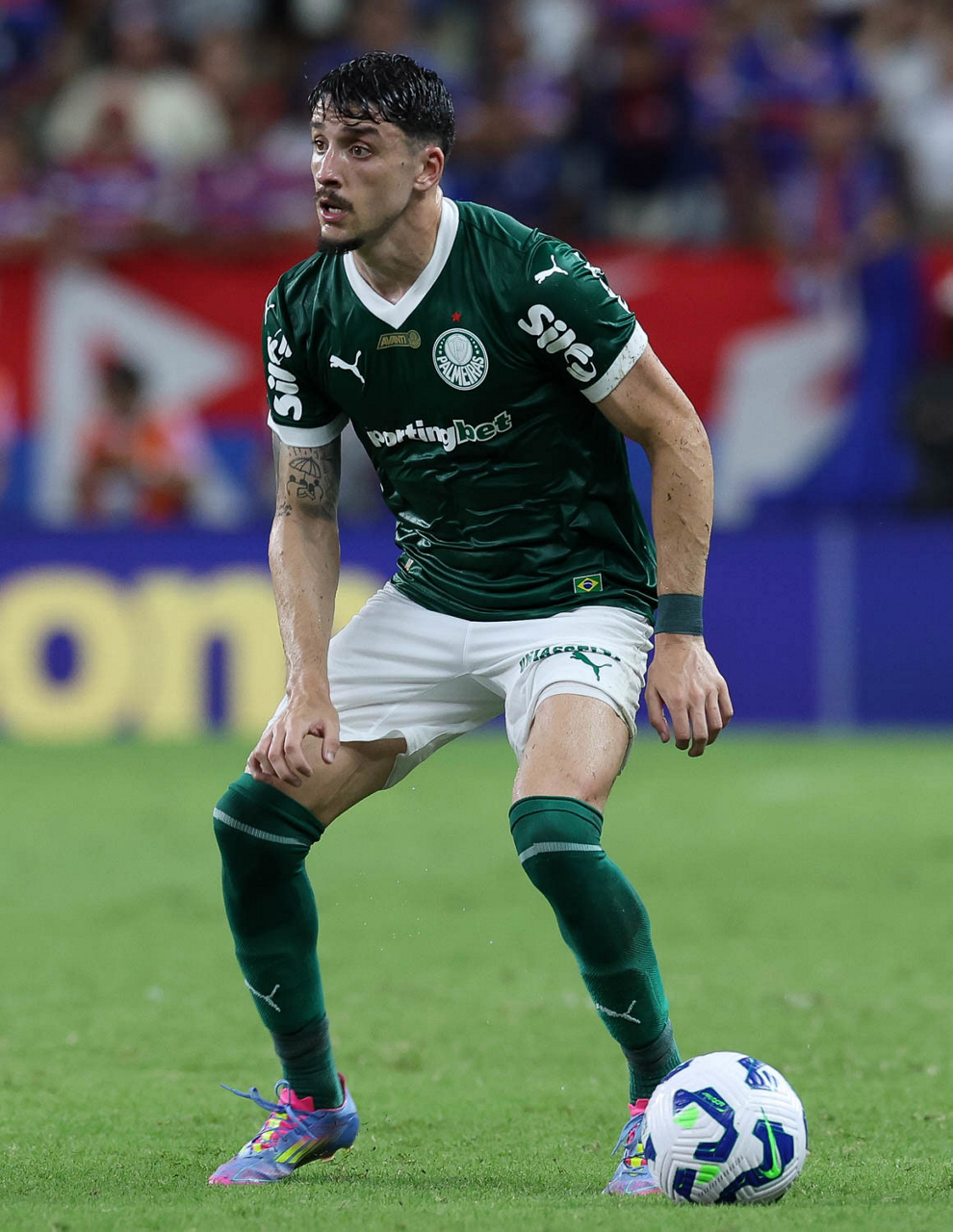 O técnico Abel Ferreira e o preparador físico João Martins (D), da SE Palmeiras, em jogo contra a equipe do Fortaleza EC, durante partida válida pela quinta rodada, do Campeonato Brasileiro, Série A, na Arena Castelão. (Foto: Cesar Greco/Palmeiras/by Canon)