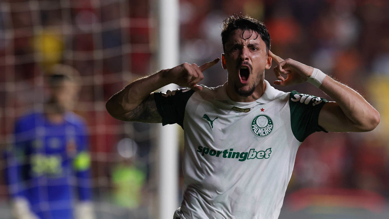 O jogador Joaquín Piquerez, da SE Palmeiras, cobra pênalti para marcar seu gol contra a equipe do Sport CR, durante partida válida pela segunda rodada, do Campeonato Brasileiro, Série A, no Estádio Ilha do Retiro. (Foto: Cesar Greco/Palmeiras/by Canon)