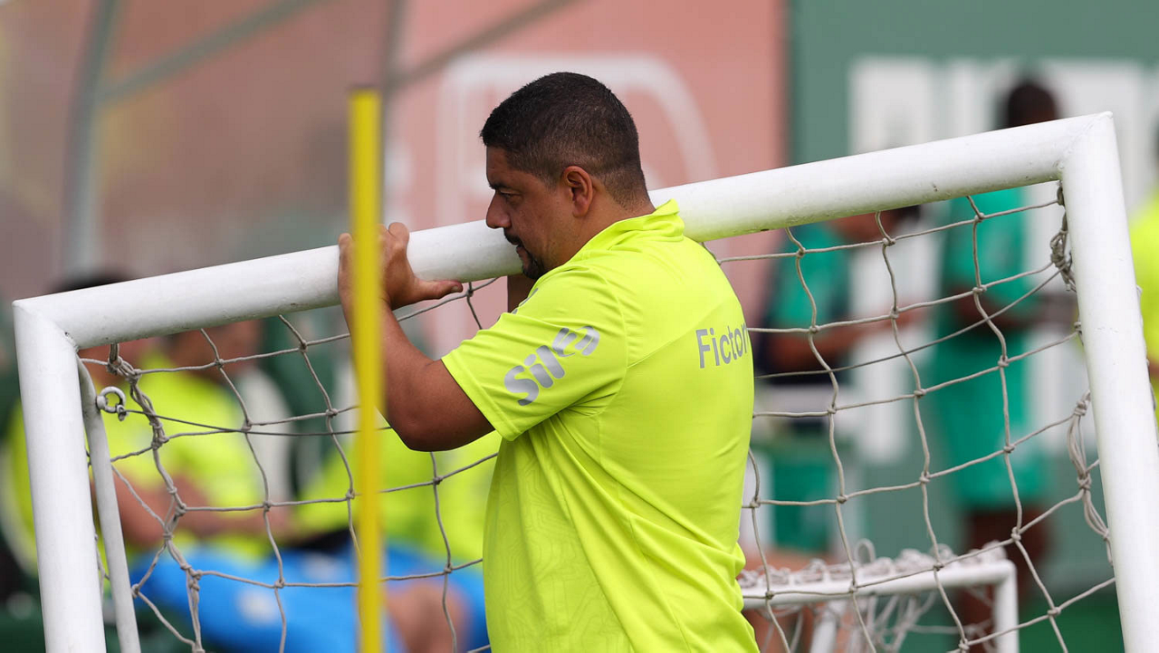 O técnico em enfermagem Daniel Lima, da SE Palmeiras, durante treinamento, na Academia de Futebol. (Foto: Cesar Greco/Palmeiras/by Canon)