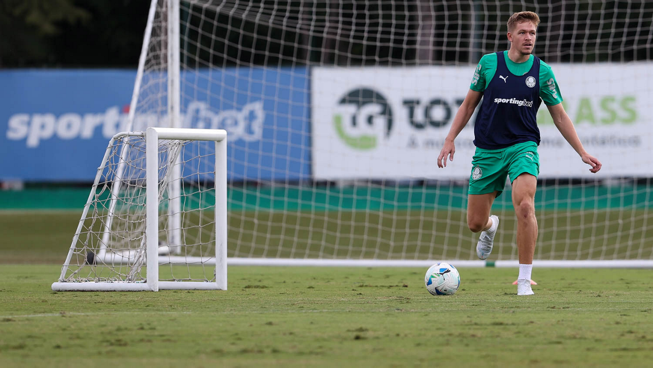 O jogador Bruno Fuchs, da SE Palmeiras, durante treinamento, na Academia de Futebol. (Foto: Cesar Greco/Palmeiras/by Canon)