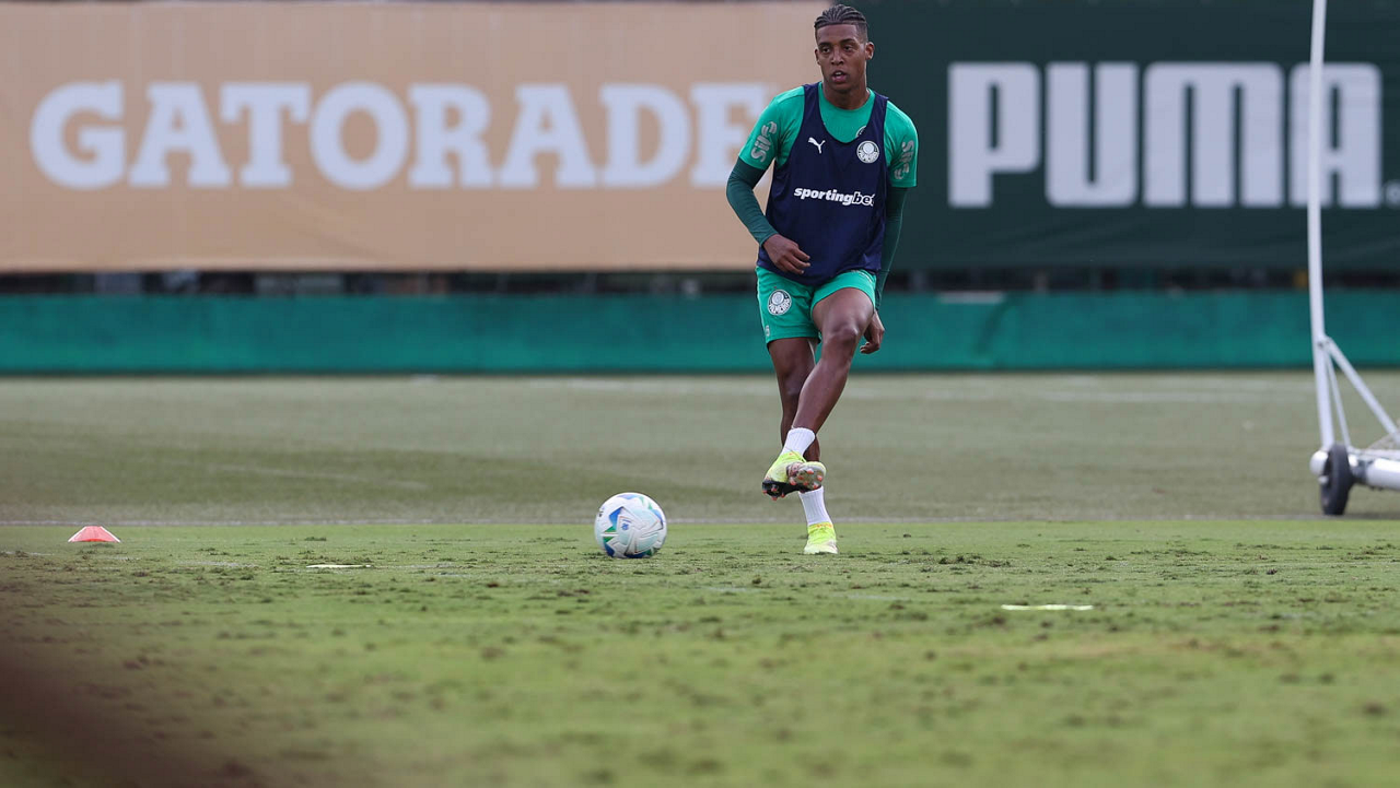 O jogador Vitor Roque, da SE Palmeiras, durante treinamento, na Academia de Futebol. (Foto: Cesar Greco/Palmeiras/by Canon)