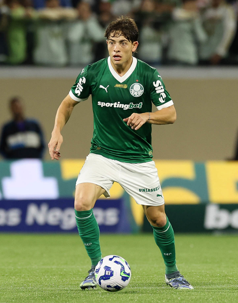 O jogador Raphael Veiga, o auxiliar técnico Vitor Castanheira e o preparador físico João Martins (E/D), da SE Palmeiras, em jogo contra a equipe do São Paulo FC, durante partida válida pela oitava rodada, do Campeonato Brasileiro, Série A, na Arena Barueri. (Foto: Cesar Greco/Palmeiras/by Canon)