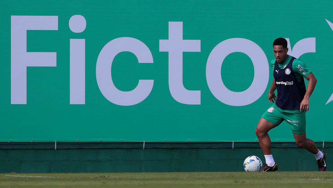 O jogador Vitor Roque, da SE Palmeiras, durante treinamento, na Academia de Futebol. (Foto: Cesar Greco/Palmeiras/by Canon)