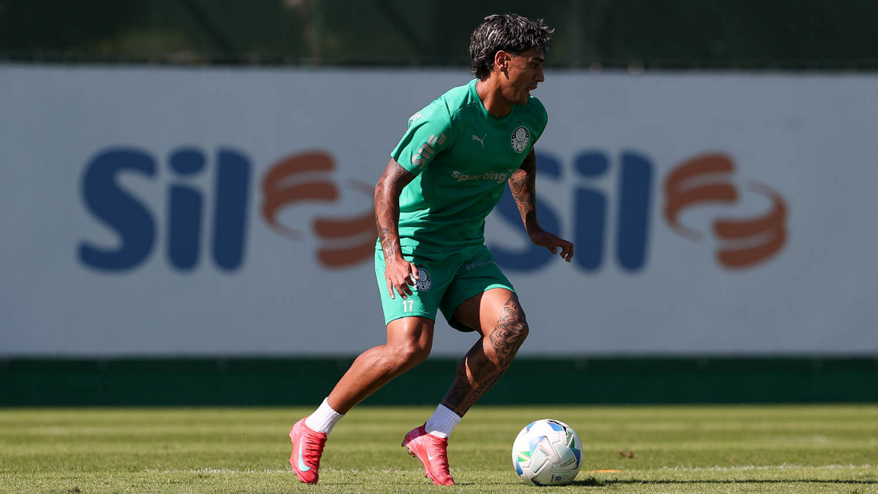 O jogador Richard Ríos, da SE Palmeiras, durante treinamento, na Academia de Futebol. (Foto: Cesar Greco/Palmeiras/by Canon)