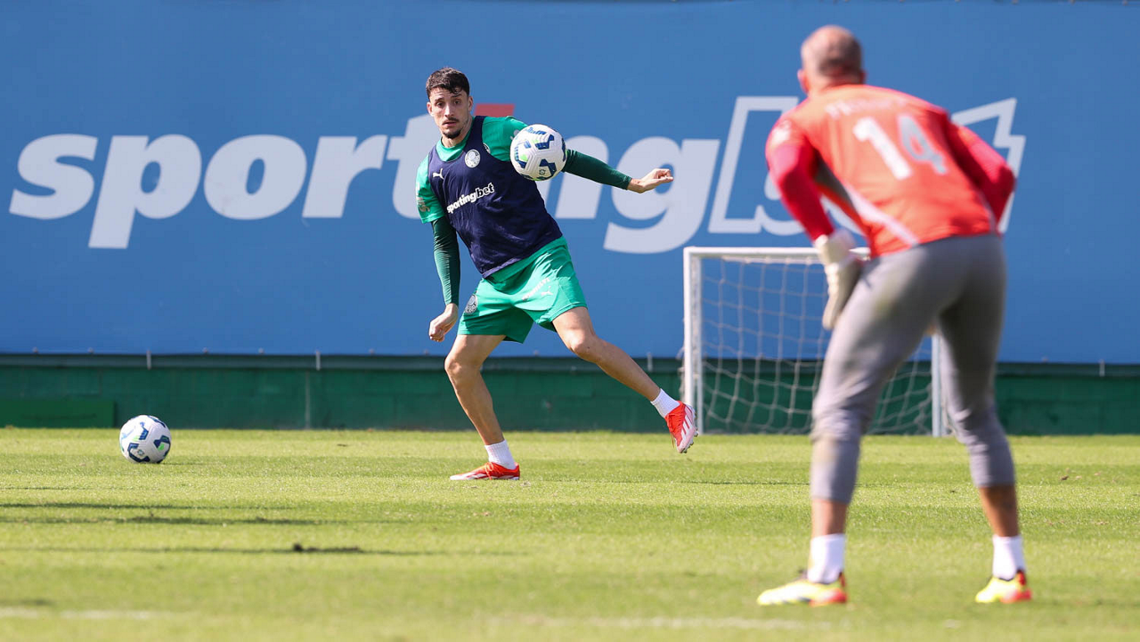 O jogador Joaquín Piquerez, da SE Palmeiras, durante treinamento, na Academia de Futebol. (Foto: Cesar Greco/Palmeiras/by Canon)