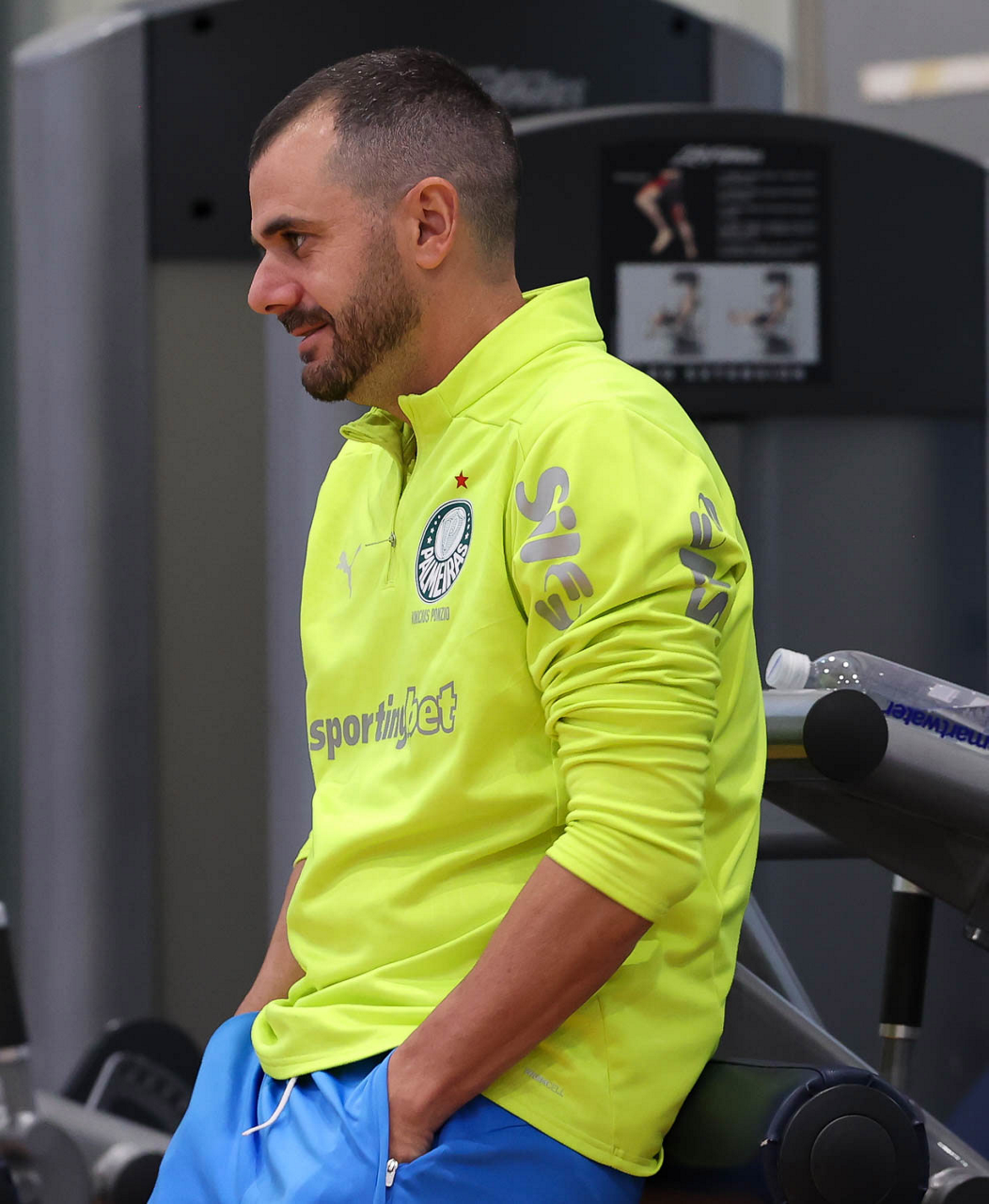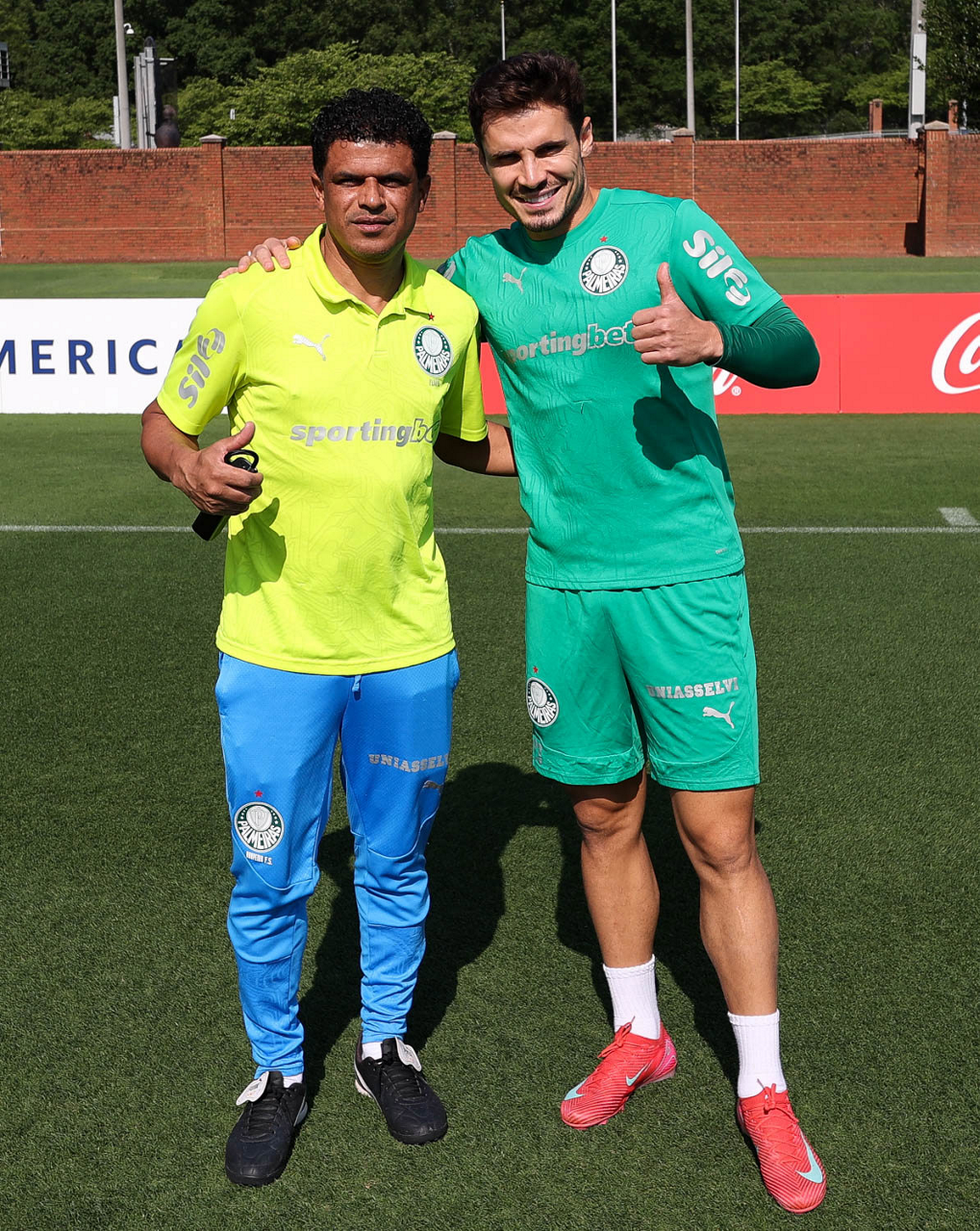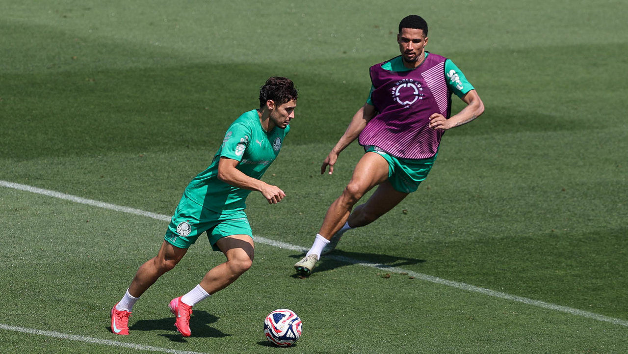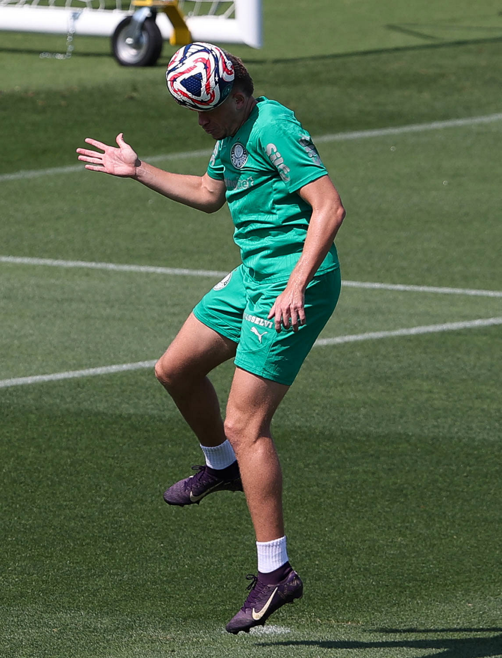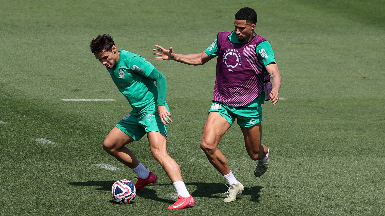 O gerente de processos Luís Gustavo Andrade, o fisioterapeuta Rodrigo Alencar, o massagista Paulinho, o fisioterapeuta Gustavo Kaschel e o massagista Alan Gabriel (E/D), da SE Palmeiras, durante treinamento, na Universidade da Carolina do Norte. (Foto: Cesar Greco/Palmeiras/by Canon)