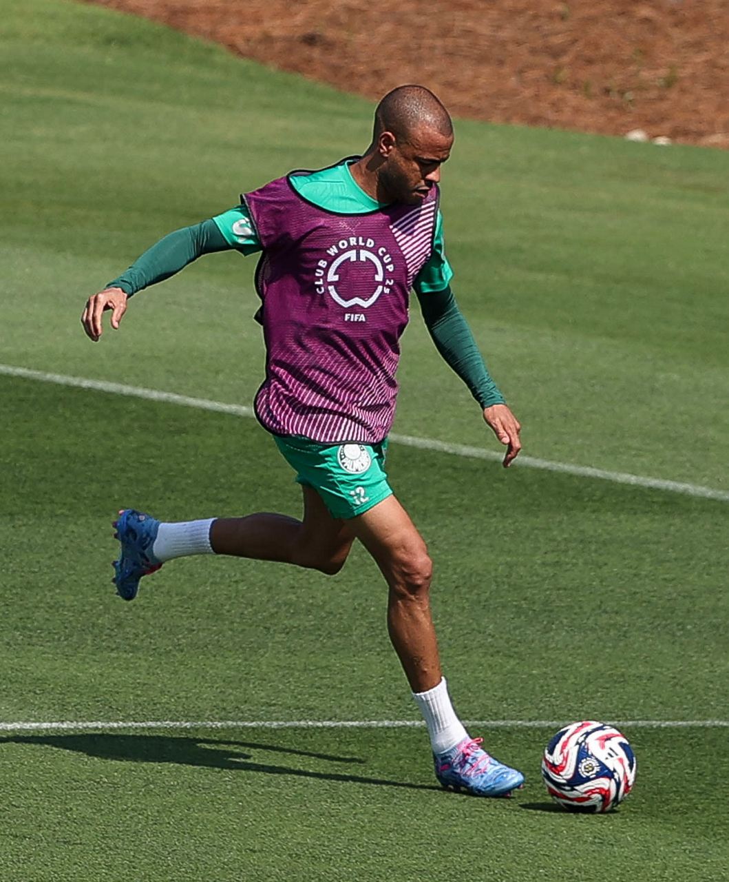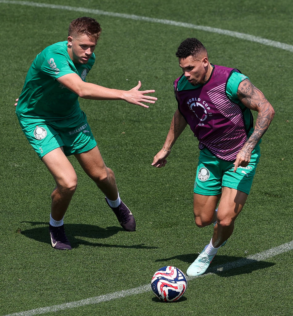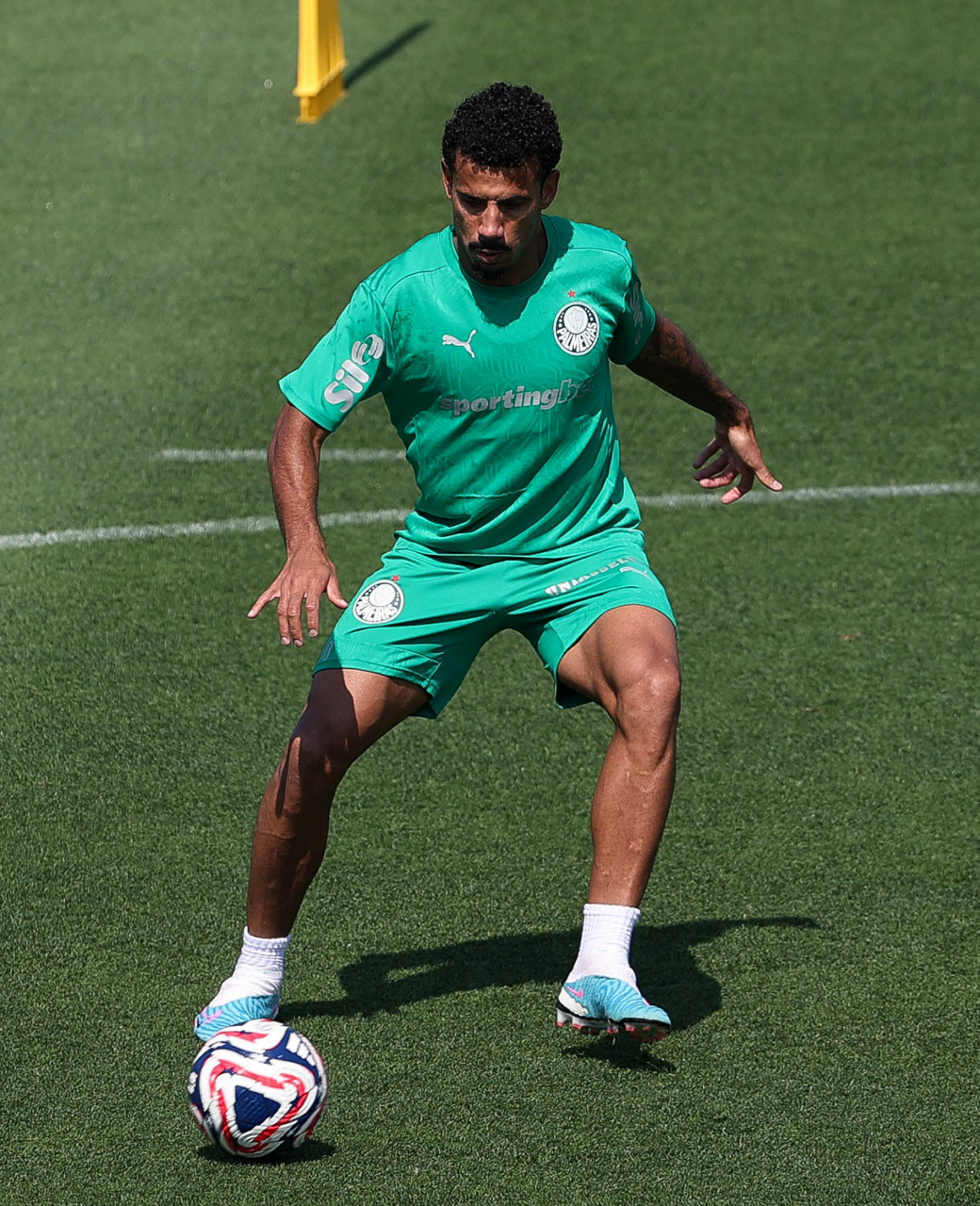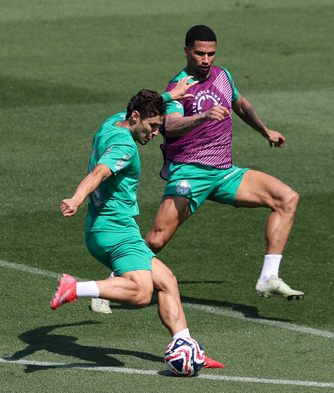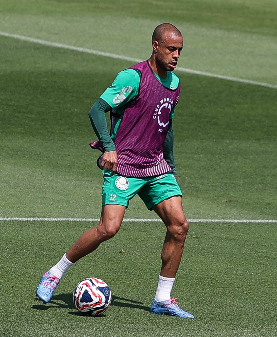 O gerente de processos Luís Gustavo Andrade, o fisioterapeuta Rodrigo Alencar, o massagista Paulinho, o fisioterapeuta Gustavo Kaschel e o massagista Alan Gabriel (E/D), da SE Palmeiras, durante treinamento, na Universidade da Carolina do Norte. (Foto: Cesar Greco/Palmeiras/by Canon)
