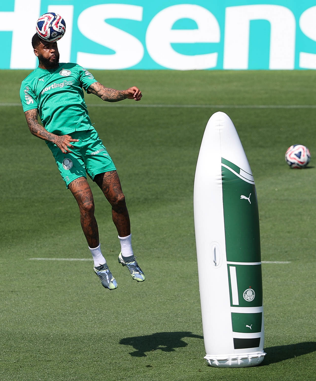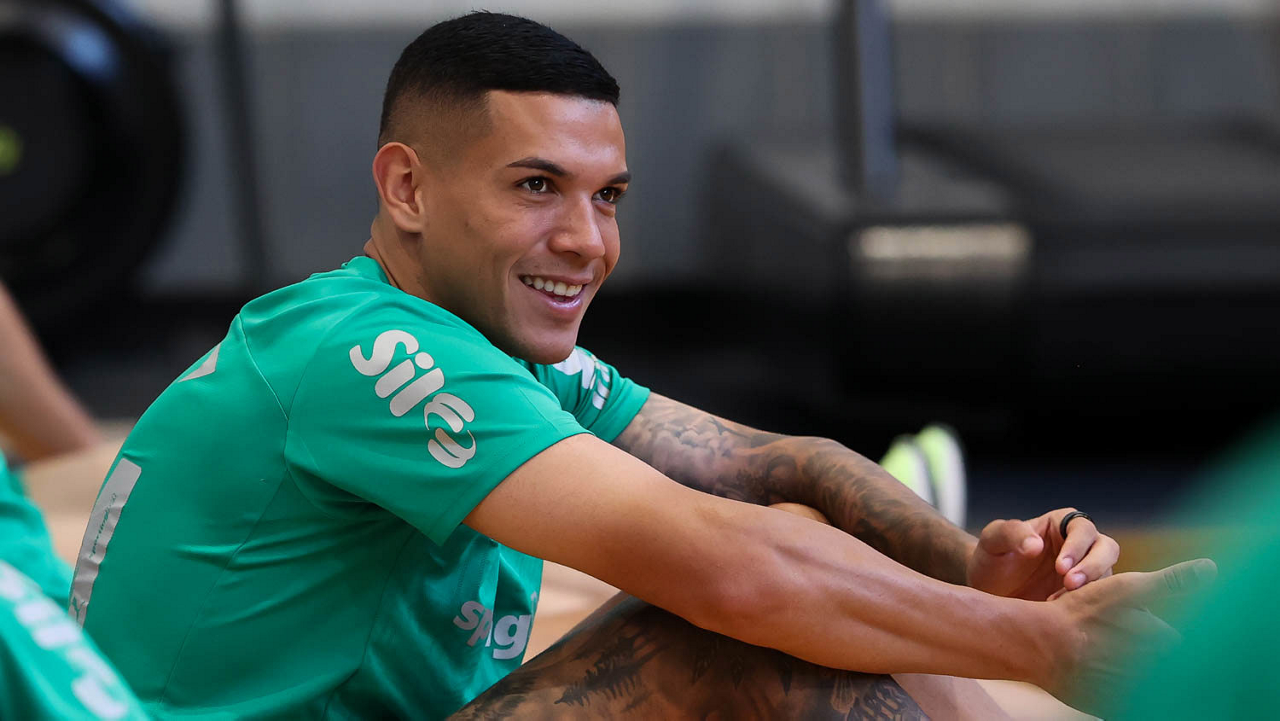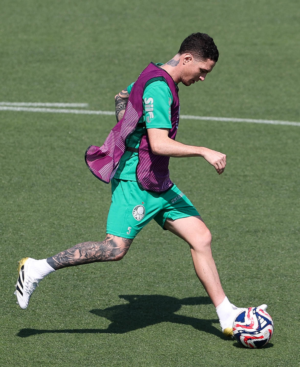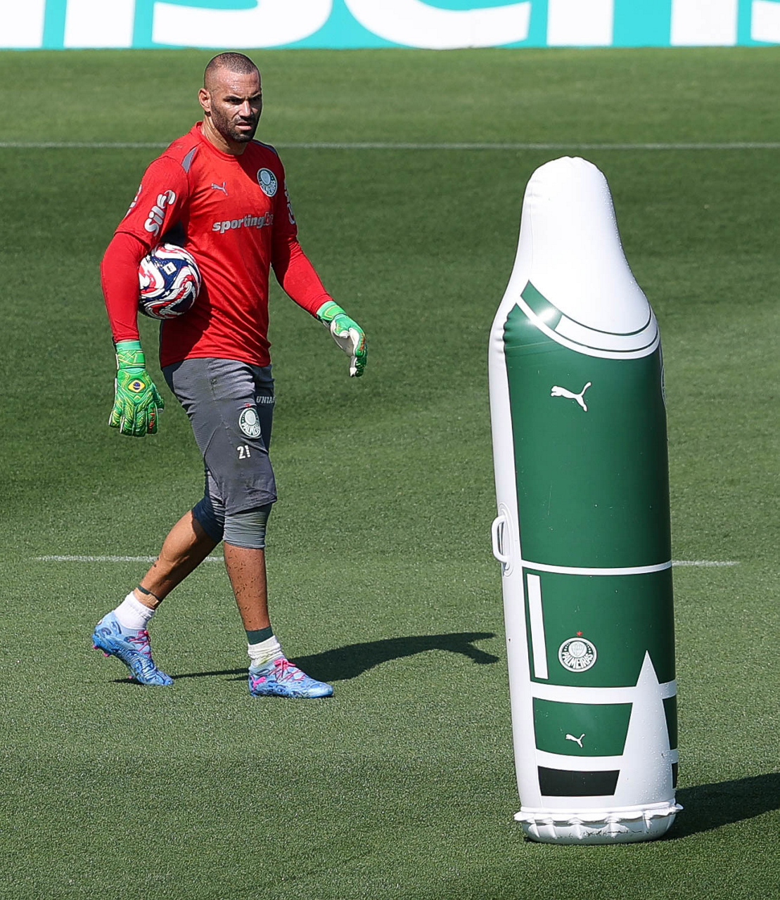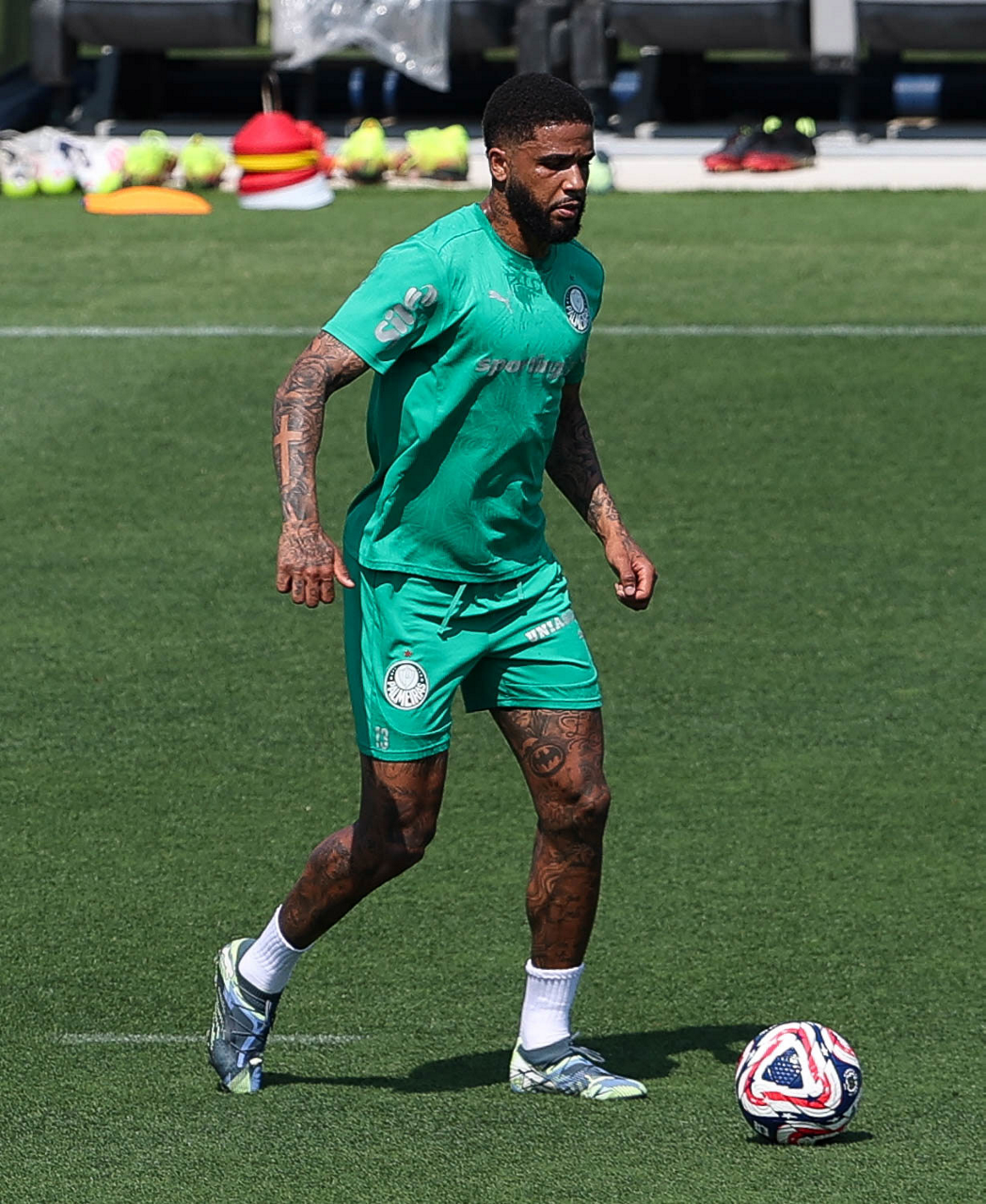 O gerente de processos Luís Gustavo Andrade, o fisioterapeuta Rodrigo Alencar, o massagista Paulinho, o fisioterapeuta Gustavo Kaschel e o massagista Alan Gabriel (E/D), da SE Palmeiras, durante treinamento, na Universidade da Carolina do Norte. (Foto: Cesar Greco/Palmeiras/by Canon)