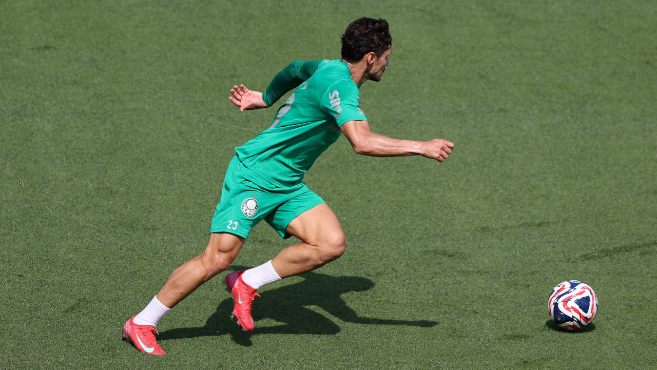 O jogador Richard Ríos, da SE Palmeiras, durante treinamento, na Universidade da Carolina do Norte. (Foto: Cesar Greco/Palmeiras/by Canon)