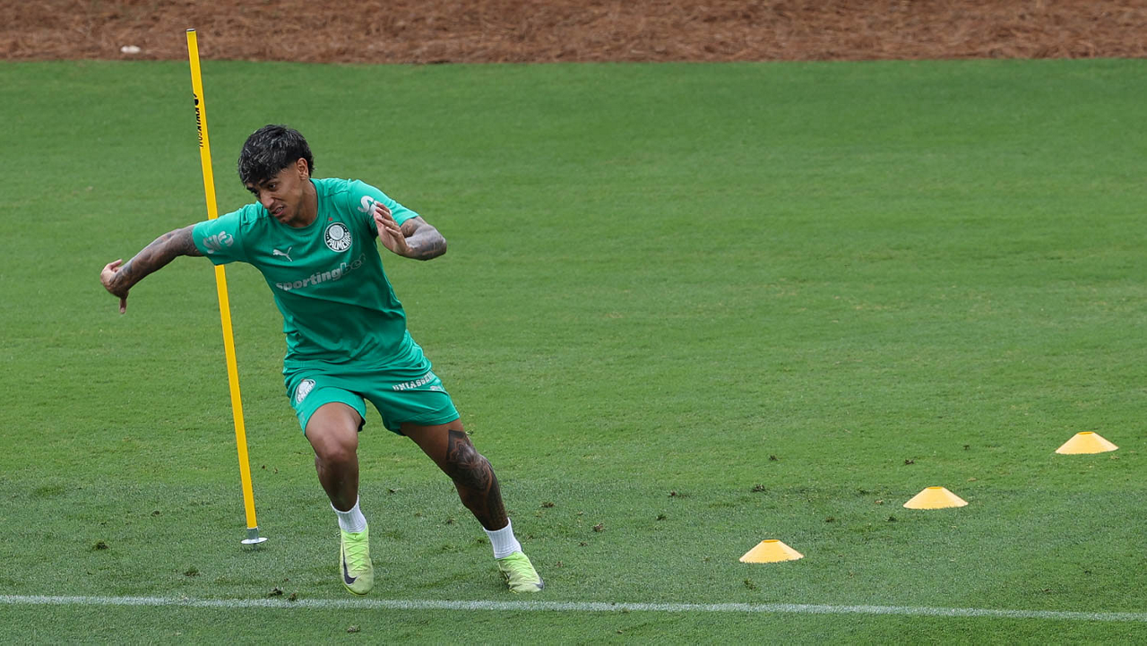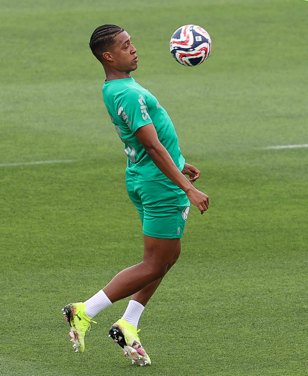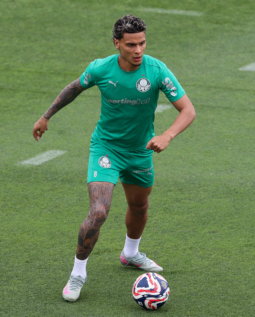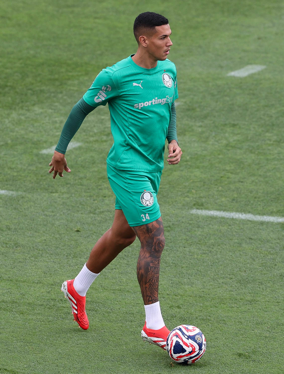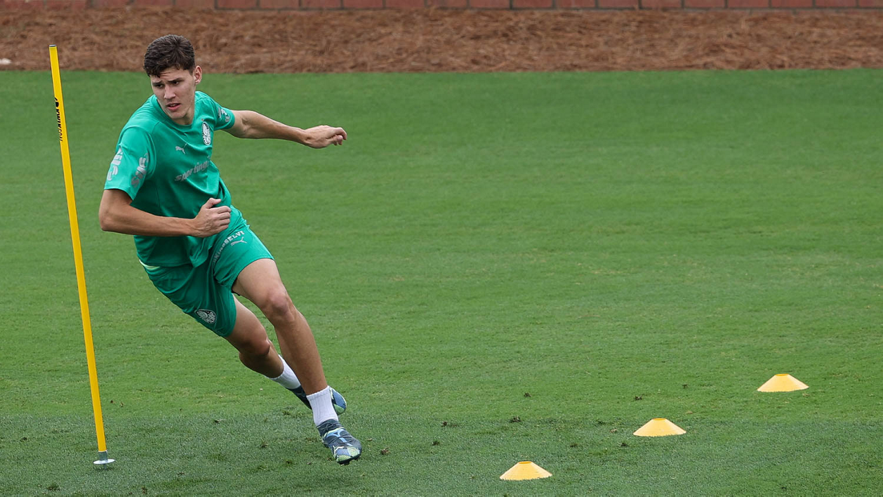 O jogador Richard Ríos, da SE Palmeiras, durante treinamento, na Universidade da Carolina do Norte. (Foto: Cesar Greco/Palmeiras/by Canon)