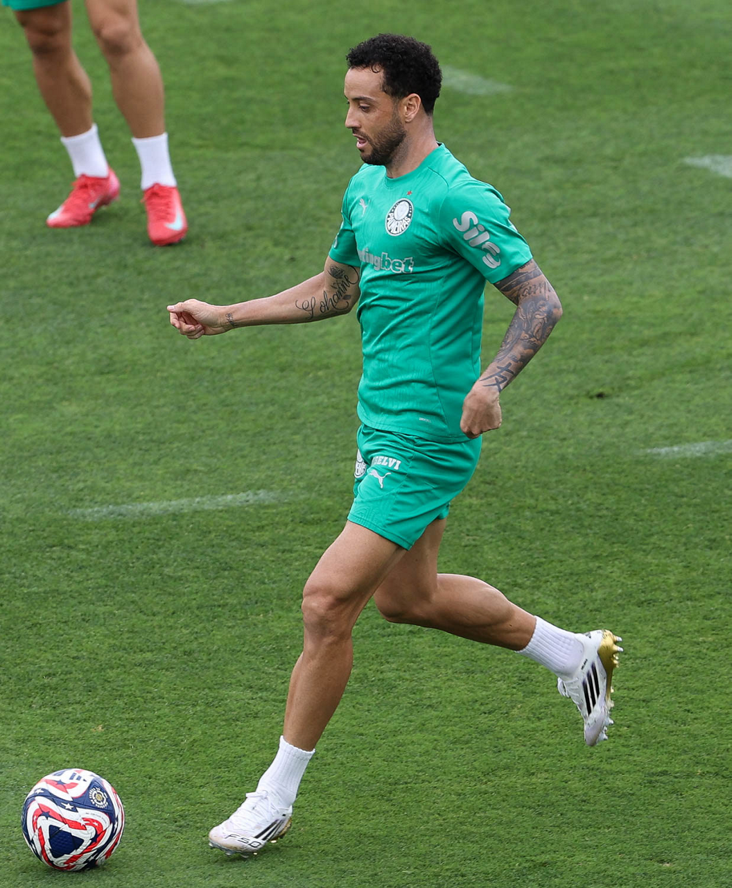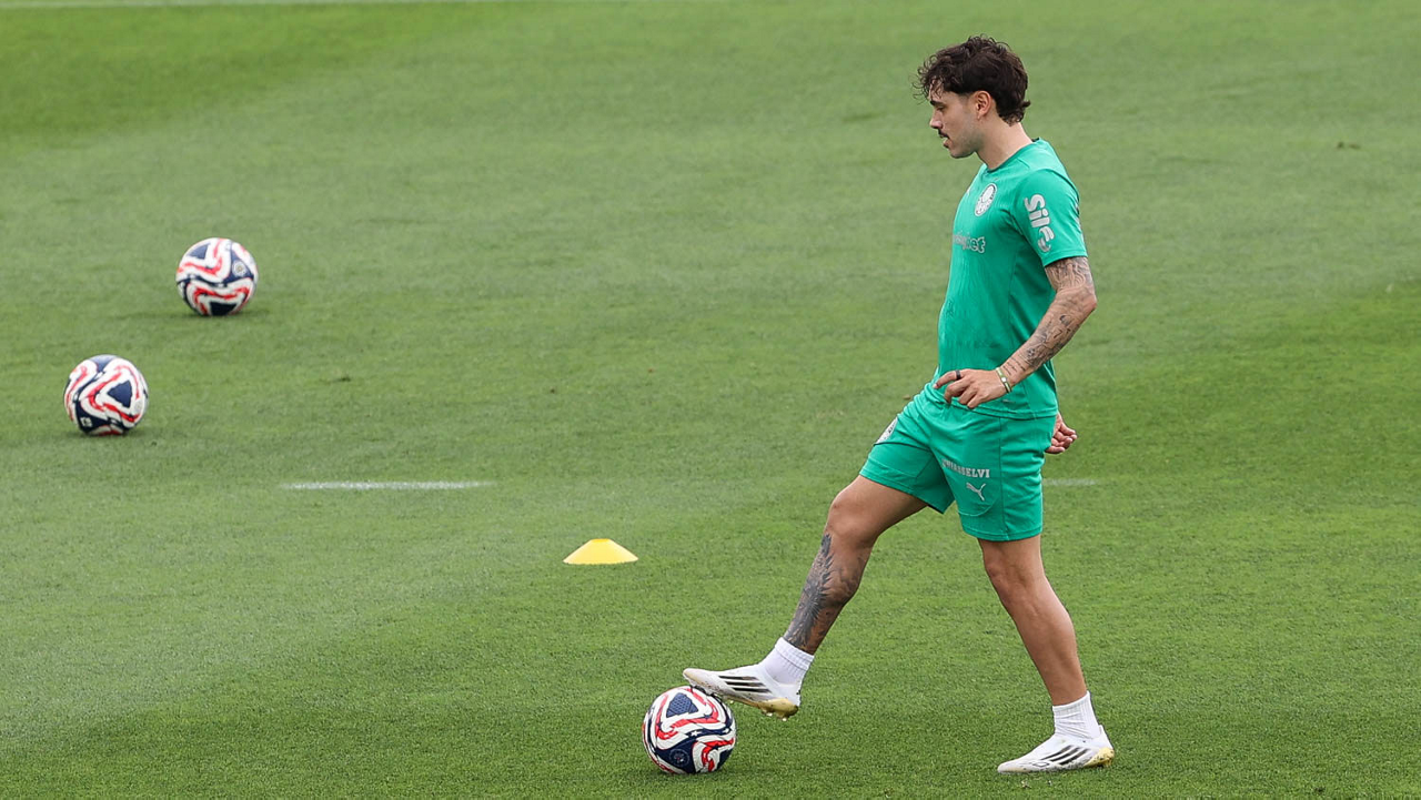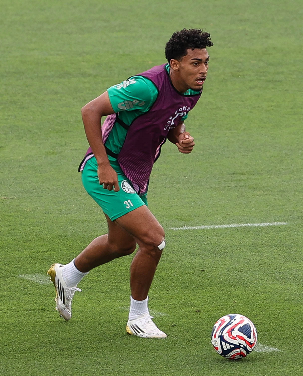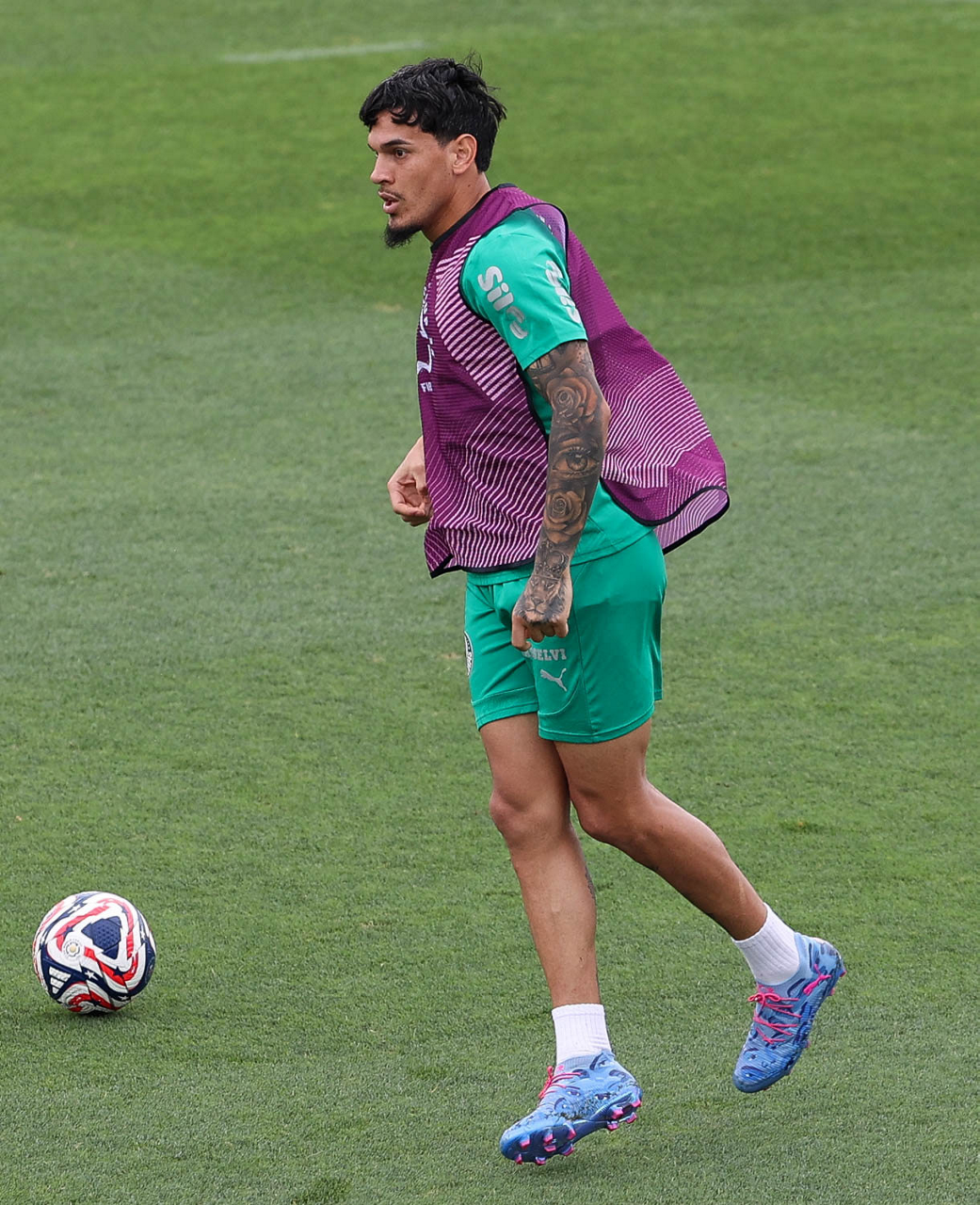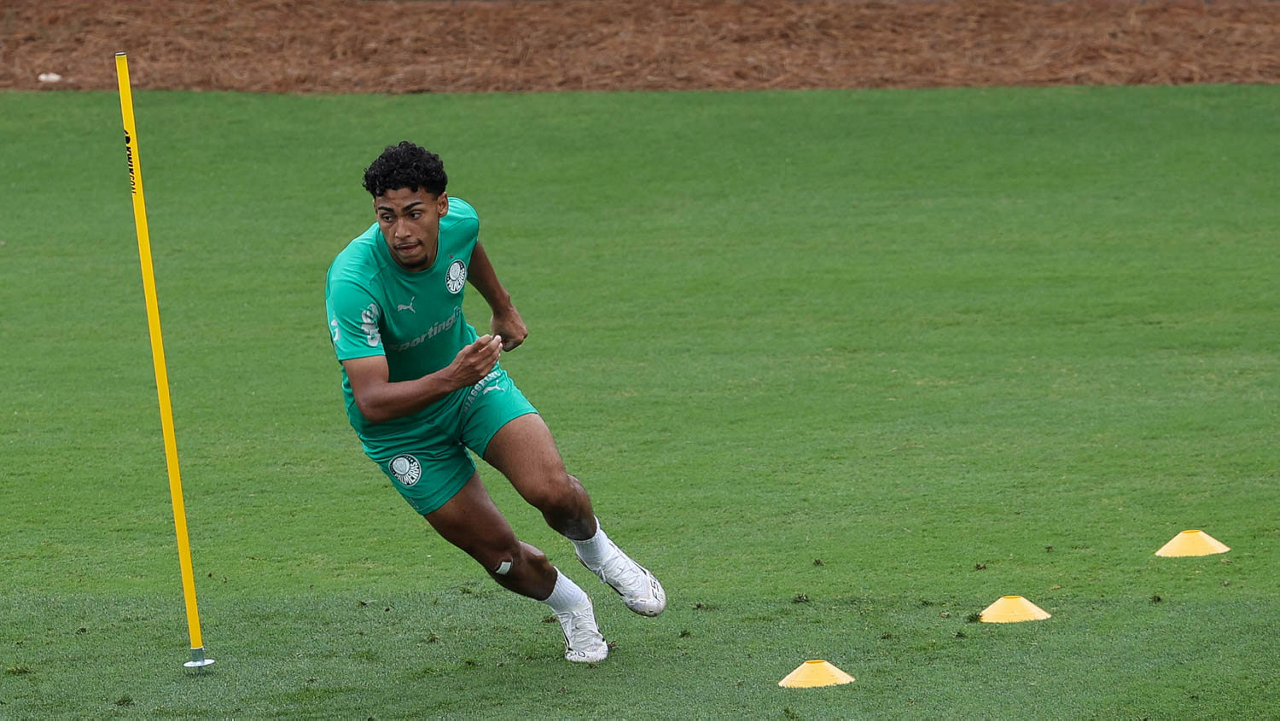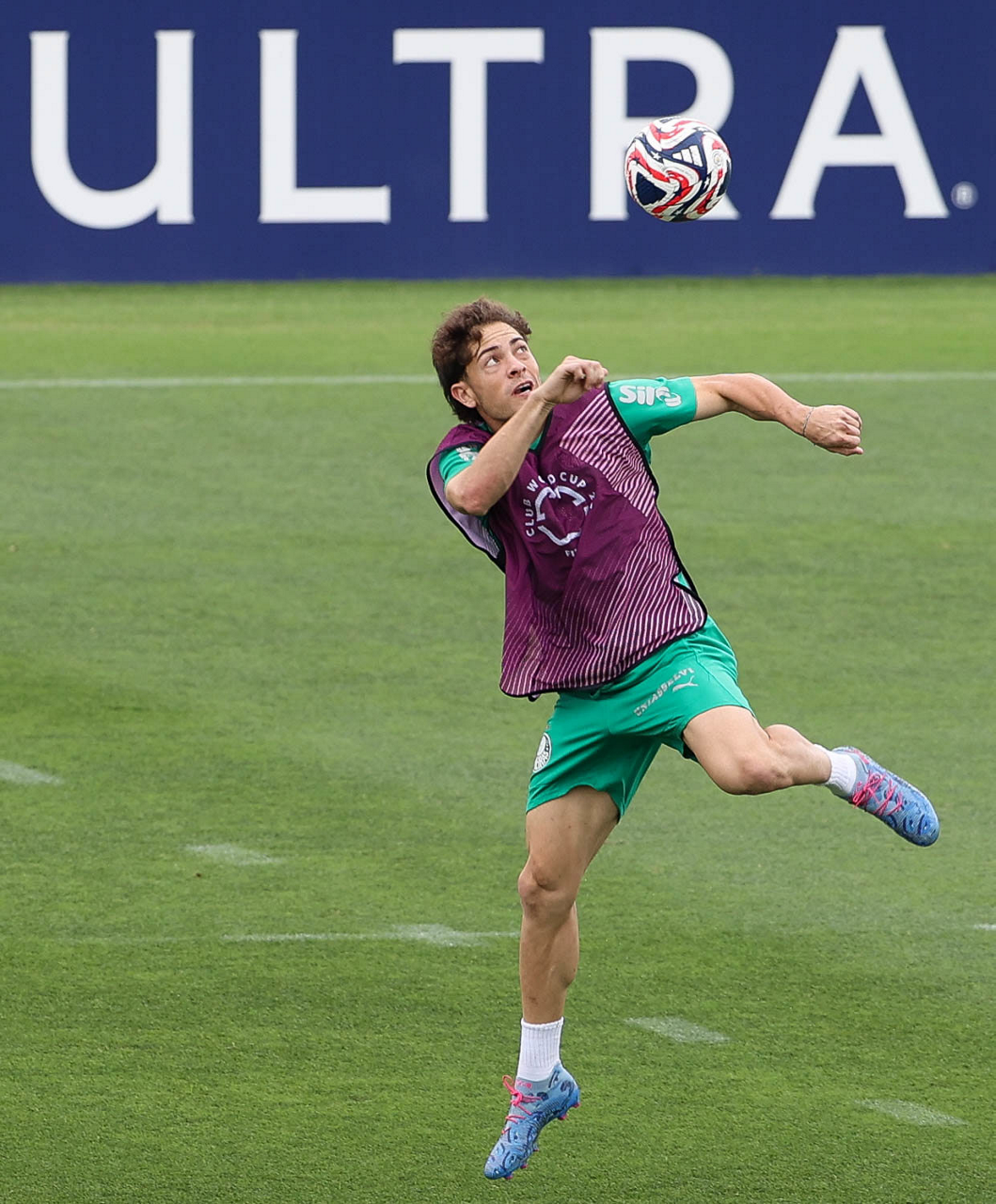 O jogador Richard Ríos, da SE Palmeiras, durante treinamento, na Universidade da Carolina do Norte. (Foto: Cesar Greco/Palmeiras/by Canon)