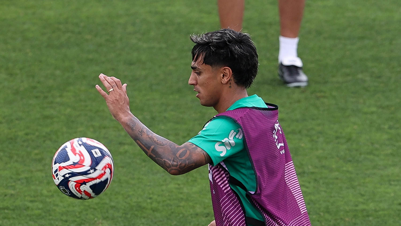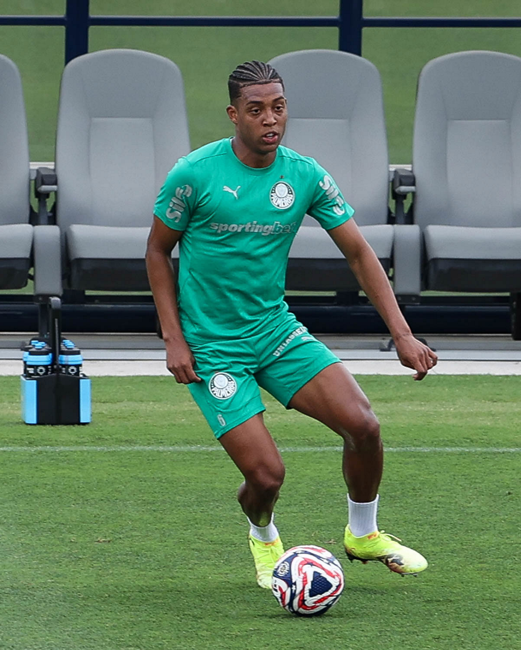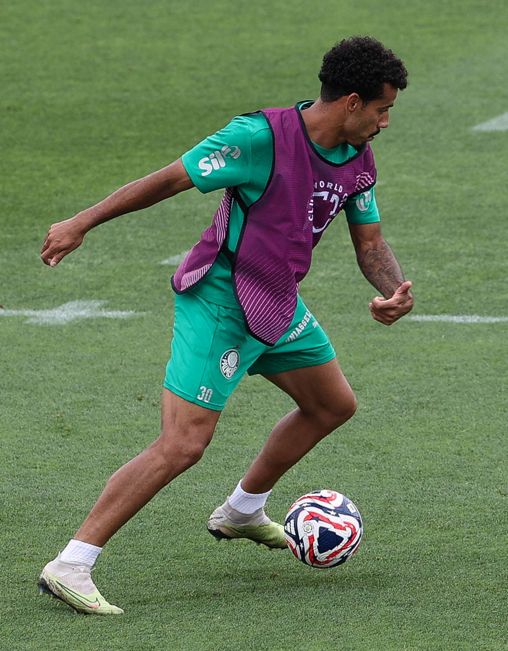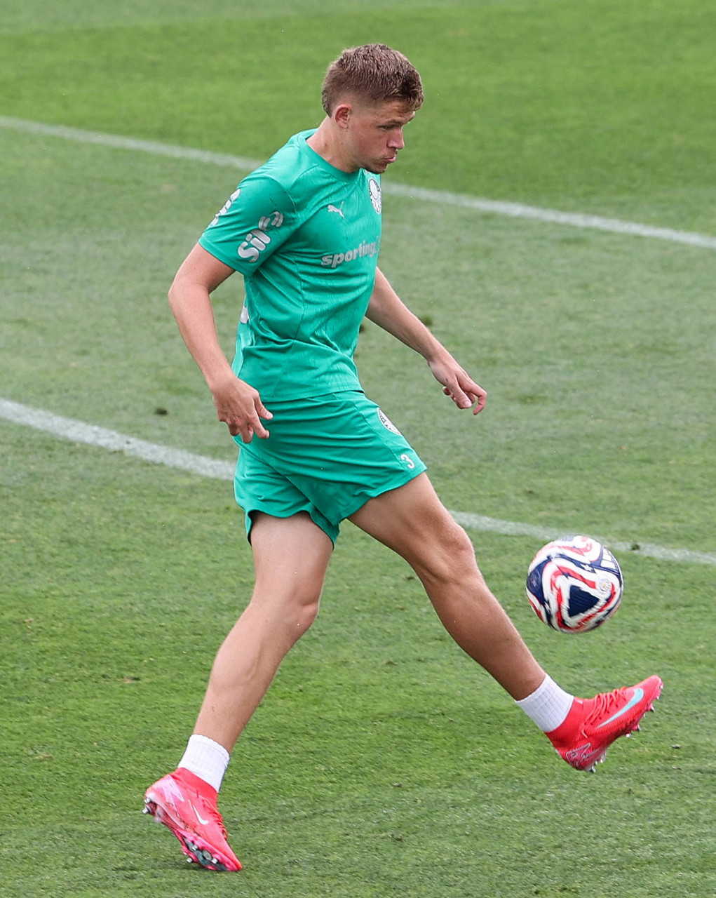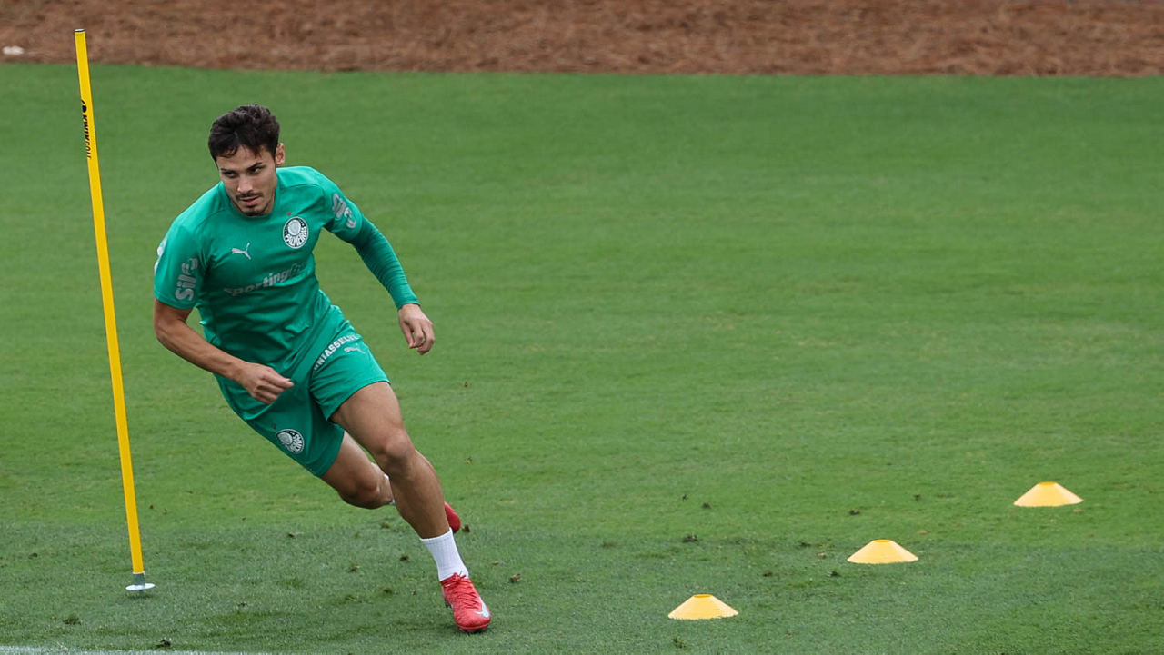 O jogador Richard Ríos, da SE Palmeiras, durante treinamento, na Universidade da Carolina do Norte. (Foto: Cesar Greco/Palmeiras/by Canon)