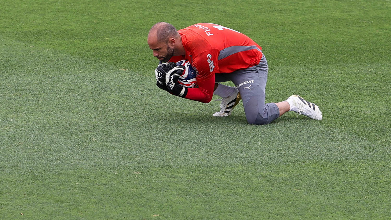 O jogador Emiliano Martínez, da SE Palmeiras, durante treinamento, na Universidade da Carolina do Norte. (Foto: Cesar Greco/Palmeiras/by Canon)