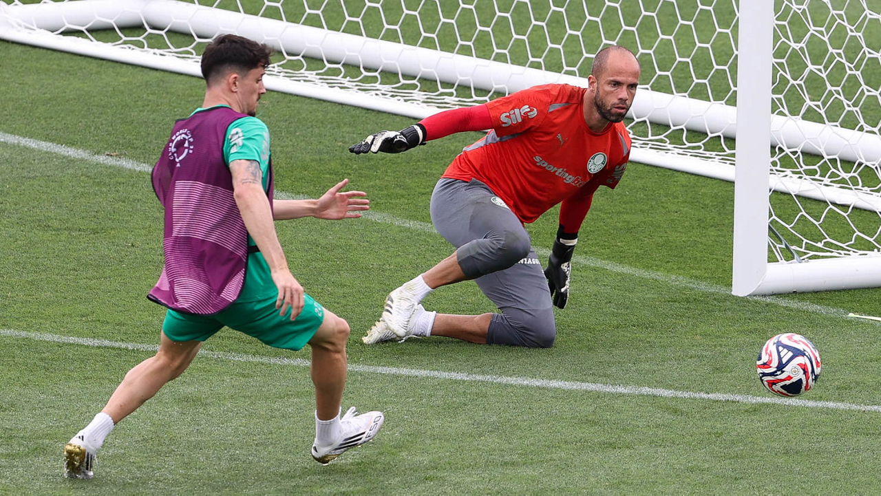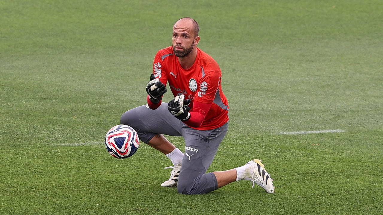 O goleiro Weverton, da SE Palmeiras, durante treinamento, na Universidade da Carolina do Norte. (Foto: Cesar Greco/Palmeiras/by Canon)