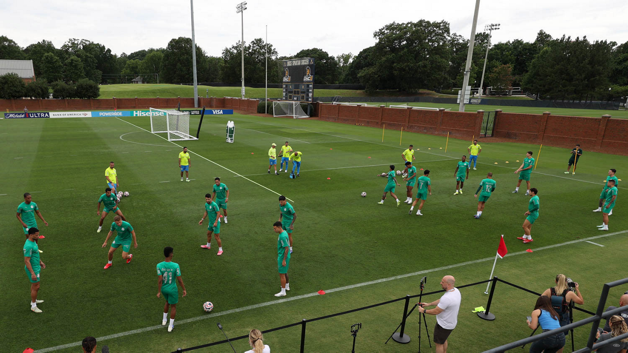 Os jogadores da SE Palmeiras, durante treinamento, na Universidade da Carolina do Norte. (Foto: Cesar Greco/Palmeiras/by Canon)