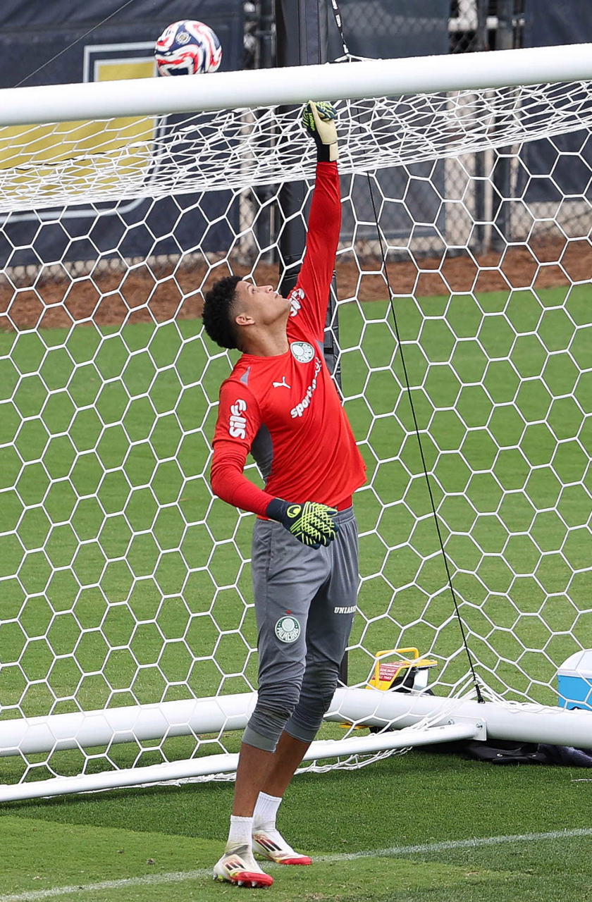 O goleiro Mateus, da SE Palmeiras, durante treinamento, na Universidade da Carolina do Norte. (Foto: Cesar Greco/Palmeiras/by Canon)