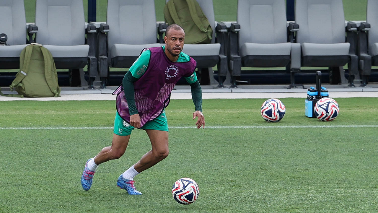 O jogador Micael, da SE Palmeiras, durante treinamento, na Universidade da Carolina do Norte. (Foto: Cesar Greco/Palmeiras/by Canon)