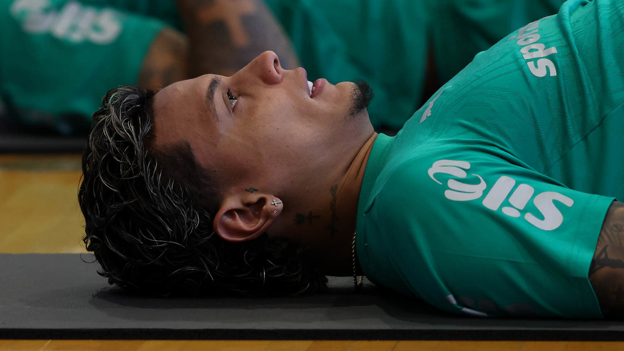 O jogador Richard Ríos, da SE Palmeiras, durante treinamento, na Universidade da Carolina do Norte. (Foto: Cesar Greco/Palmeiras/by Canon)